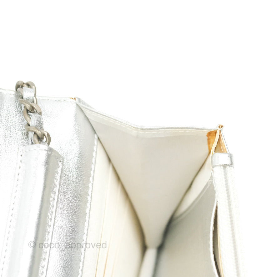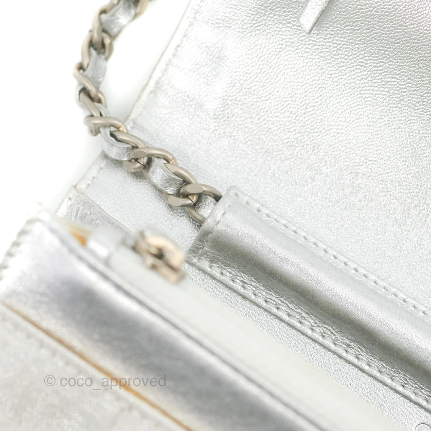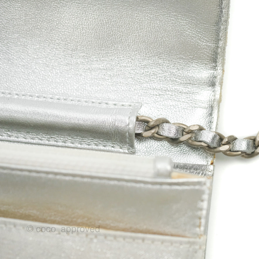 Chanel Vintage Wallet on Chain Silver Ice Cube Fabric
