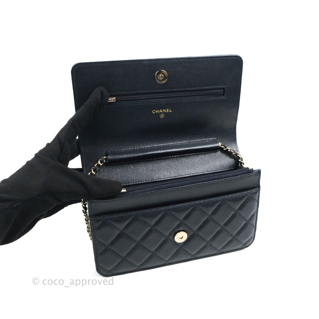 Chanel Quilted Classic Wallet on Chain WOC Navy Caviar Gold Hardware