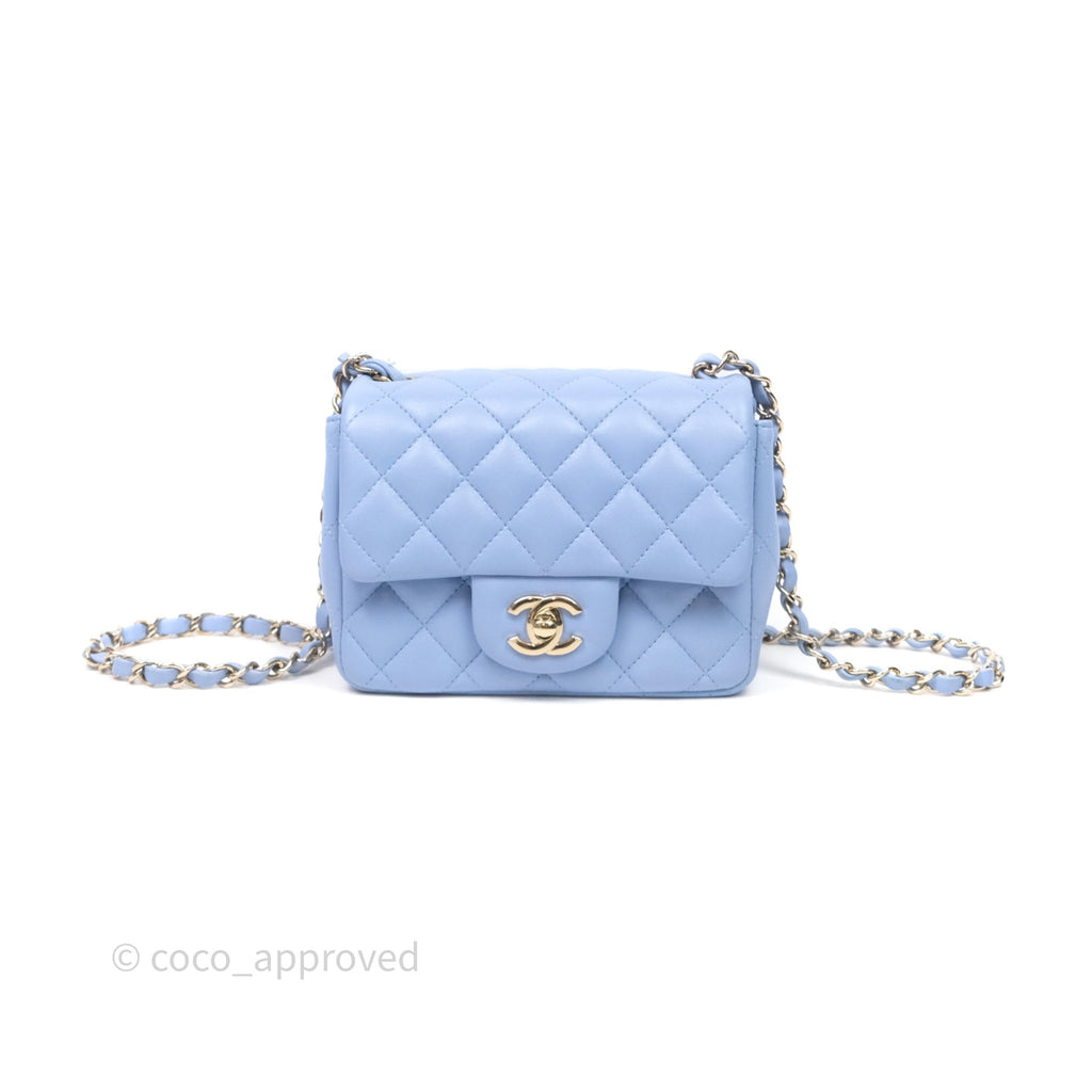 Chanel Mini Square Quilted Sky Blue Lambskin Gold Hardware