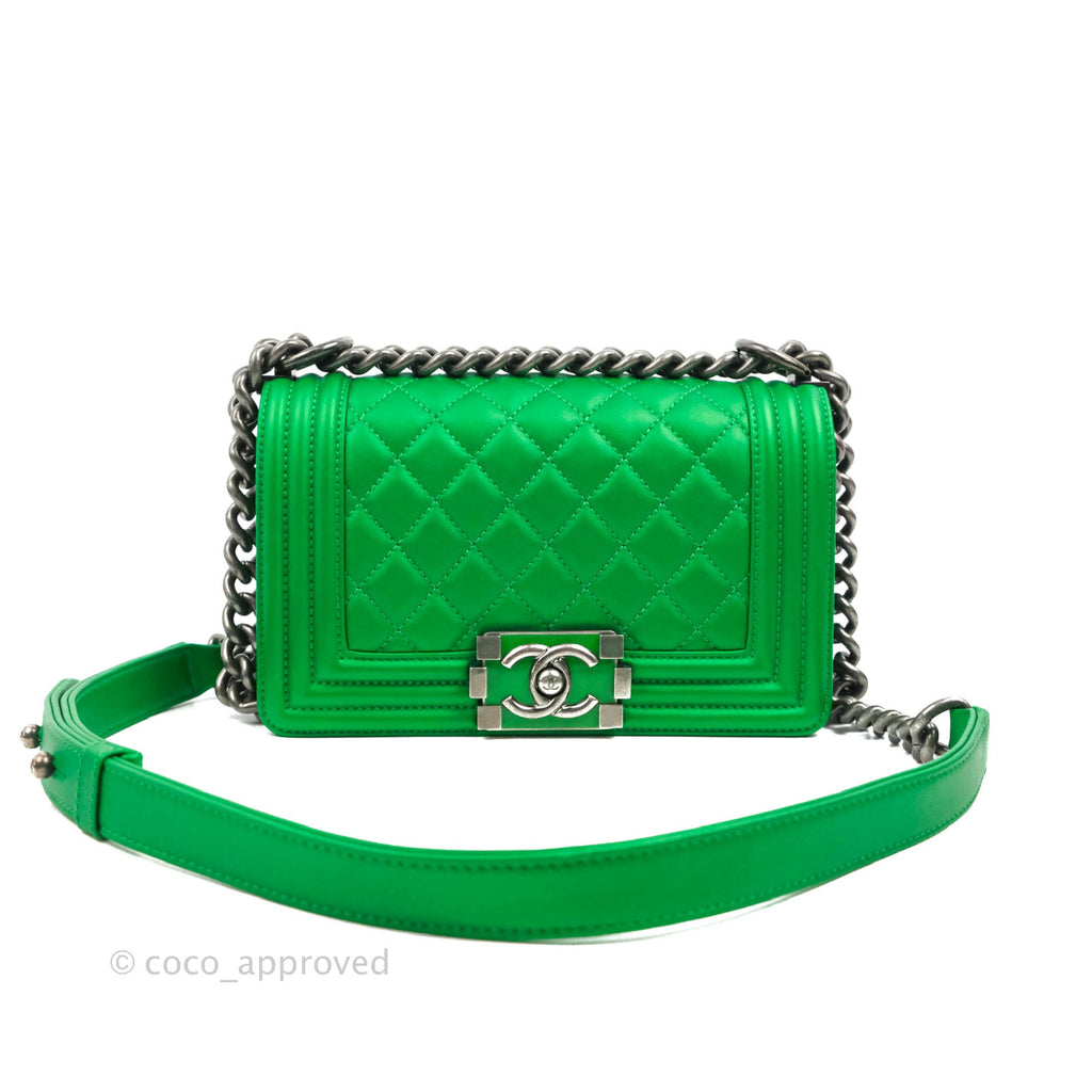 Chanel Small Boy Green Calfskin Ruthenium Hardware