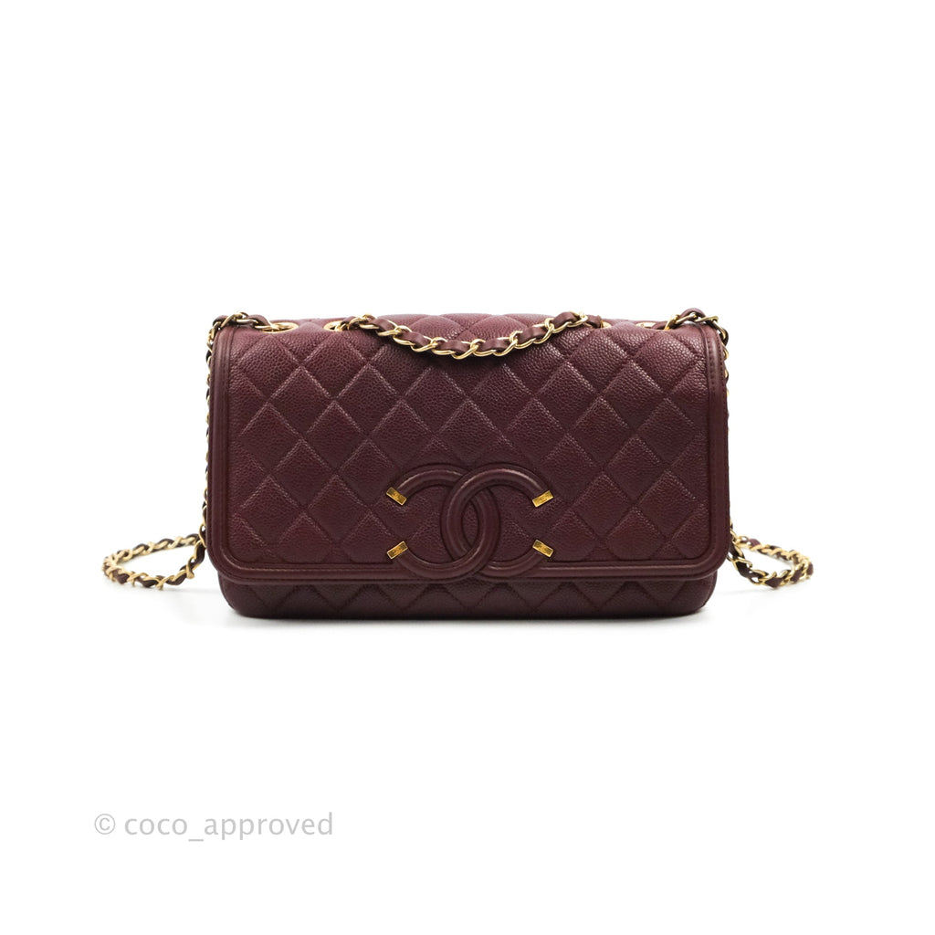 Chanel Quilted Medium CC Filigree Flap Burgundy Black Caviar