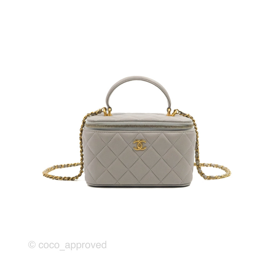 Chanel Vanity Rectangular Top Handle Grey Lambskin Gold Hardware