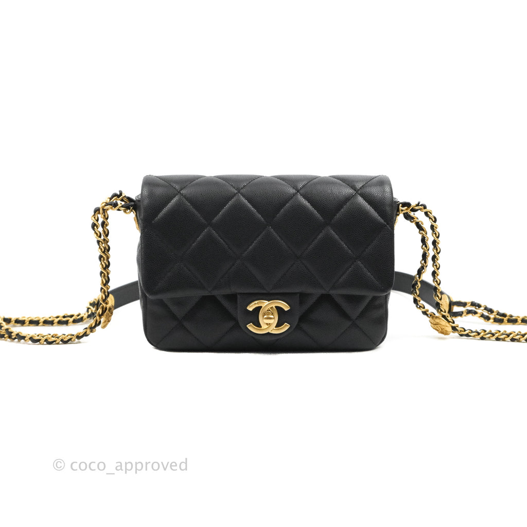 Chanel Small Flap with Coin Charm Black Caviar Aged Gold Hardware 22A