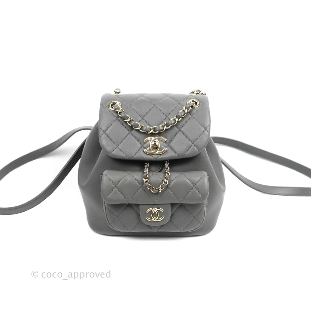 Chanel Quilted Small Duma Drawstring Backpack Grey Lambskin