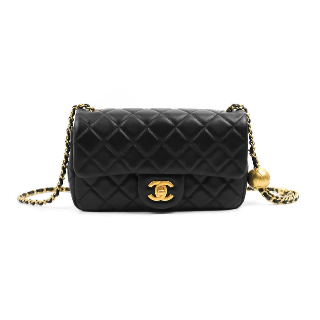 Chanel Mini Rectangular Pearl Crush Quilted Black Lambskin Aged Gold Hardware
