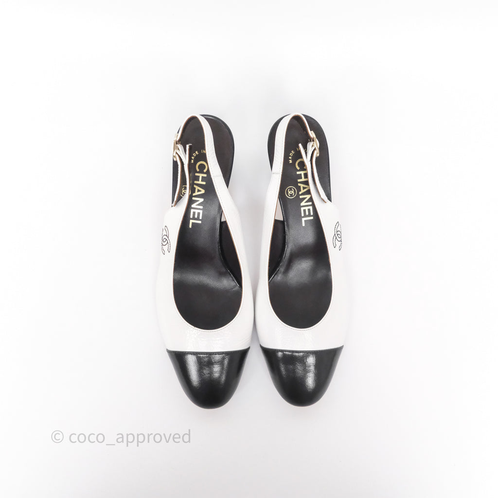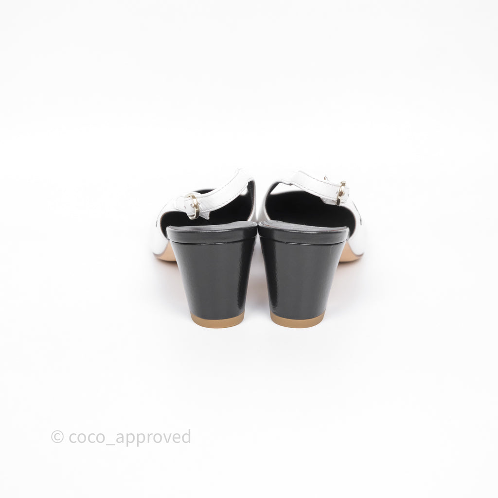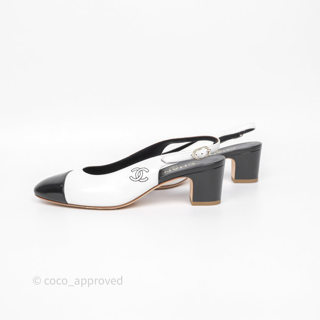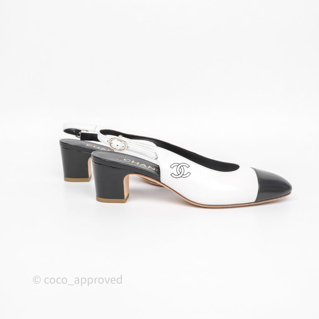 Chanel CC Logo Slingbacks Calfskin White/ Black 24P Size 36.5
