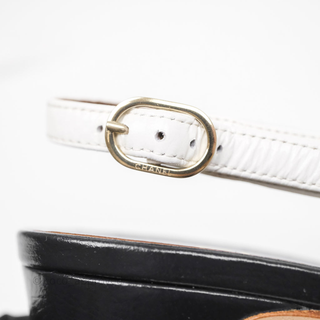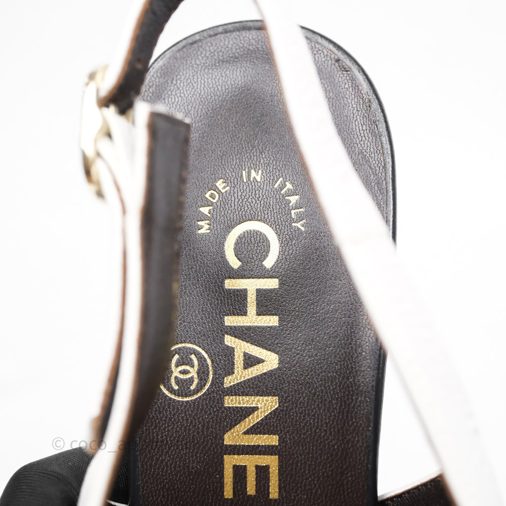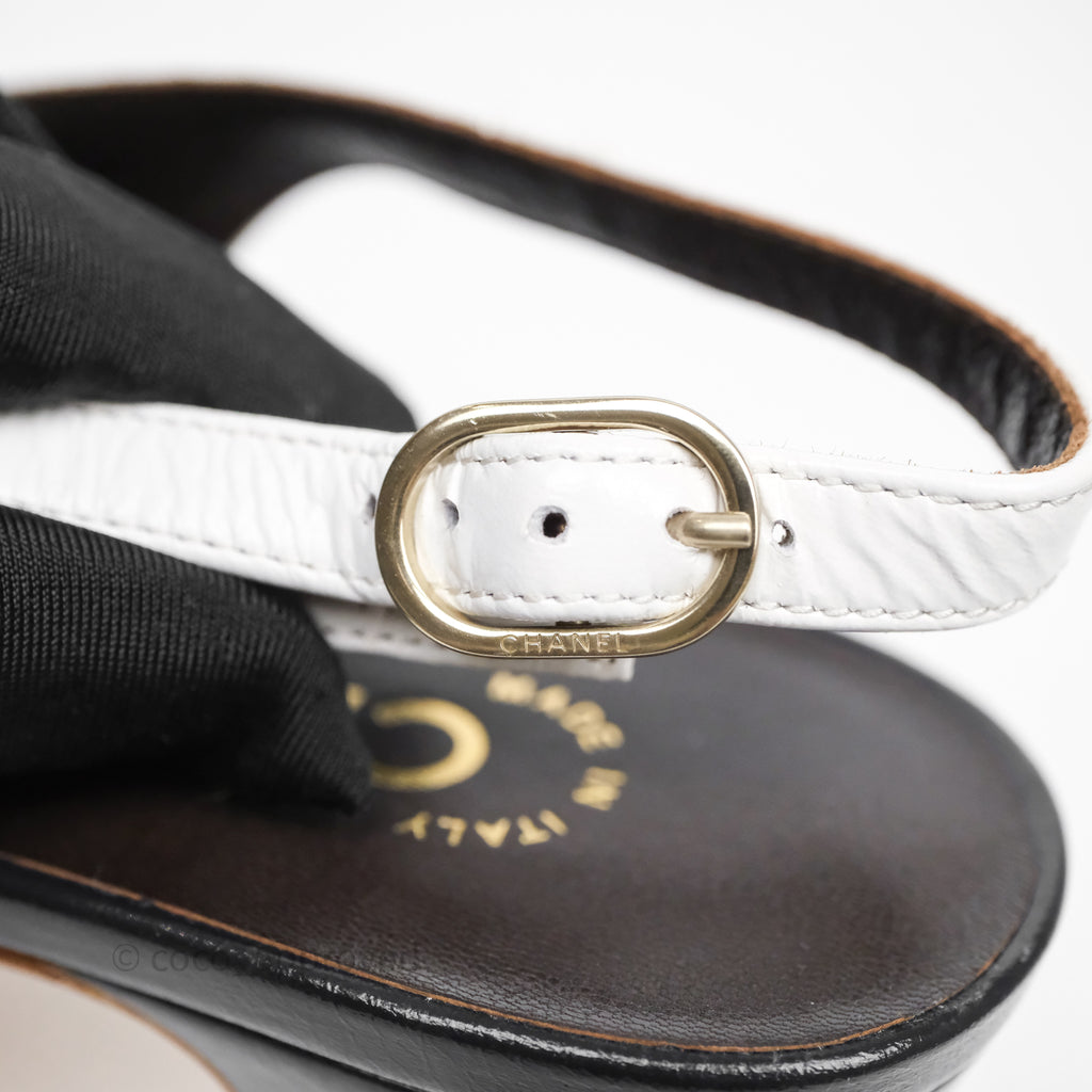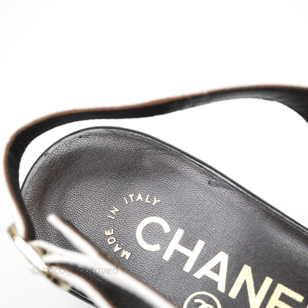 Chanel CC Logo Slingbacks Calfskin White/ Black 24P Size 36.5