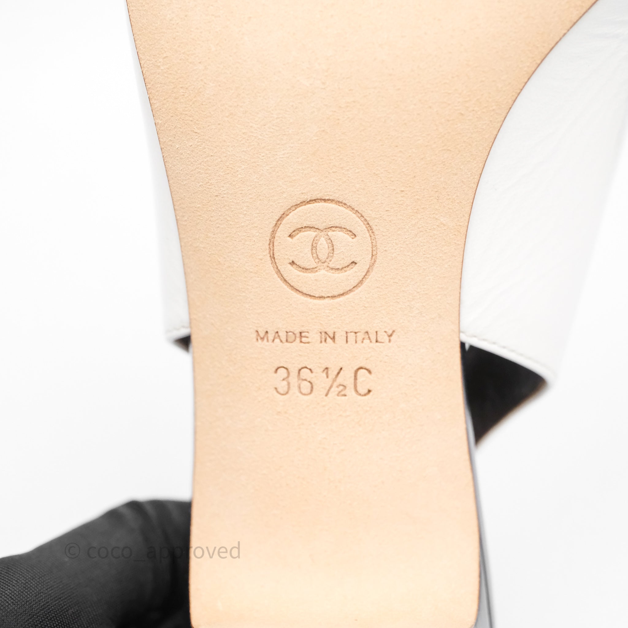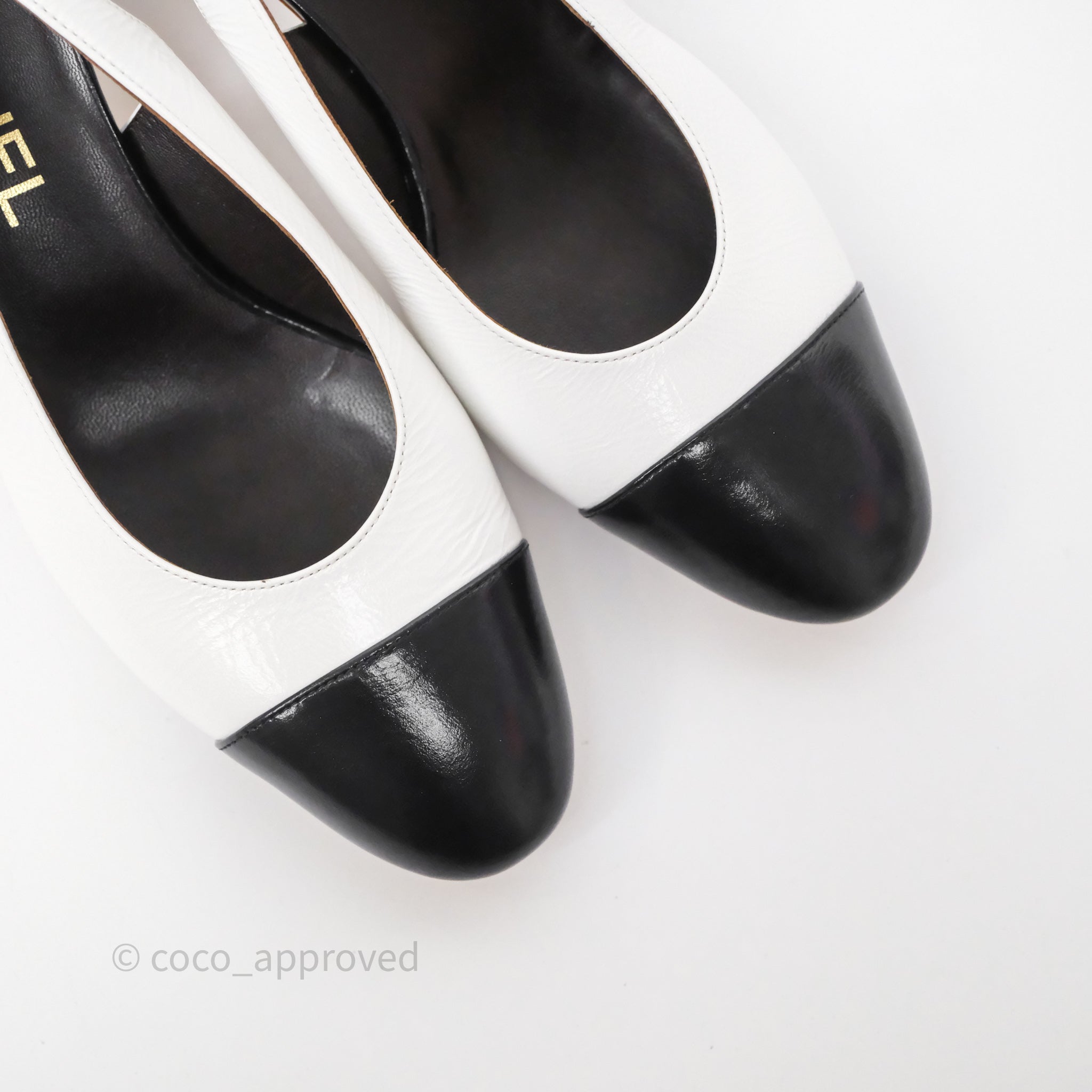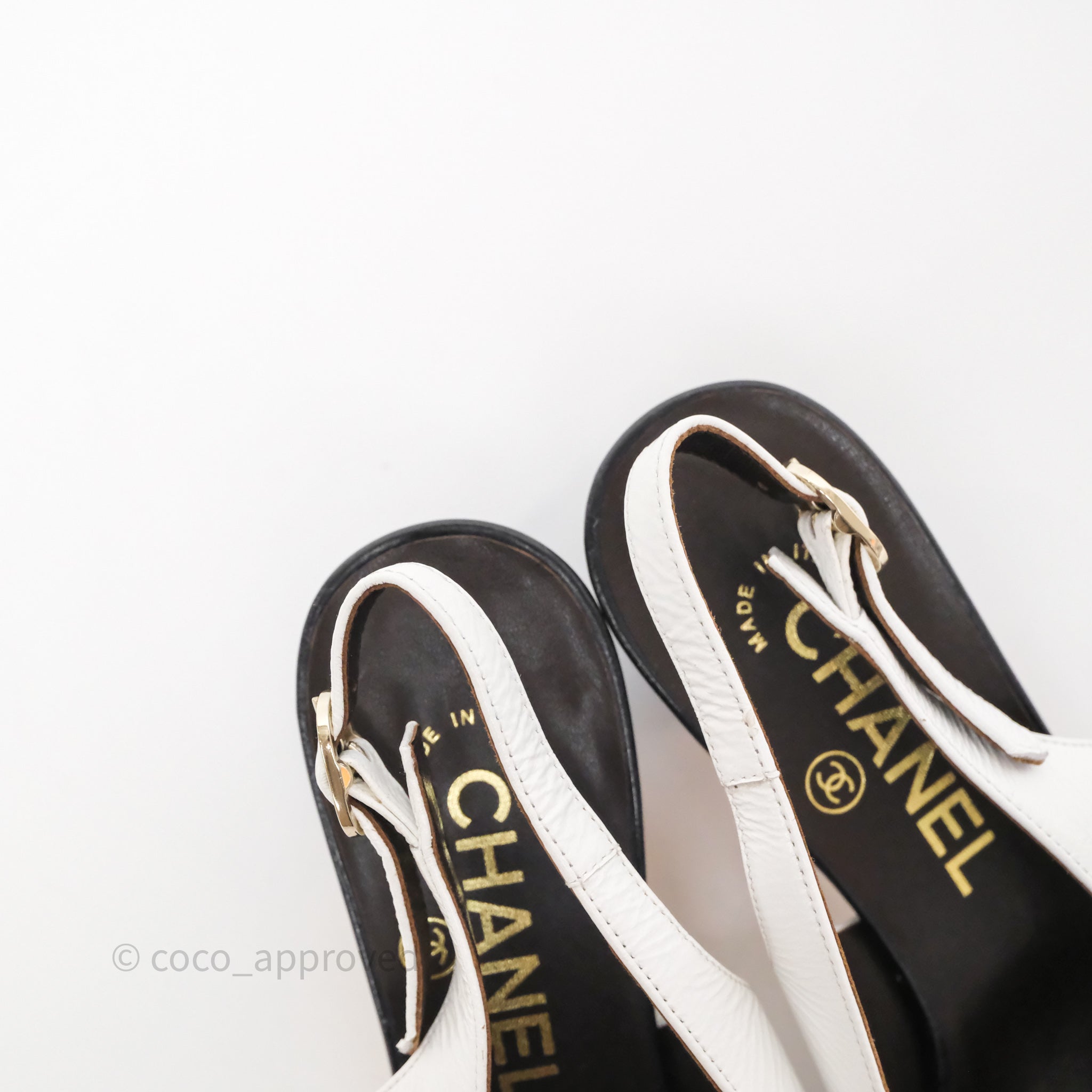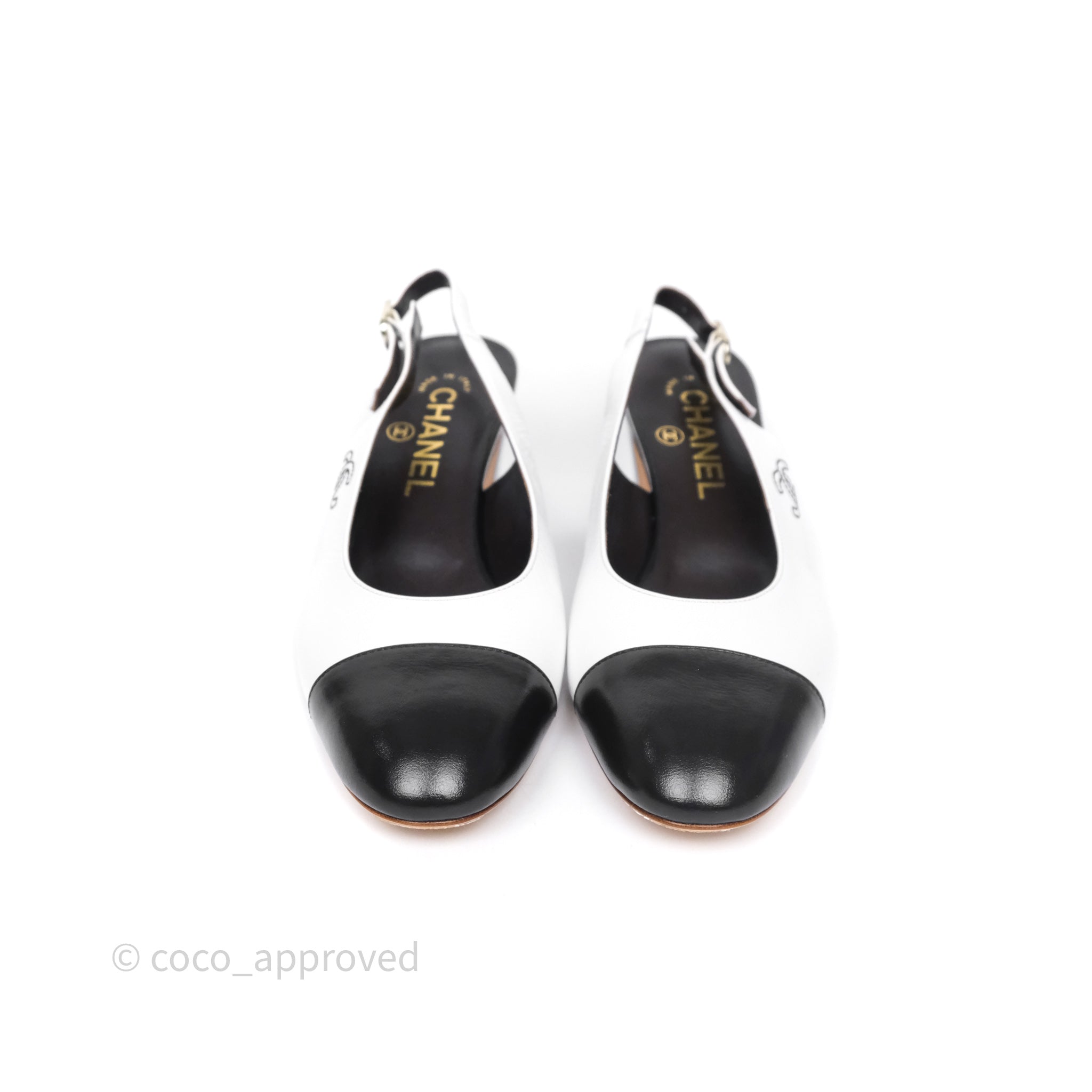 Chanel CC Logo Slingbacks Calfskin White/ Black 24P Size 36.5