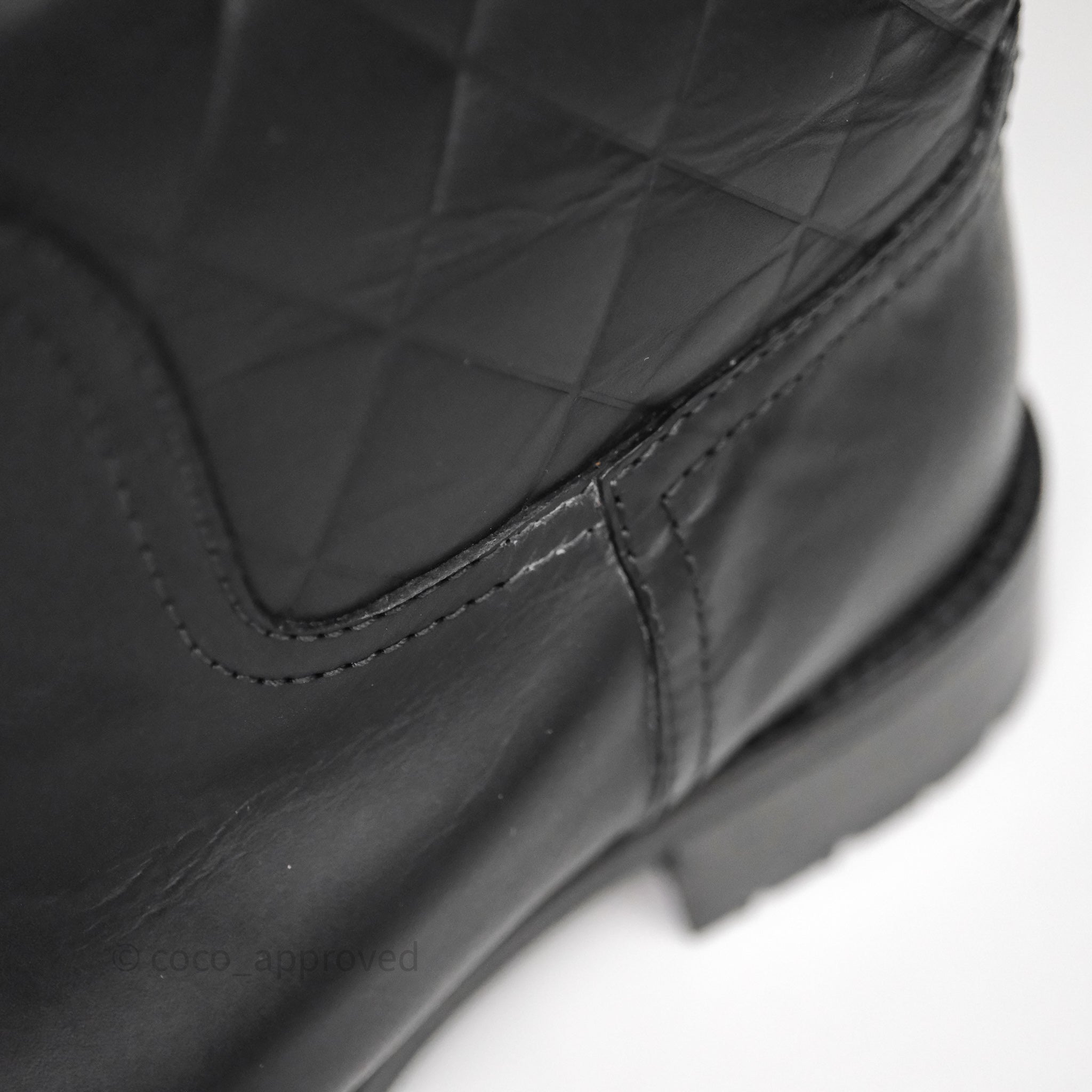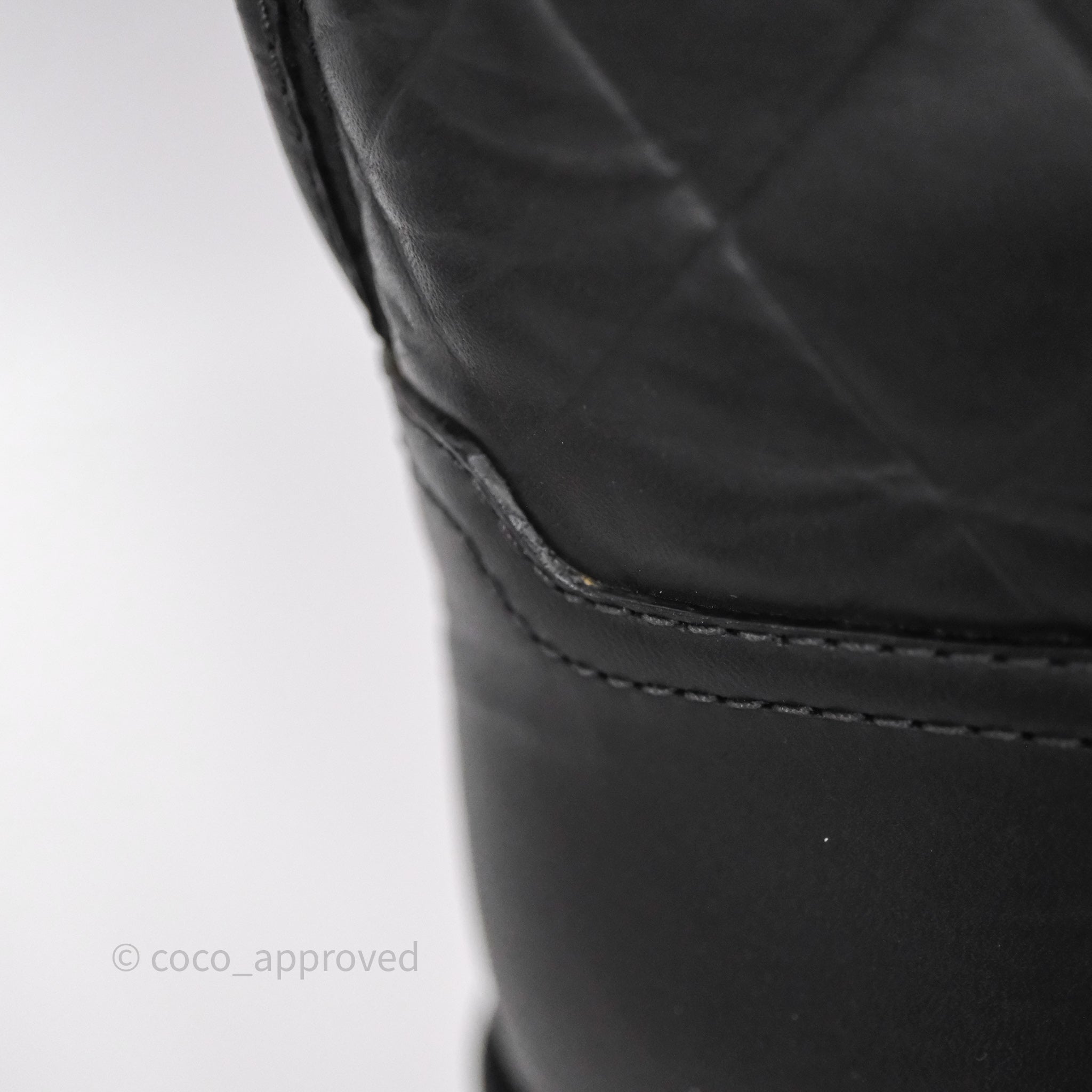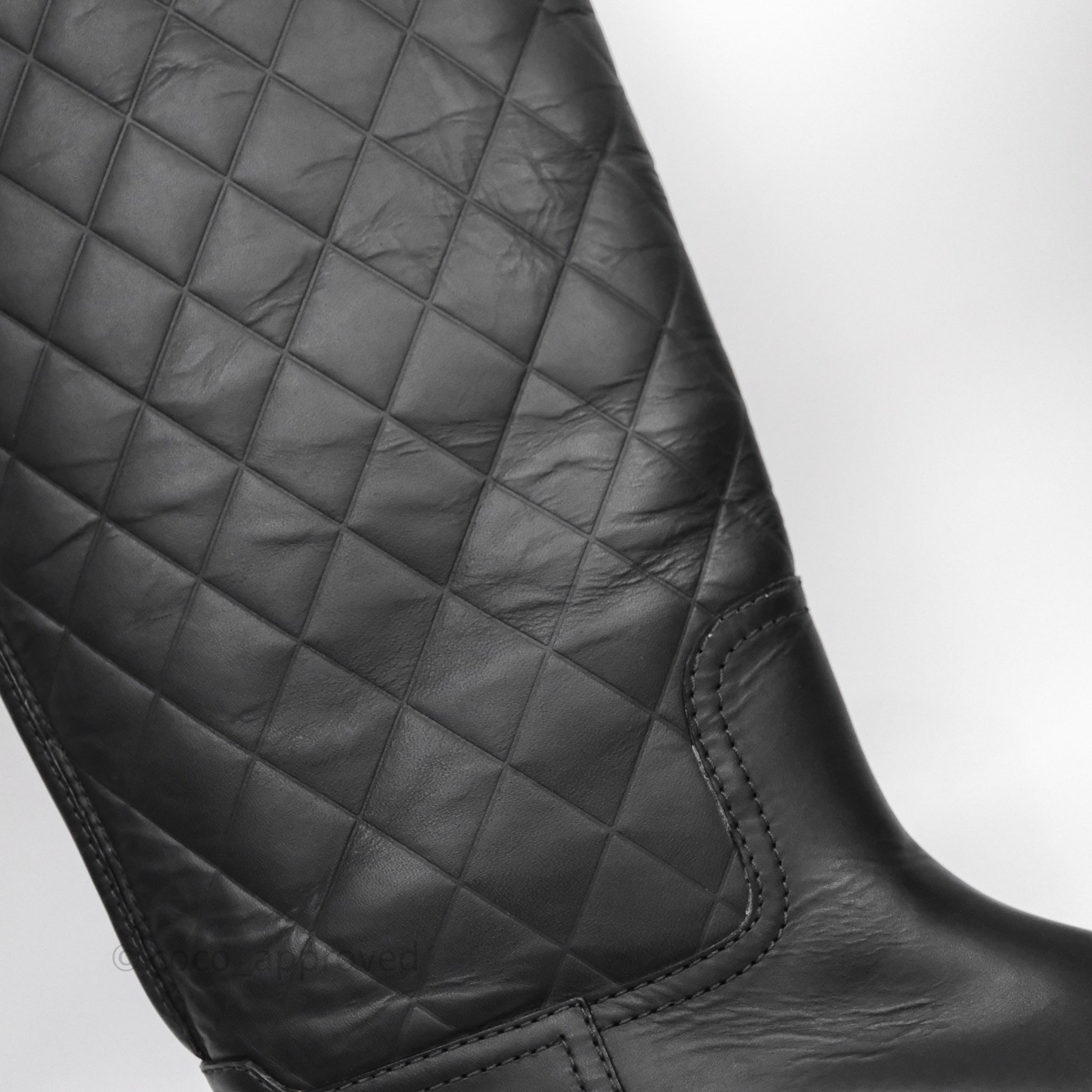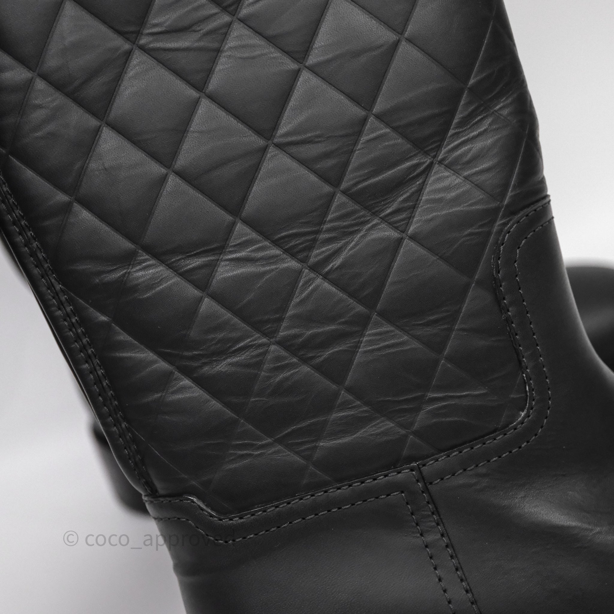 Chanel CC Quilted Knee High Boots Black Calfskin