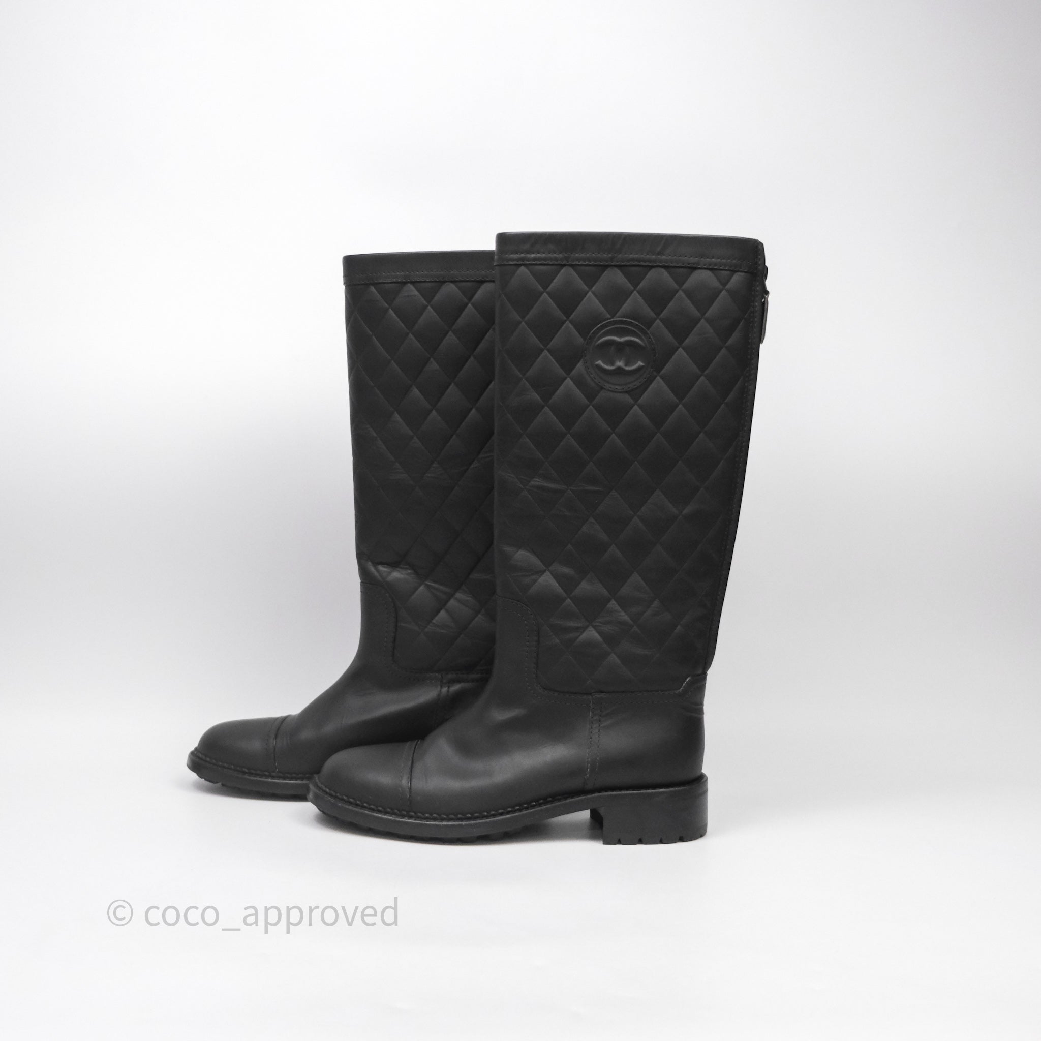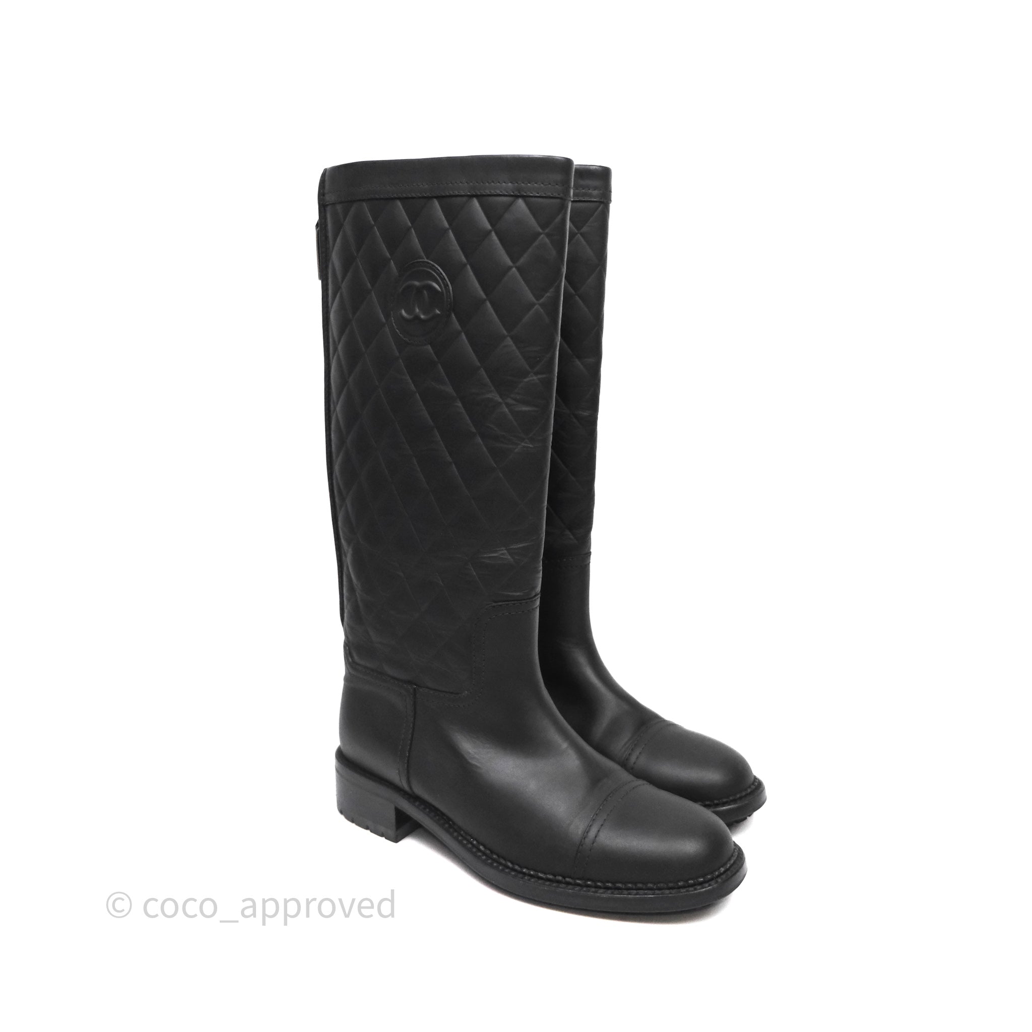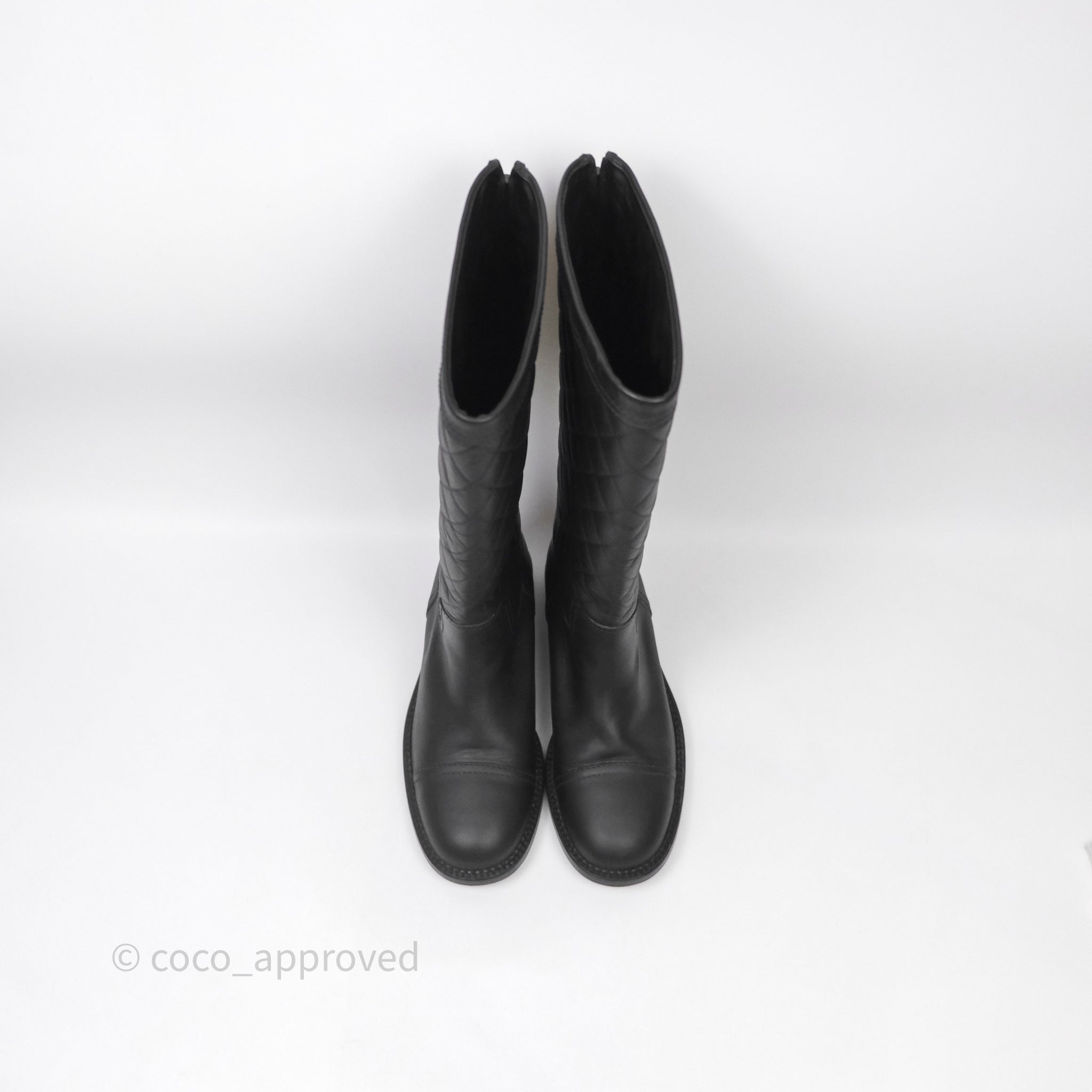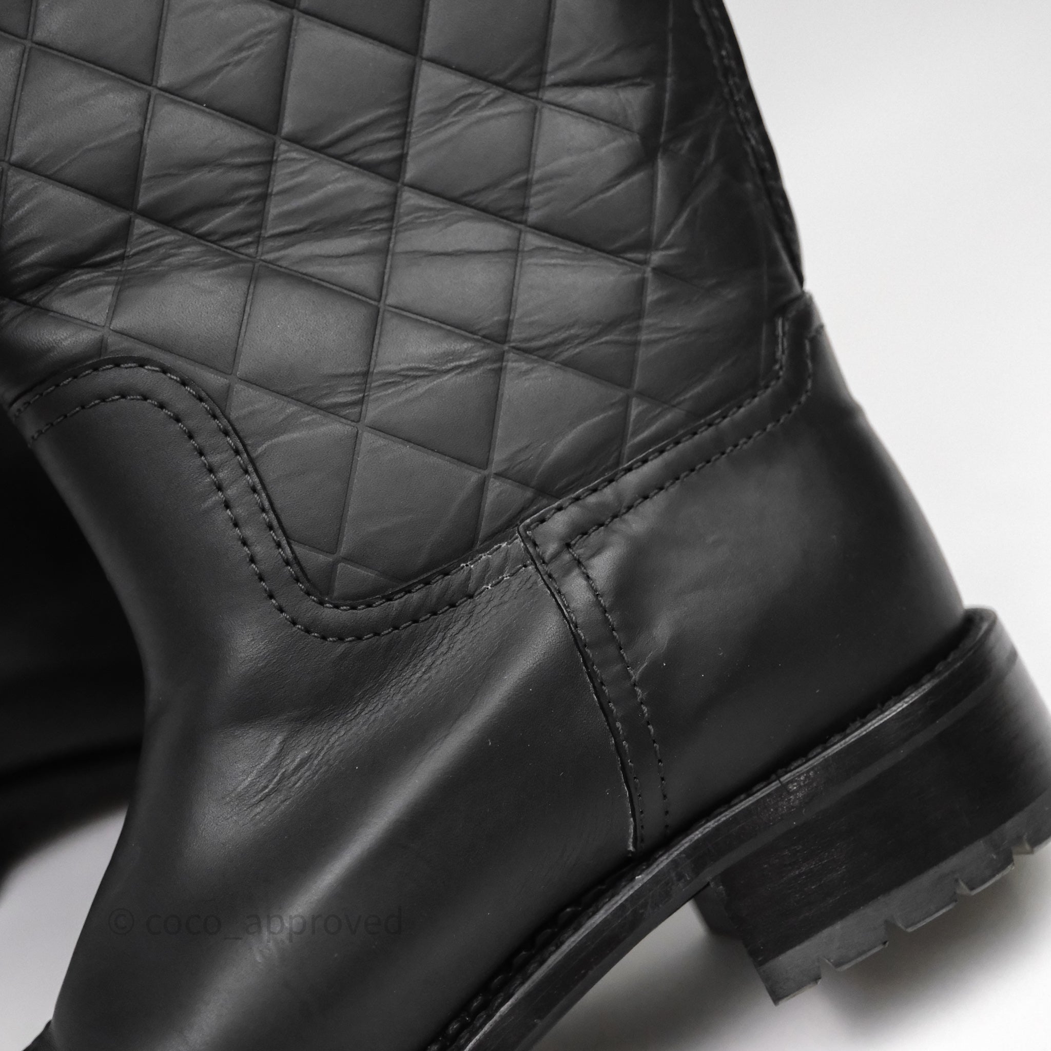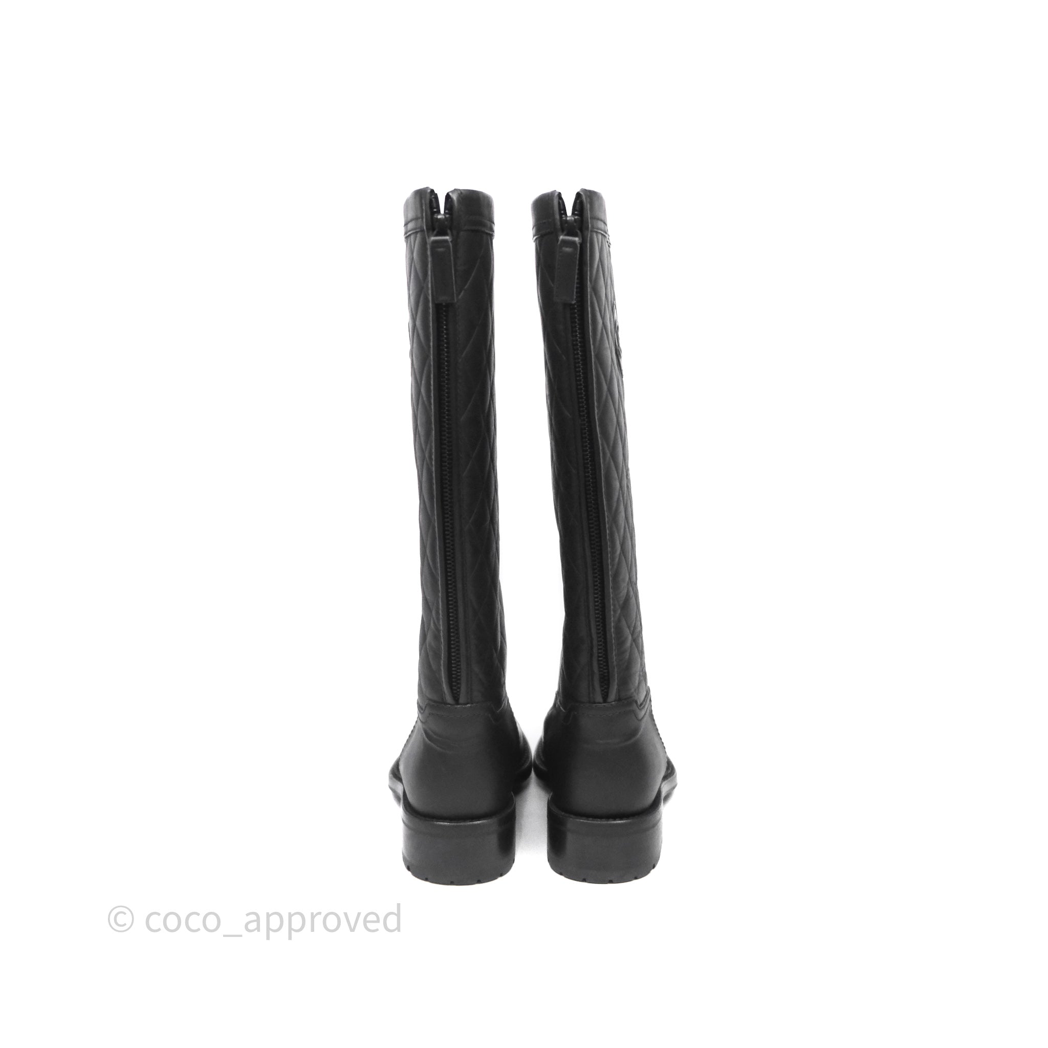 Chanel CC Quilted Knee High Boots Black Calfskin