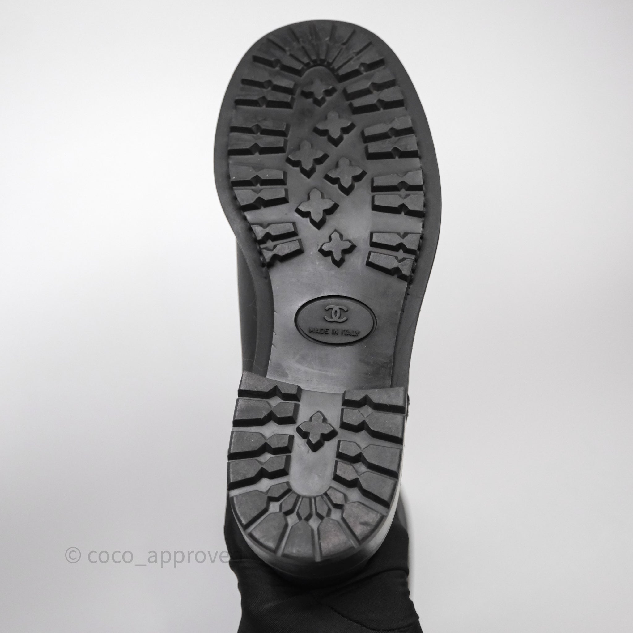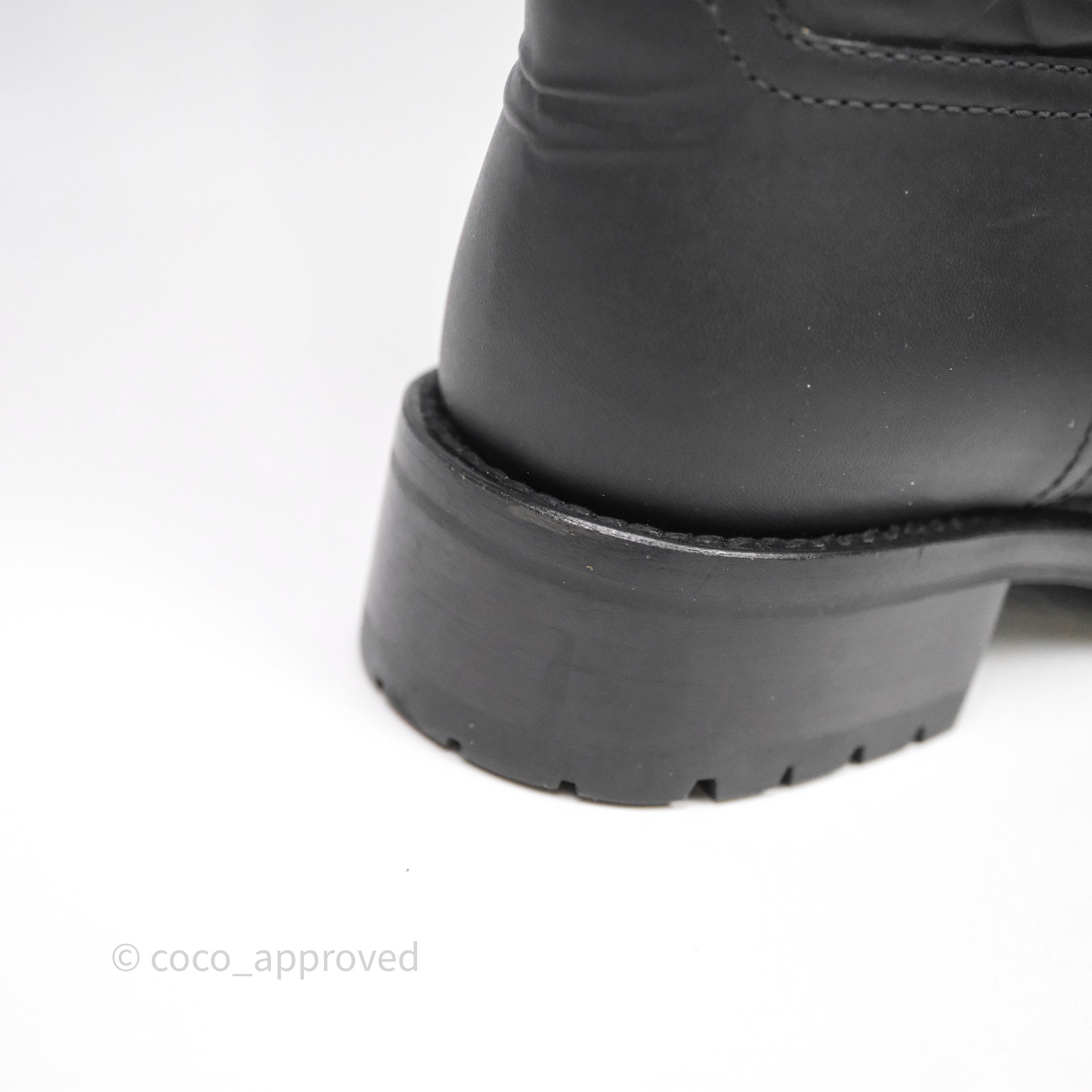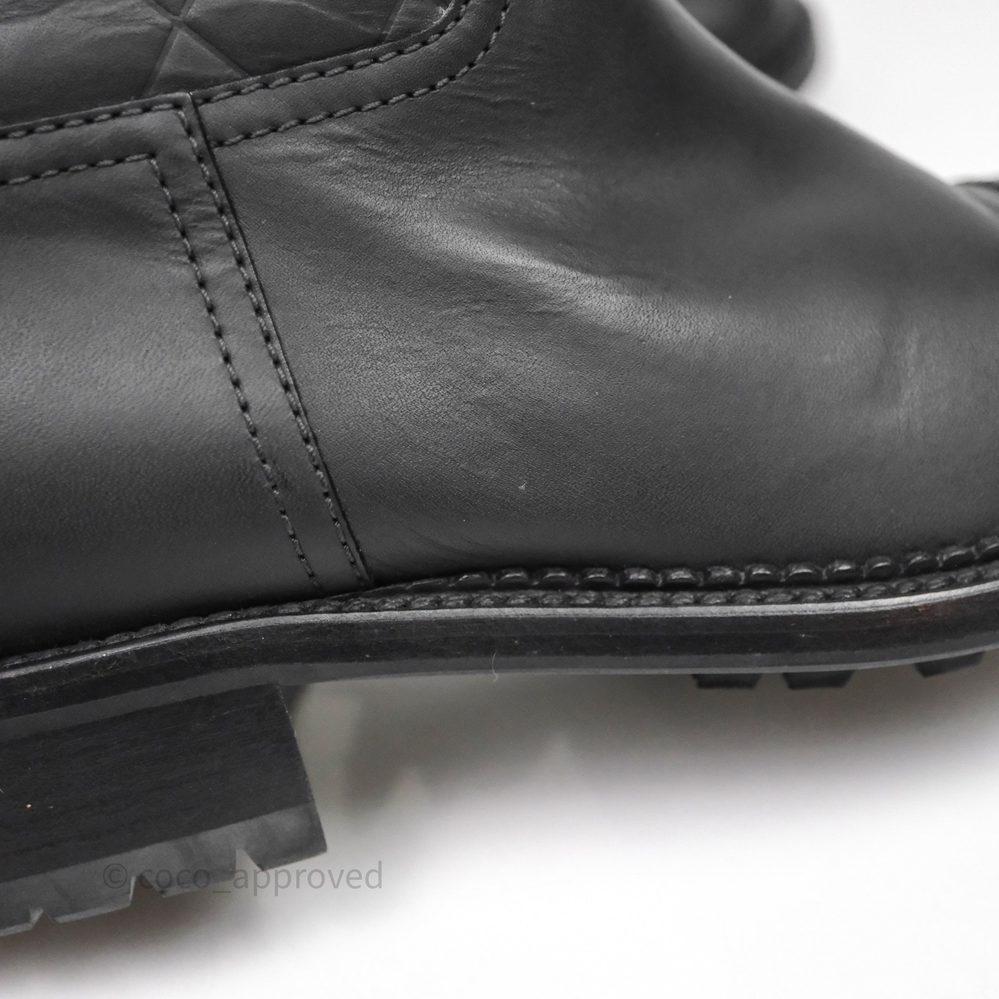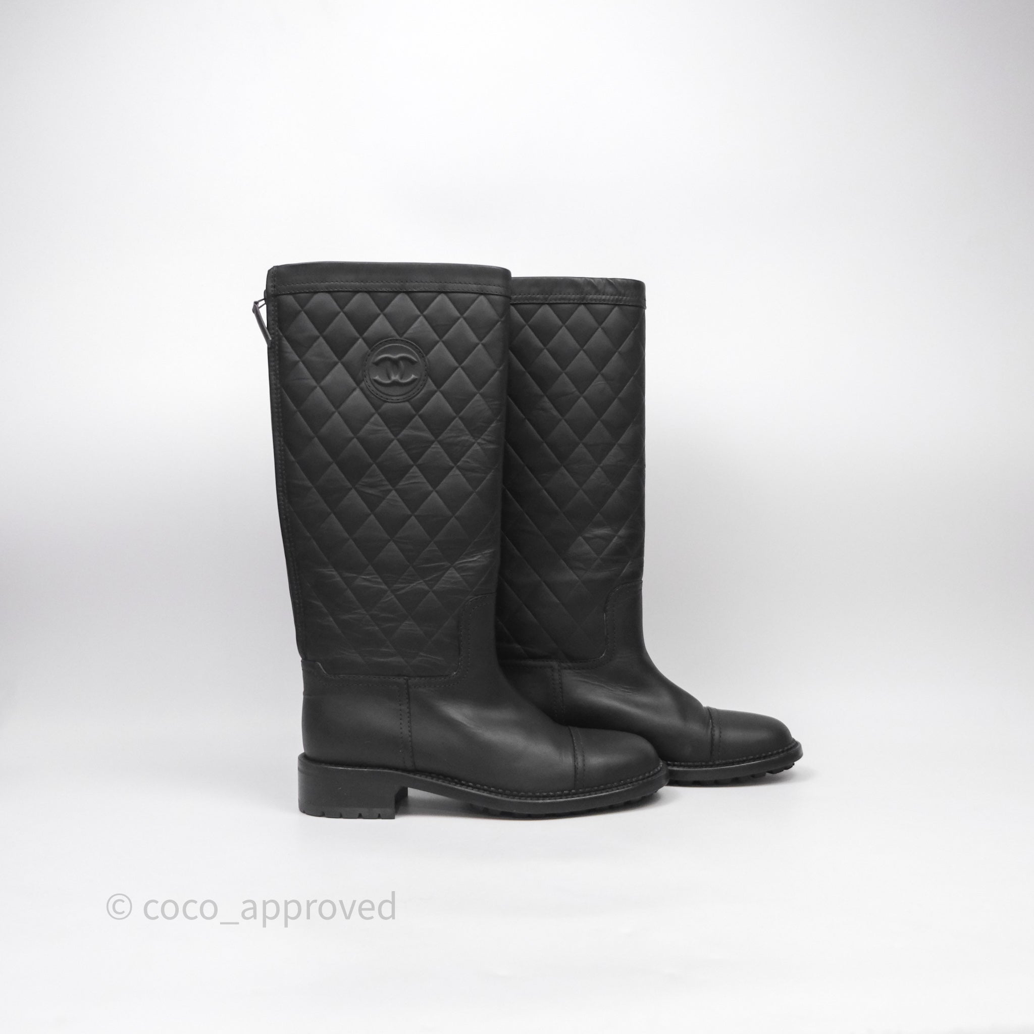 Chanel CC Quilted Knee High Boots Black Calfskin