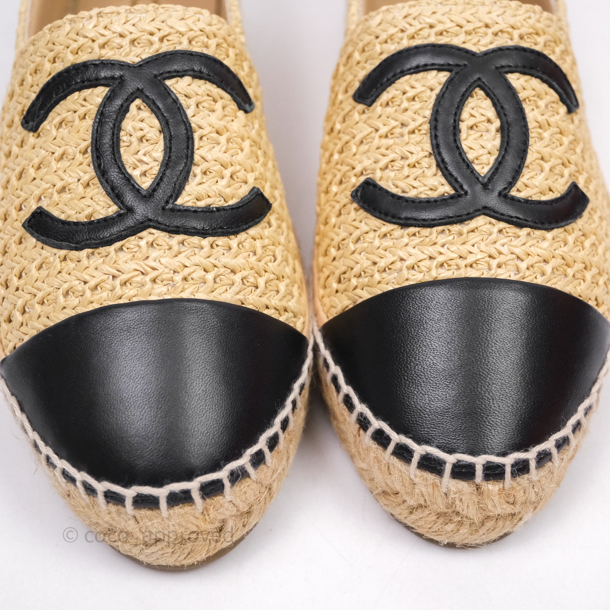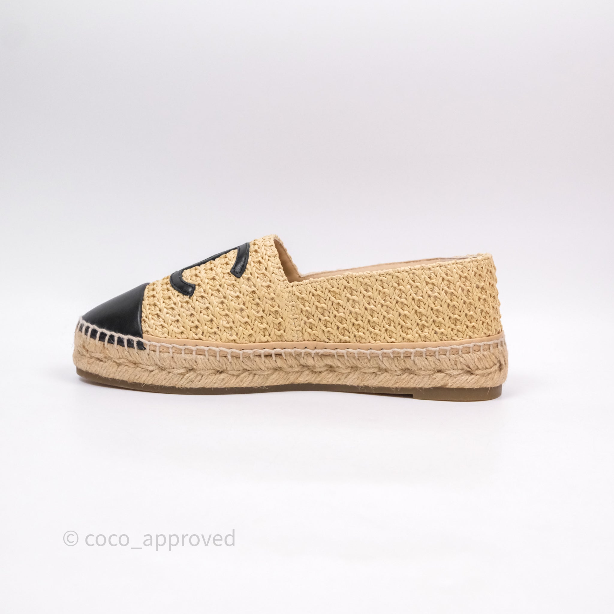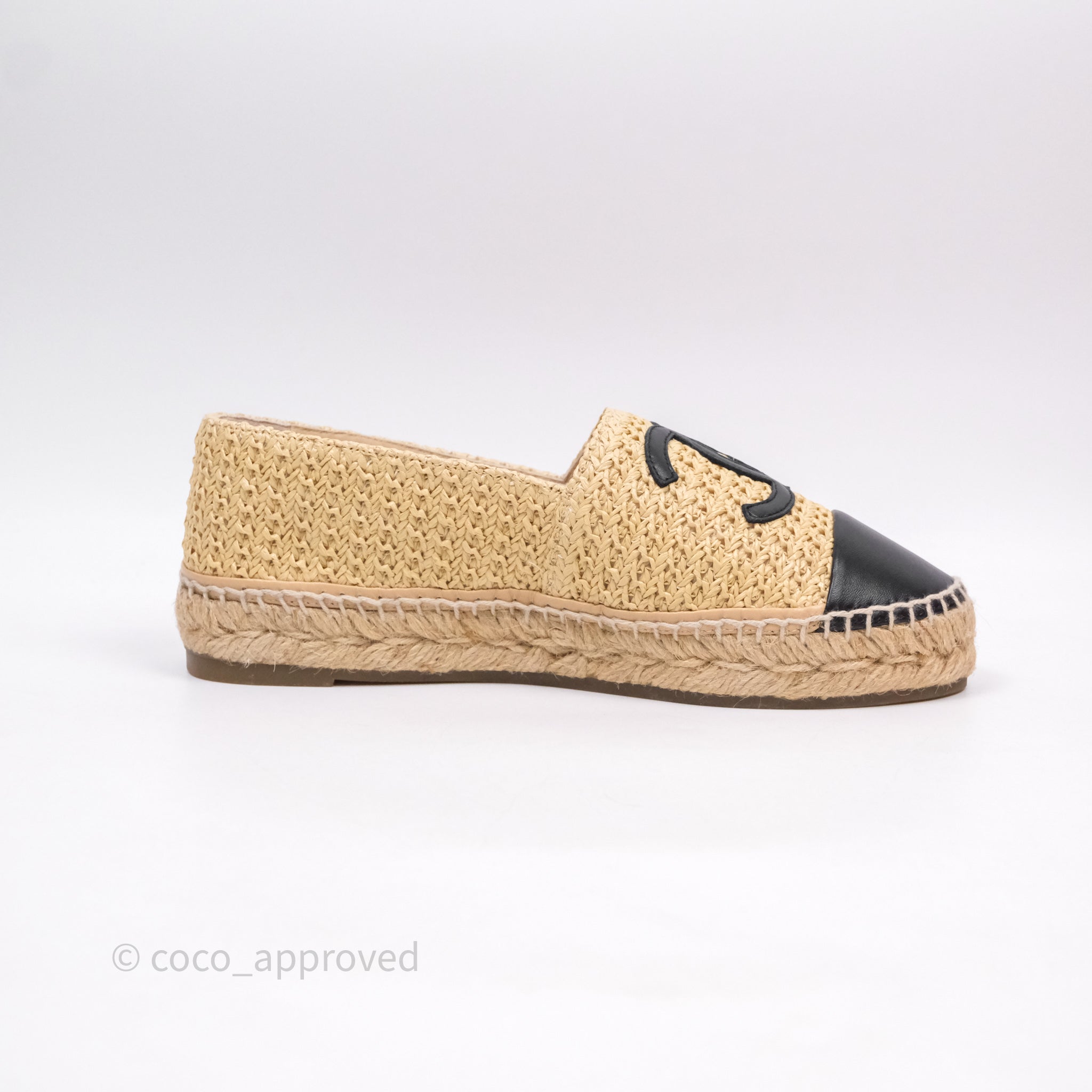 Chanel Espadrilles Raffia Black & Beige Size 38