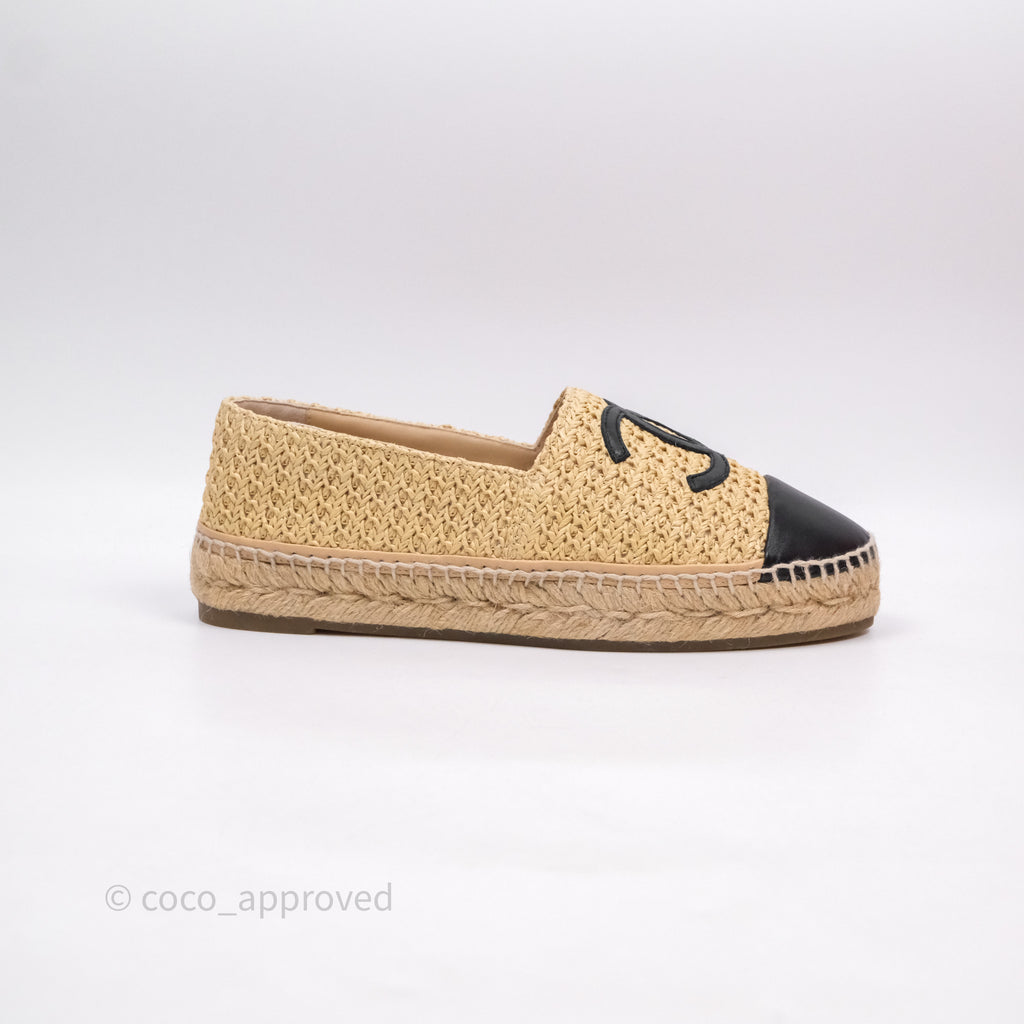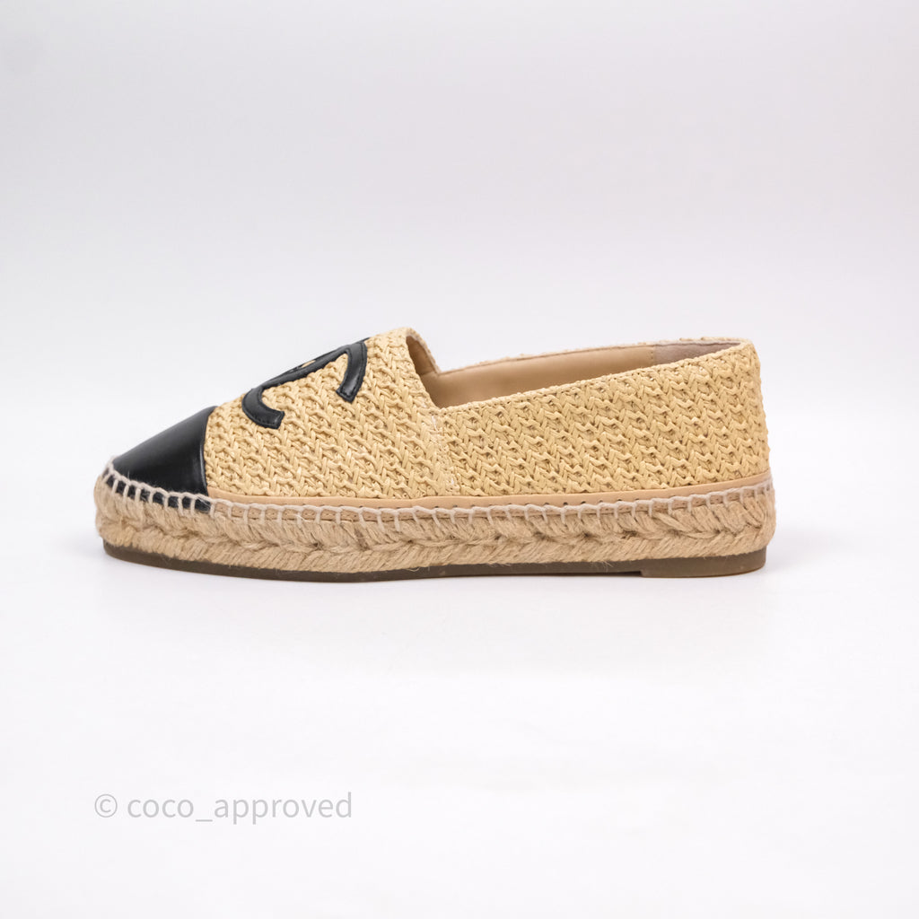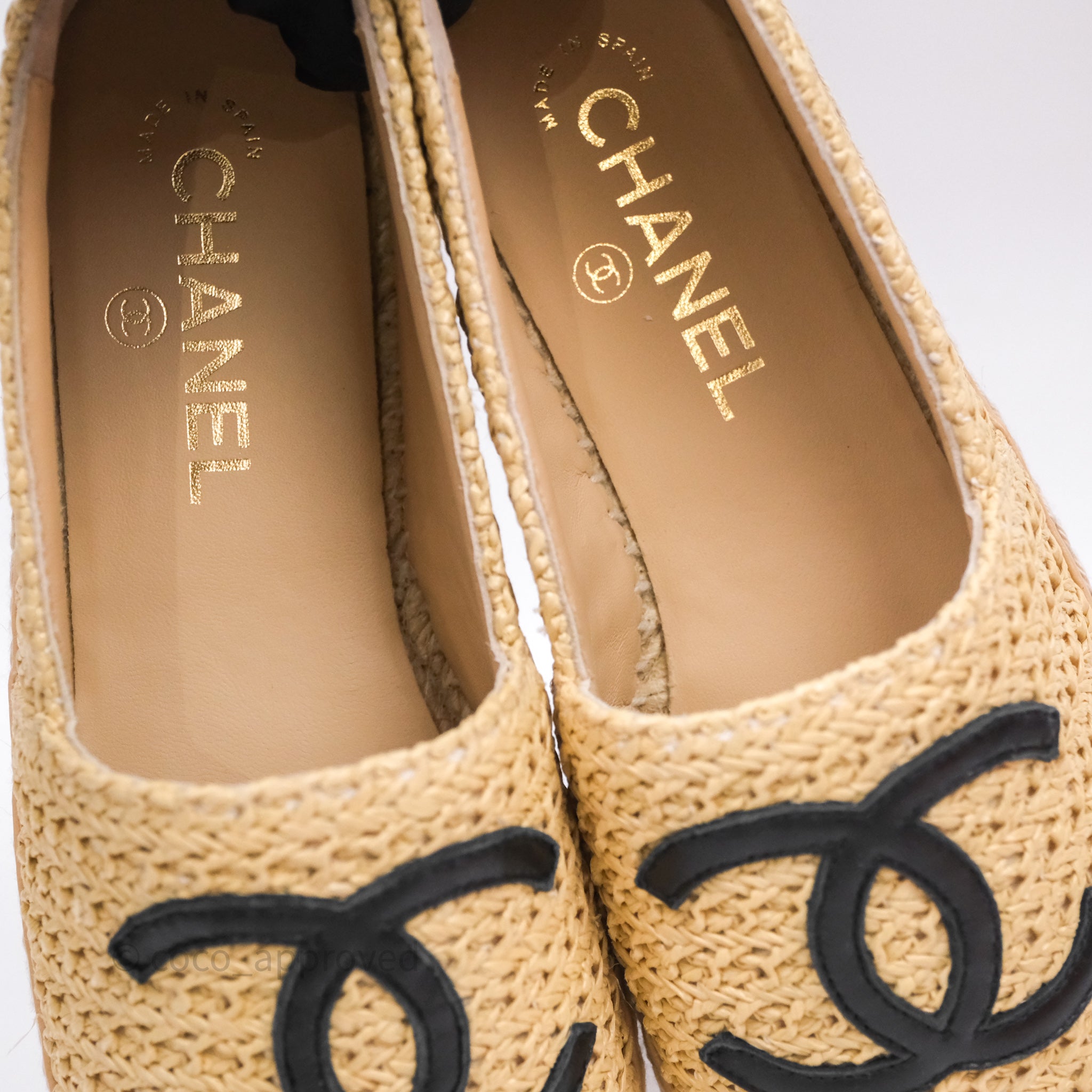 Chanel Espadrilles Raffia Black & Beige Size 38
