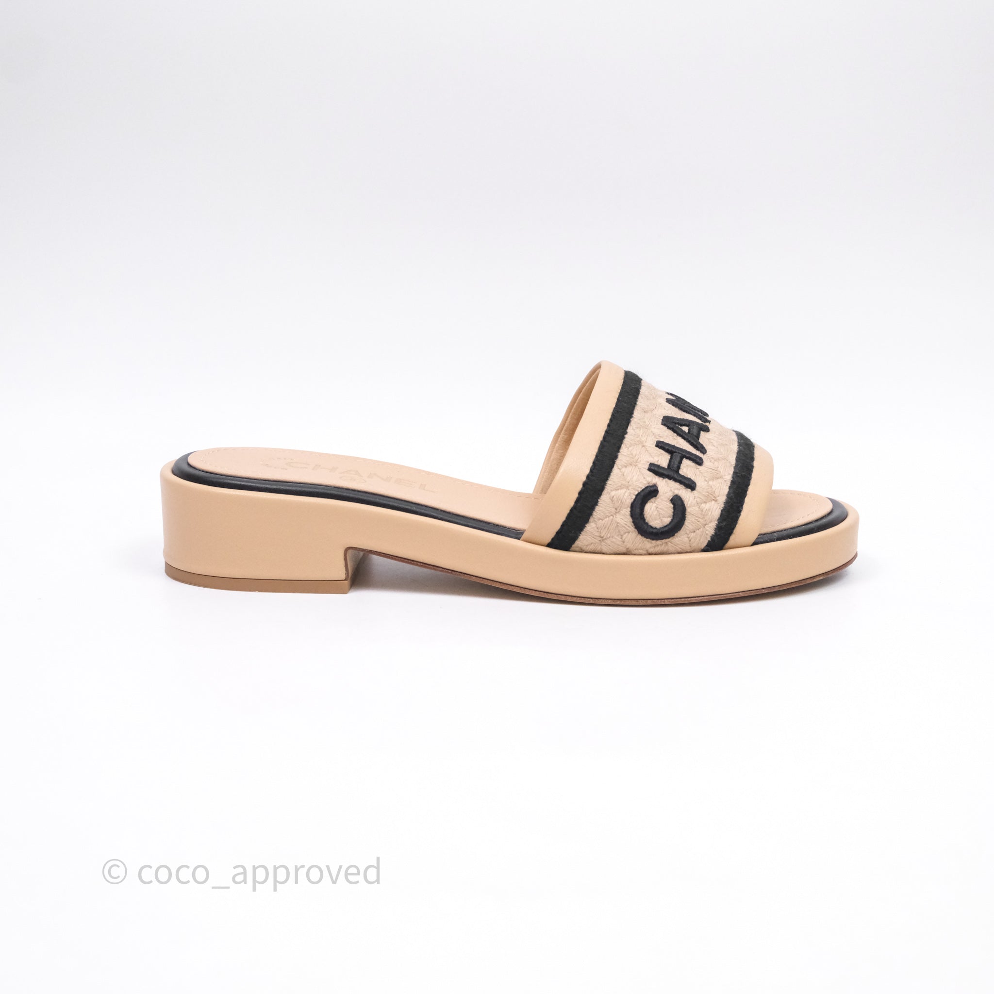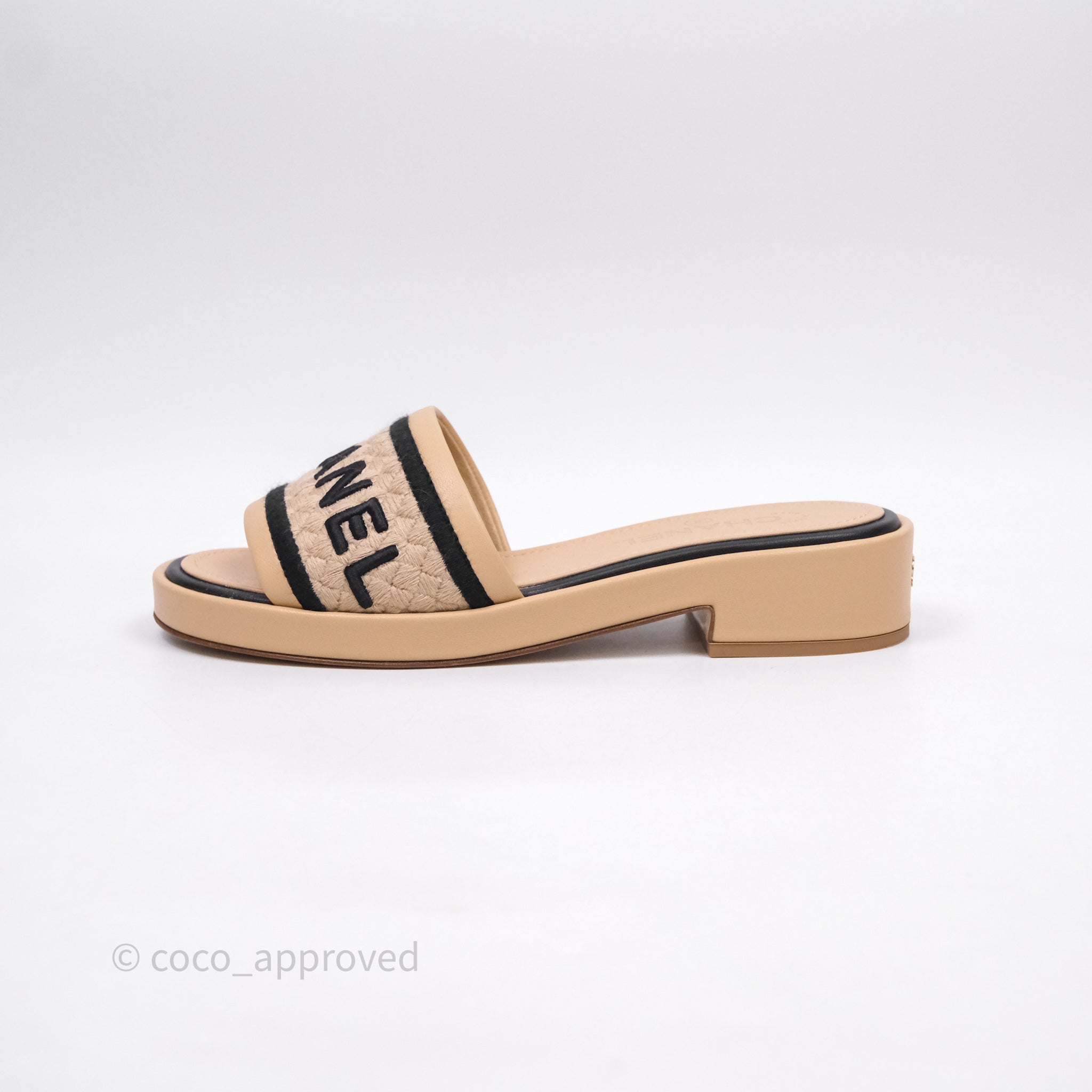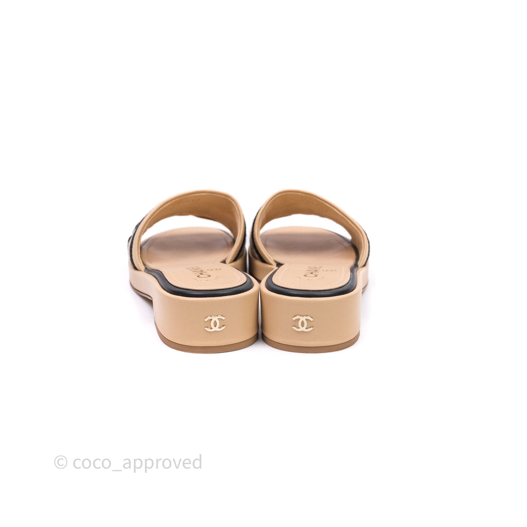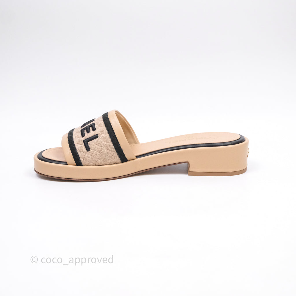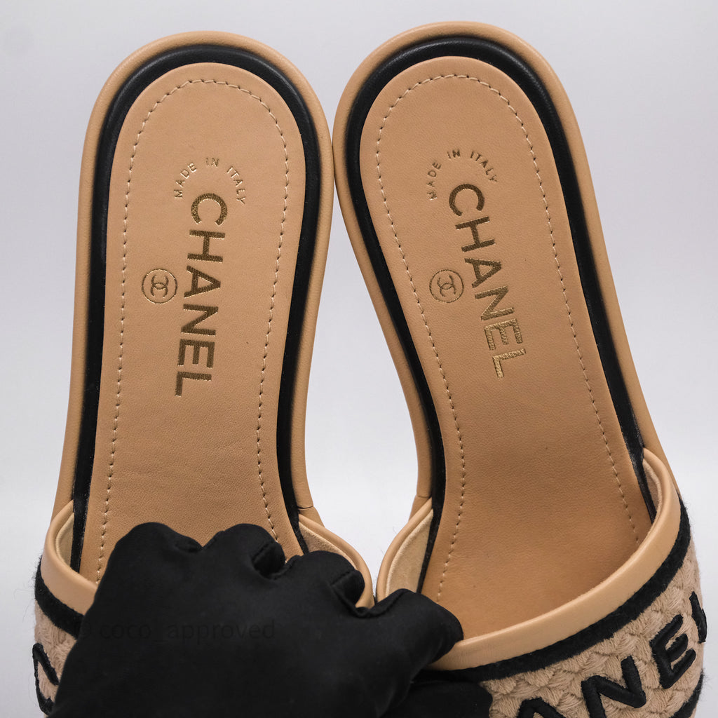 Chanel Logo Slippers Beige Size 37.5