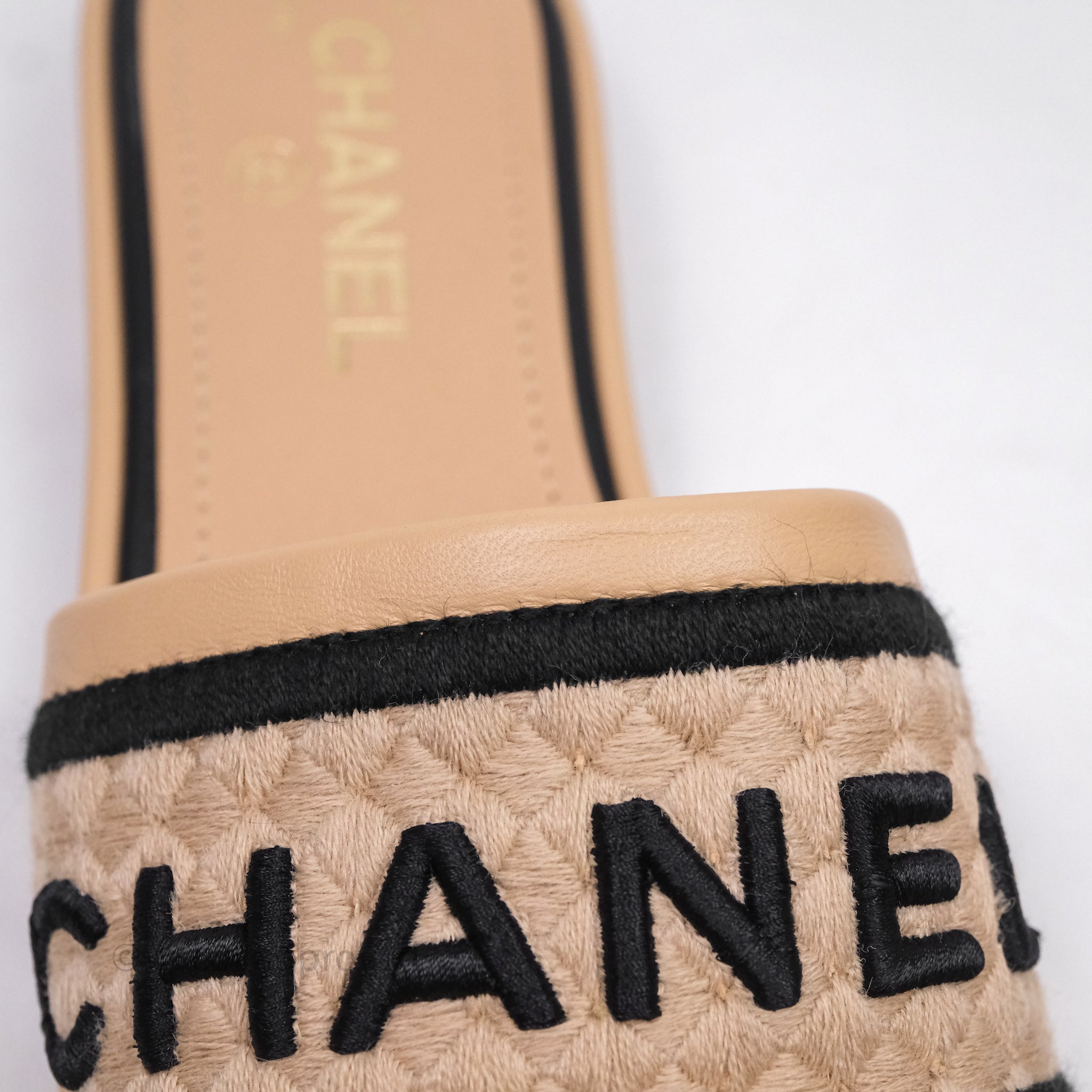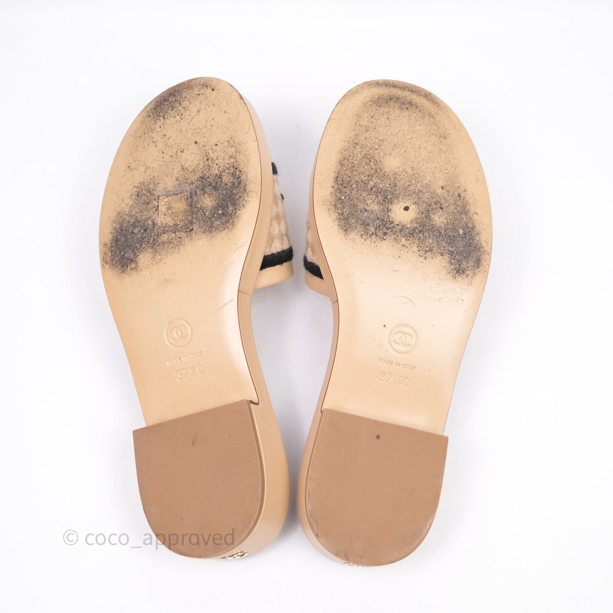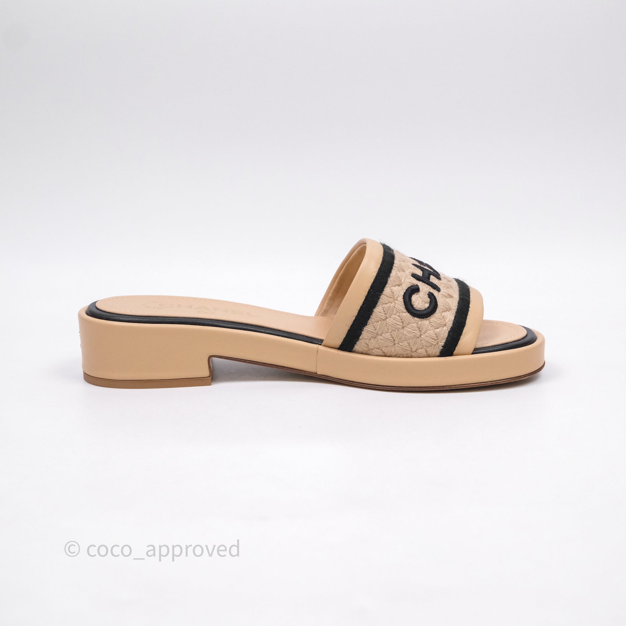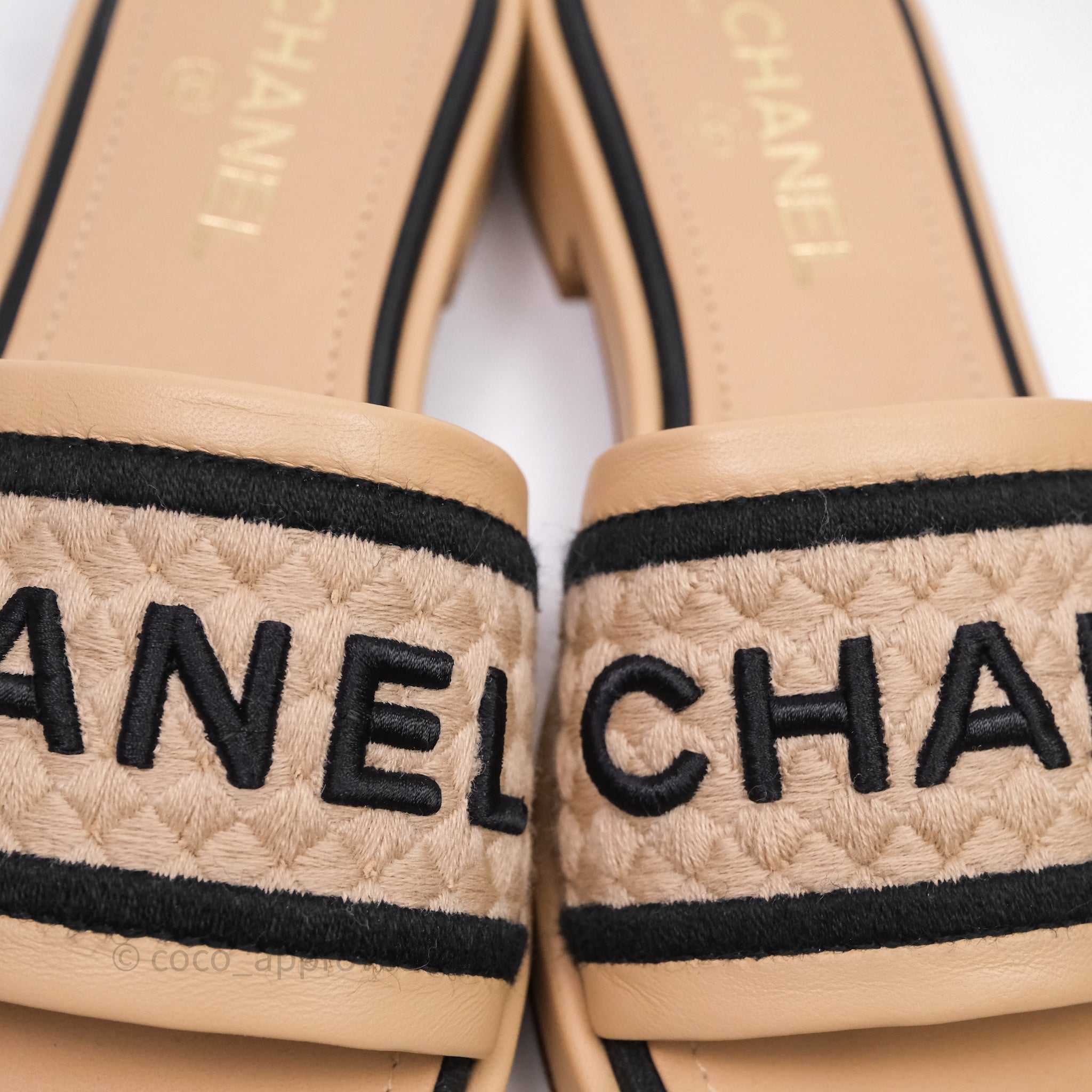 Chanel Logo Slippers Beige Size 37.5