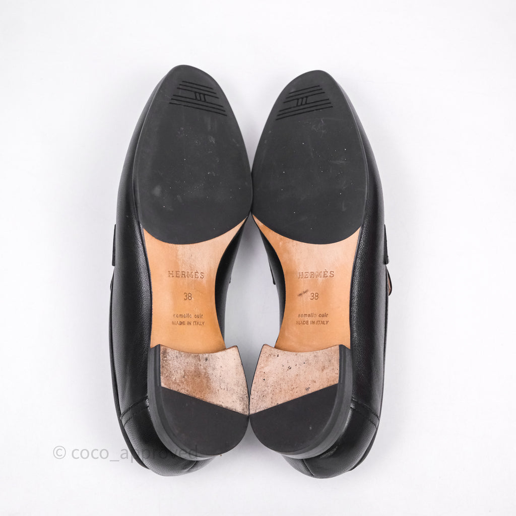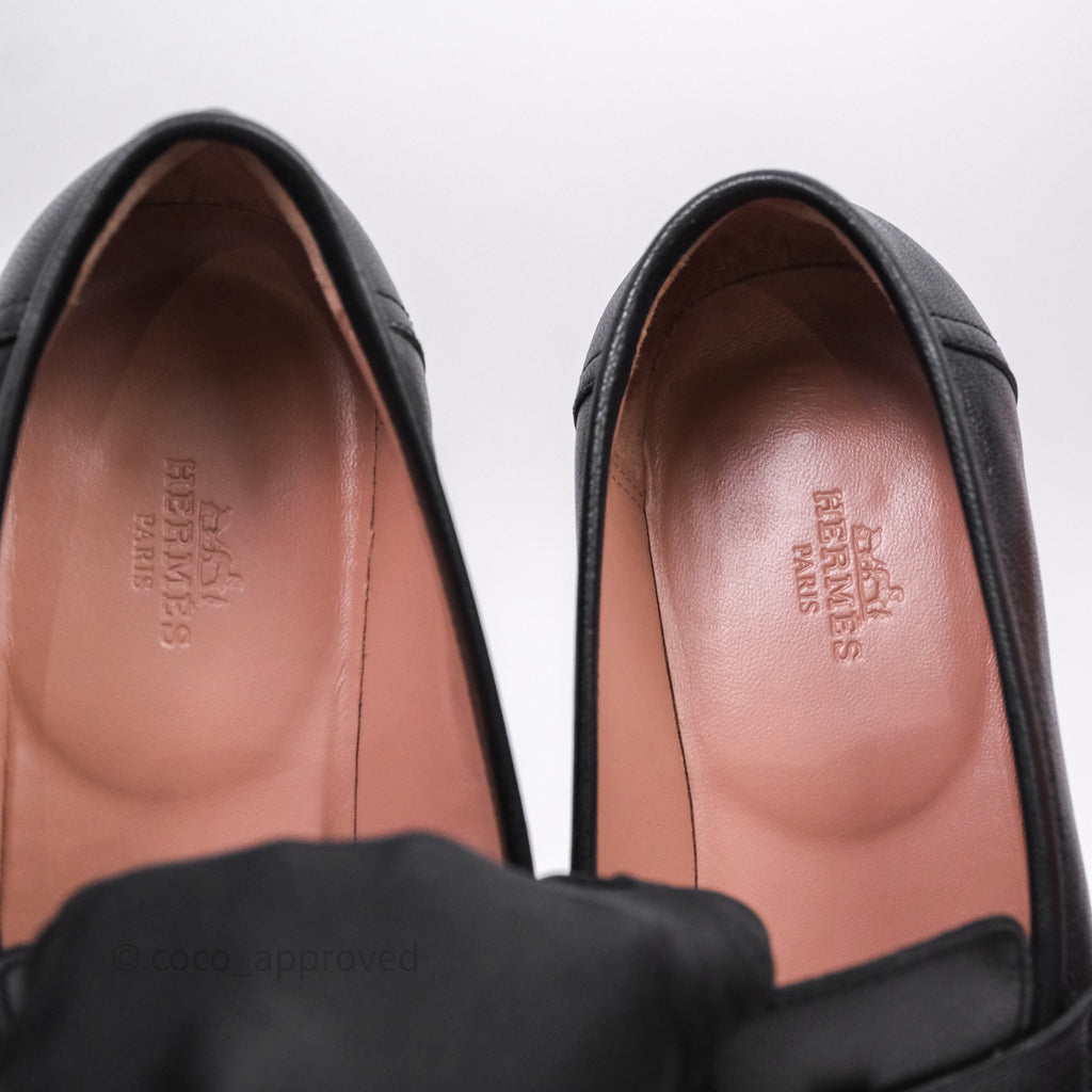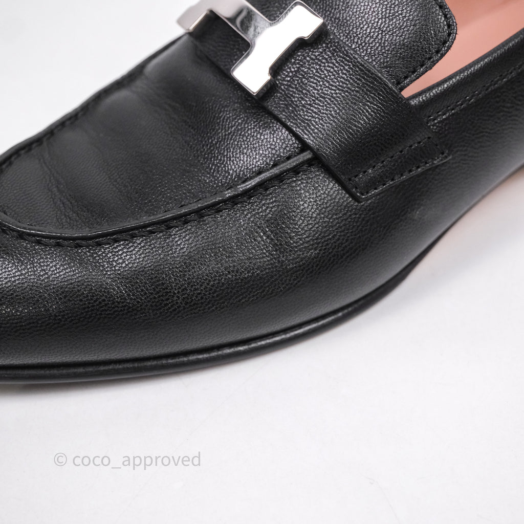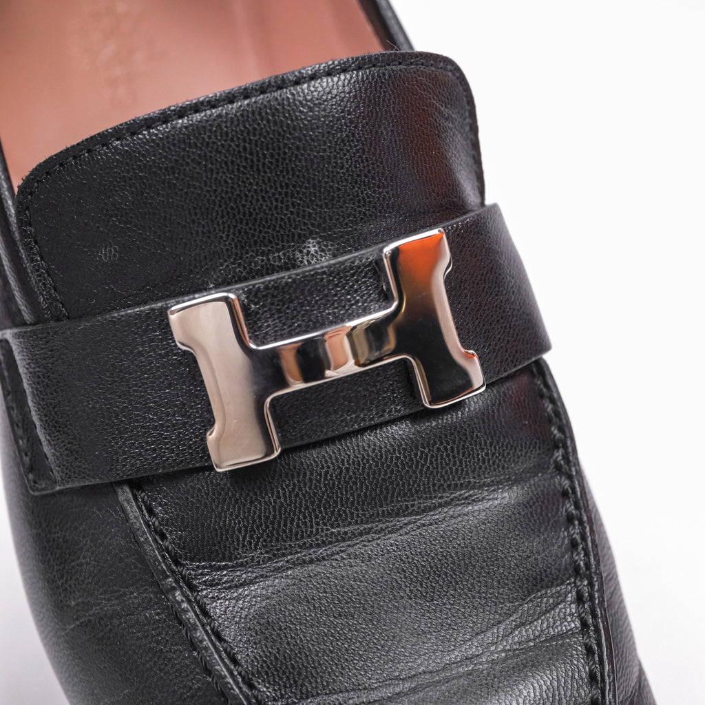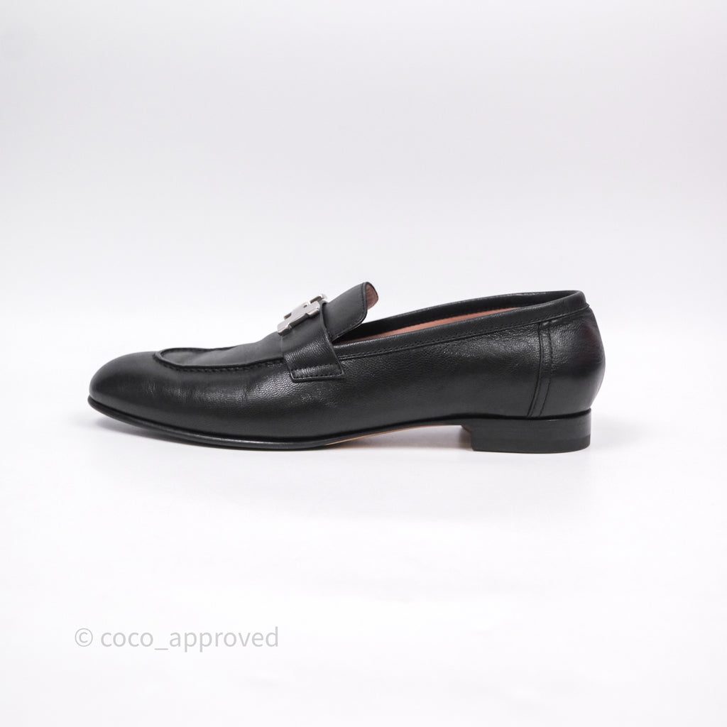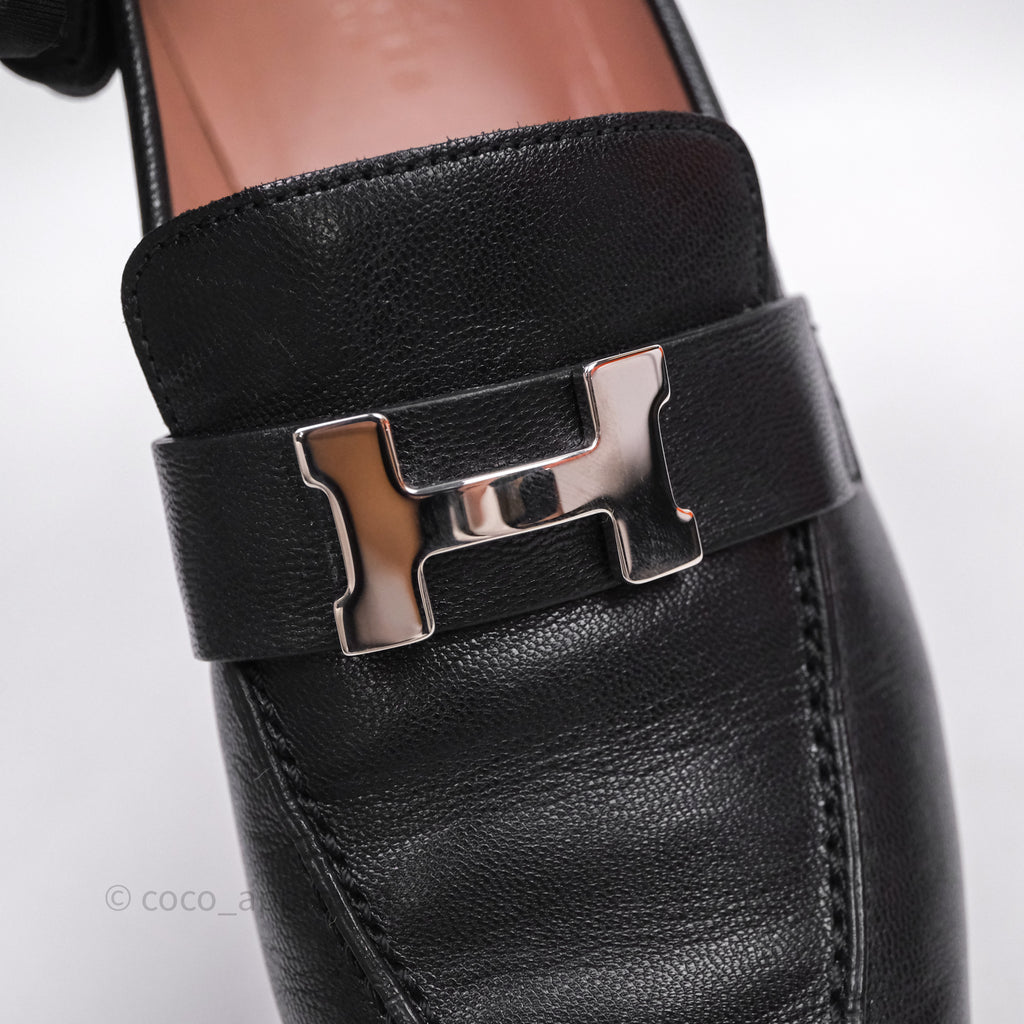 Hermès Paris Loafer Black Goatskin Palladium H Buckle Size 38