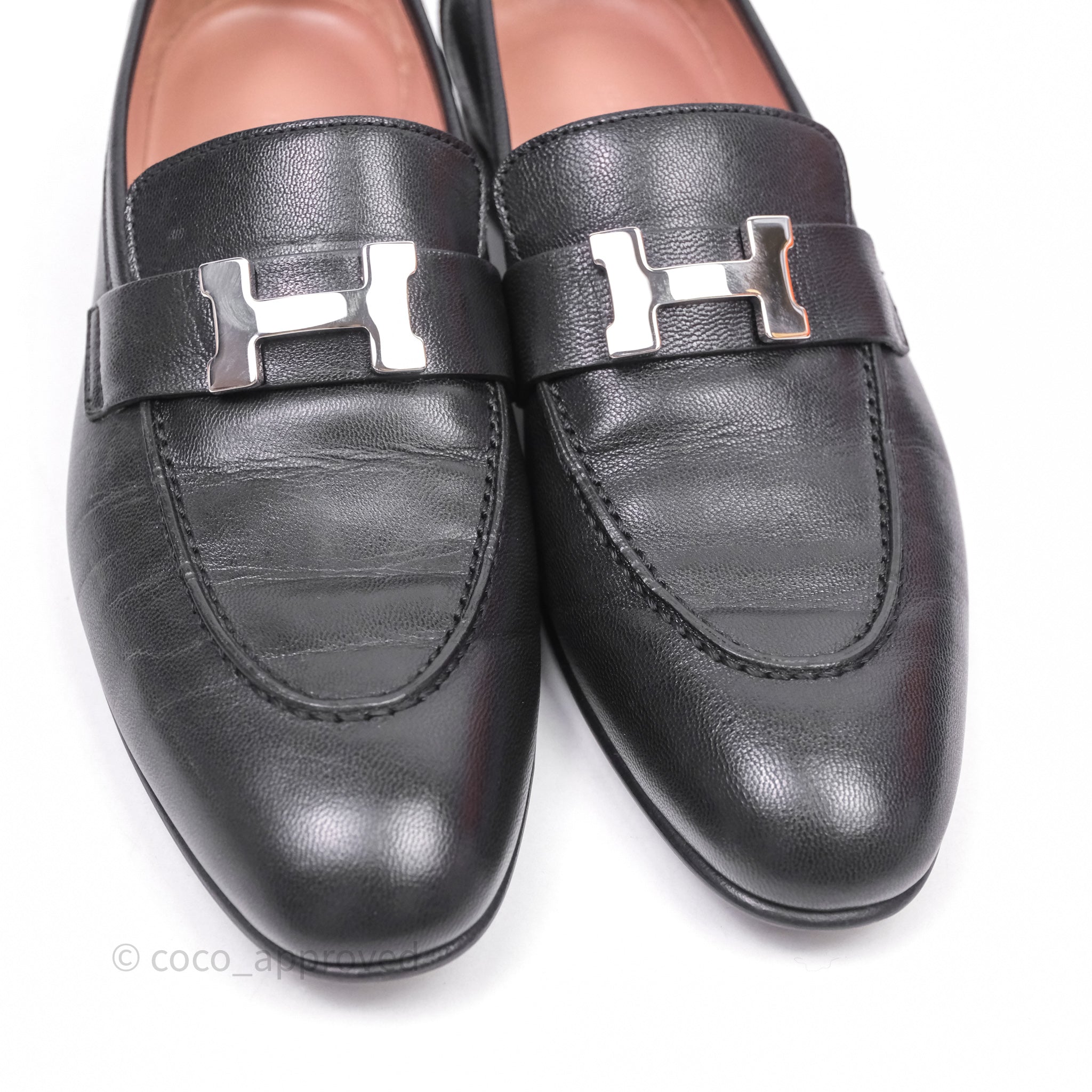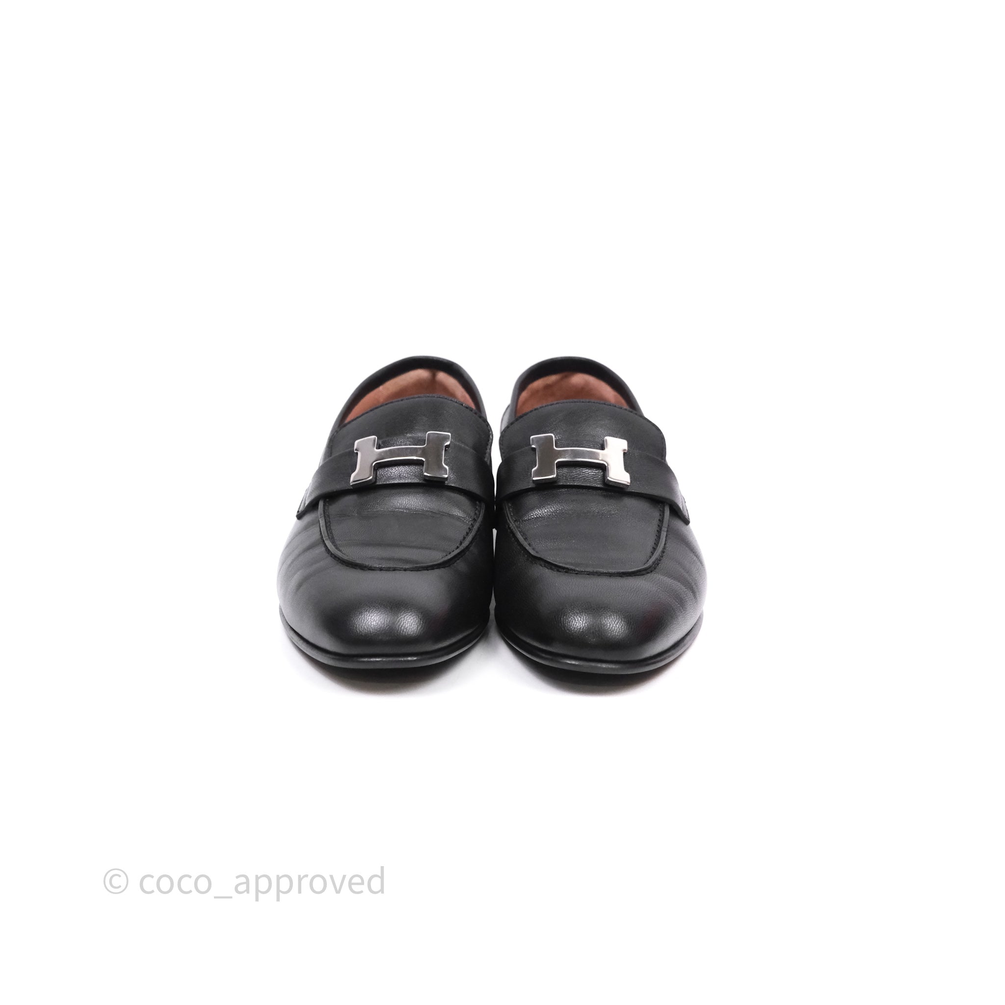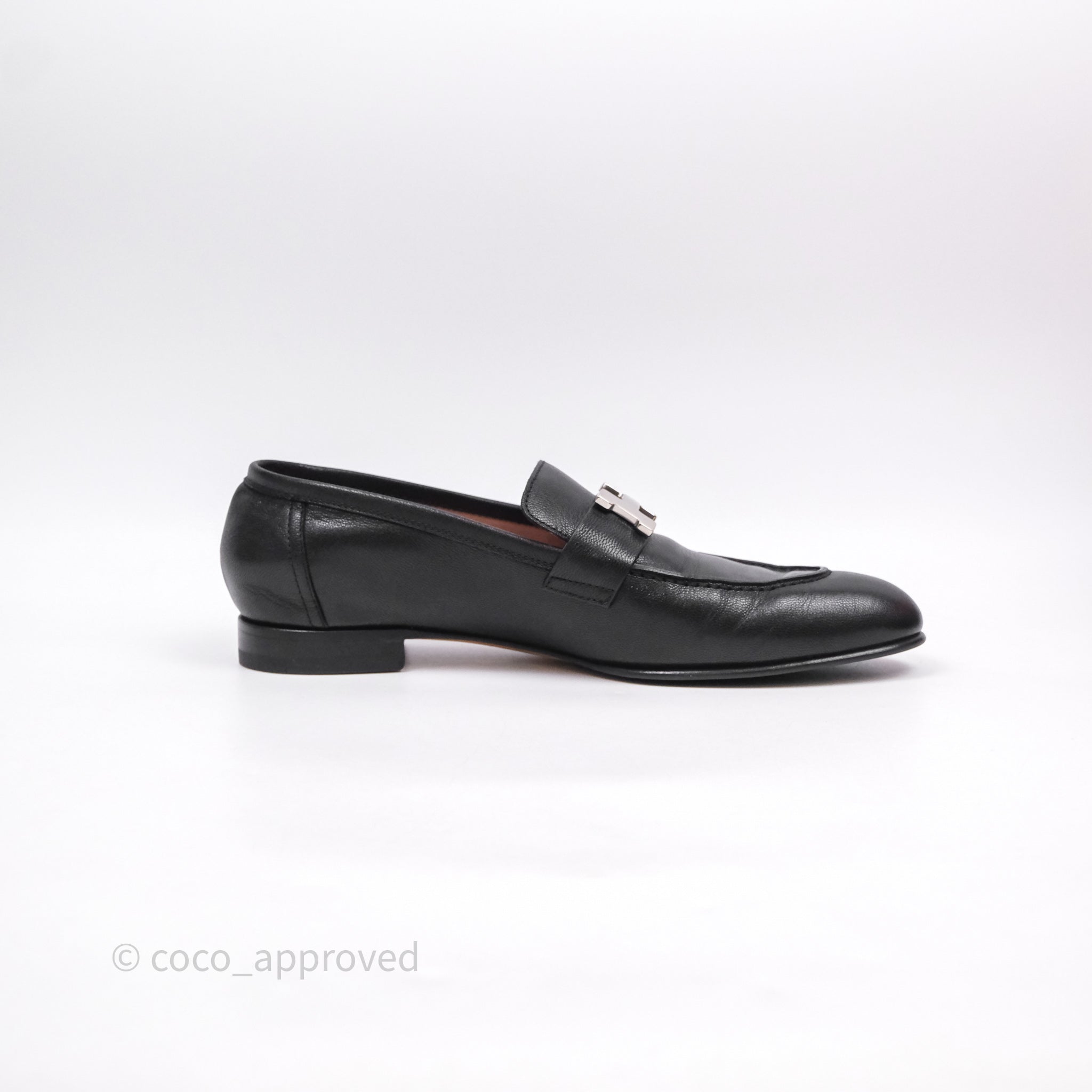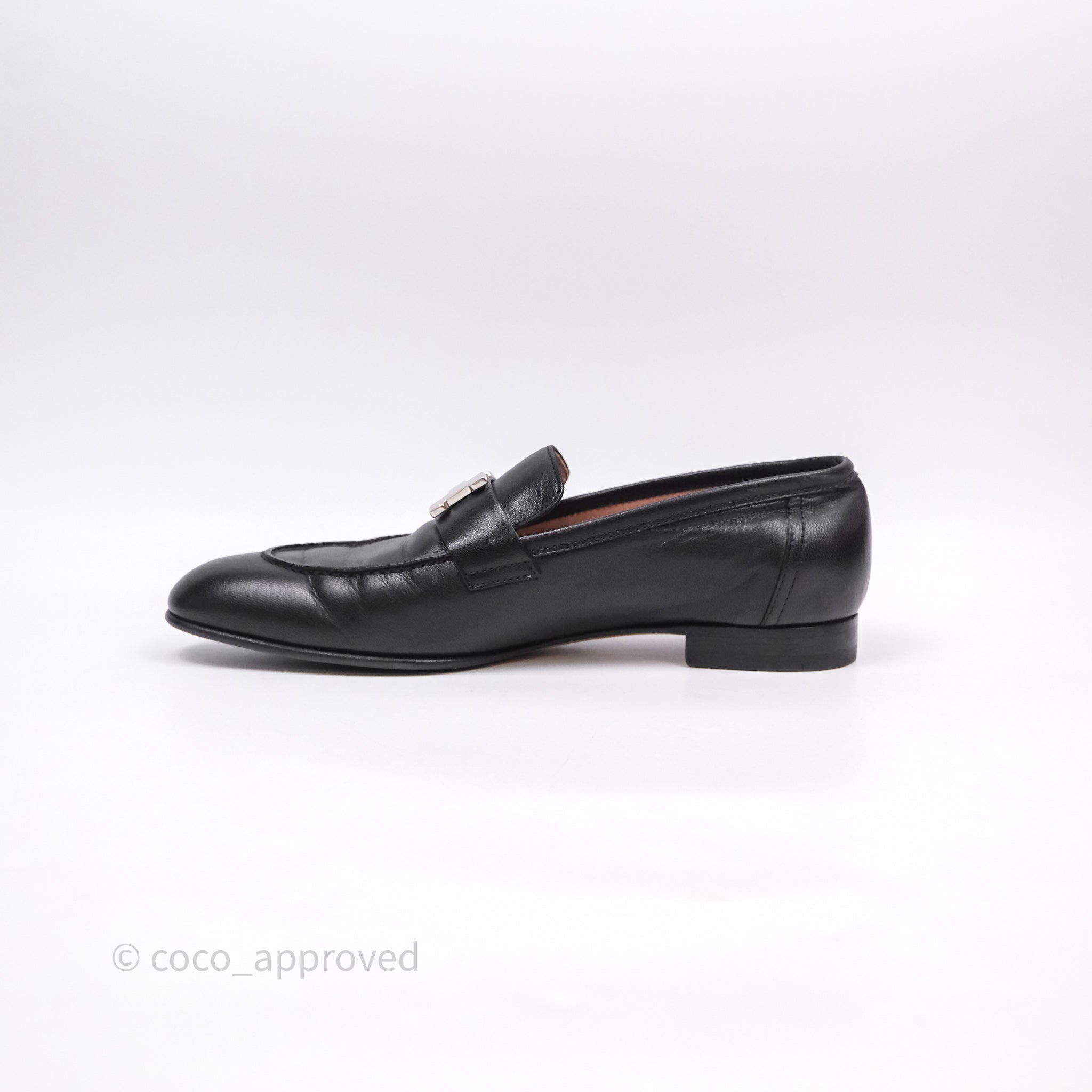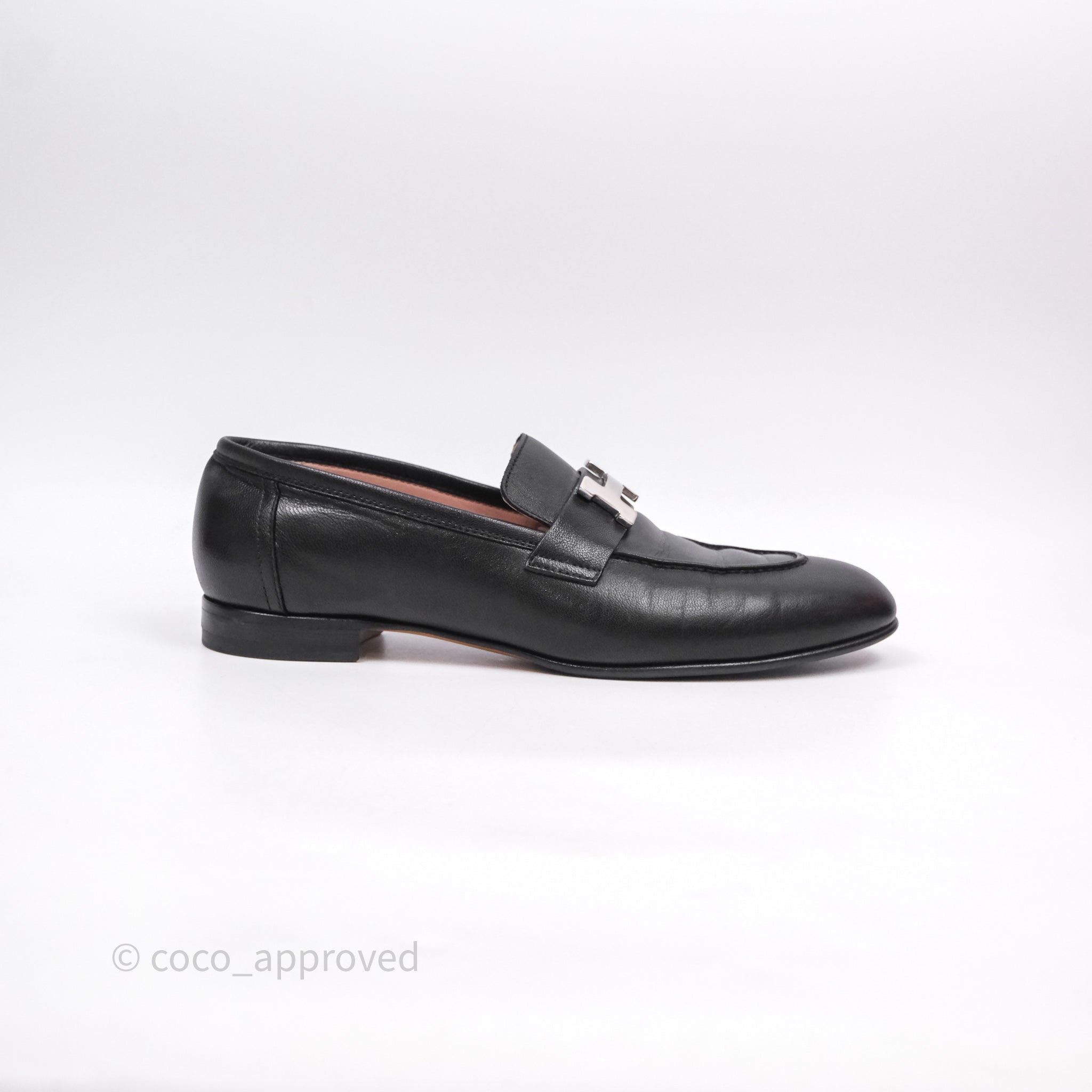 Hermès Paris Loafer Black Goatskin Palladium H Buckle Size 38