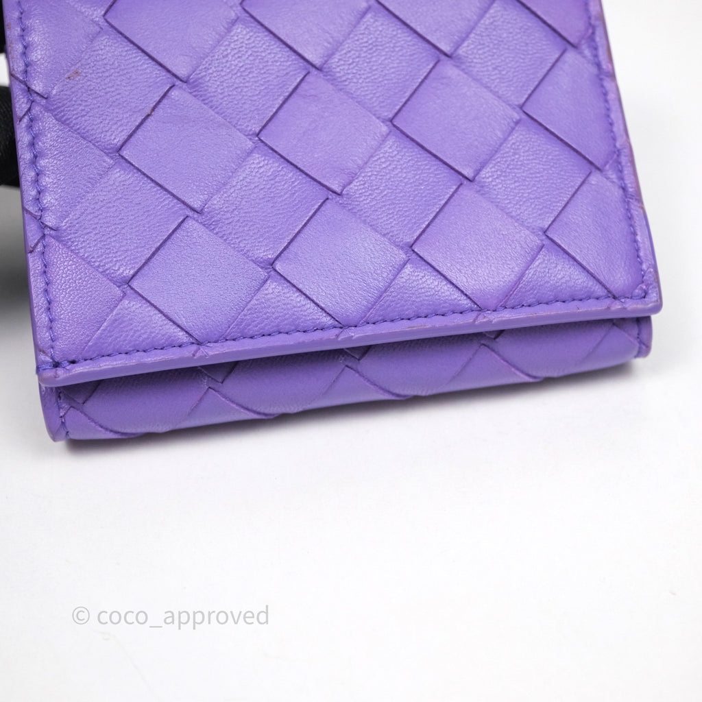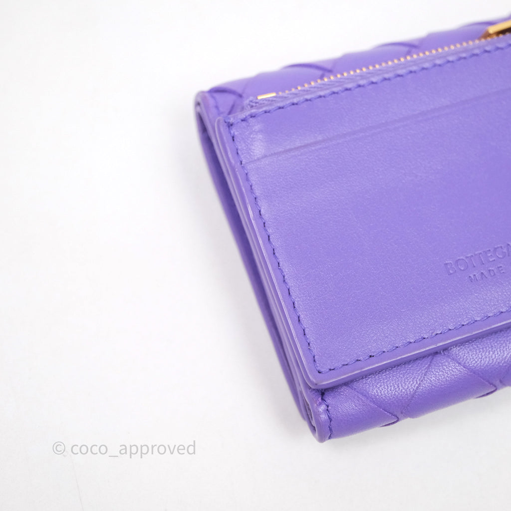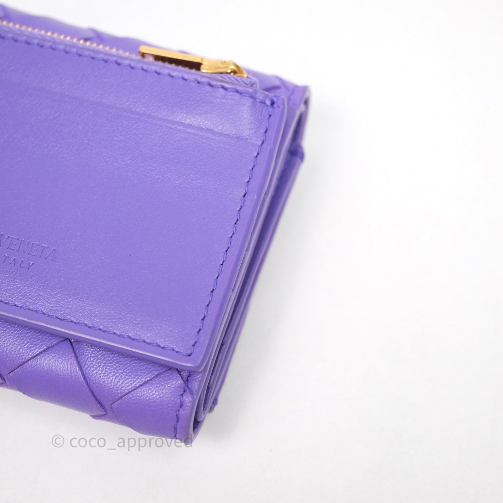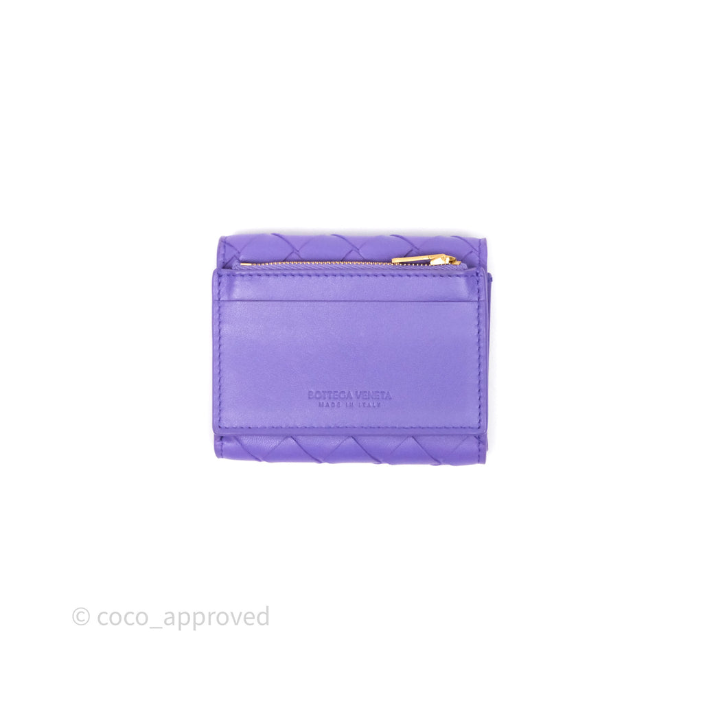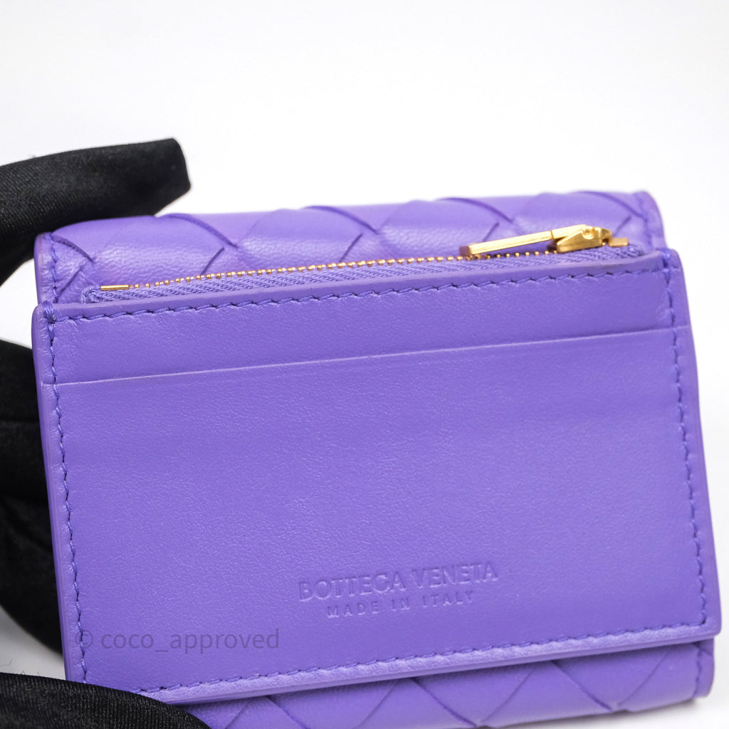Bottega Veneta Purple Small Intrecciato Tri-Fold Zip Wallet