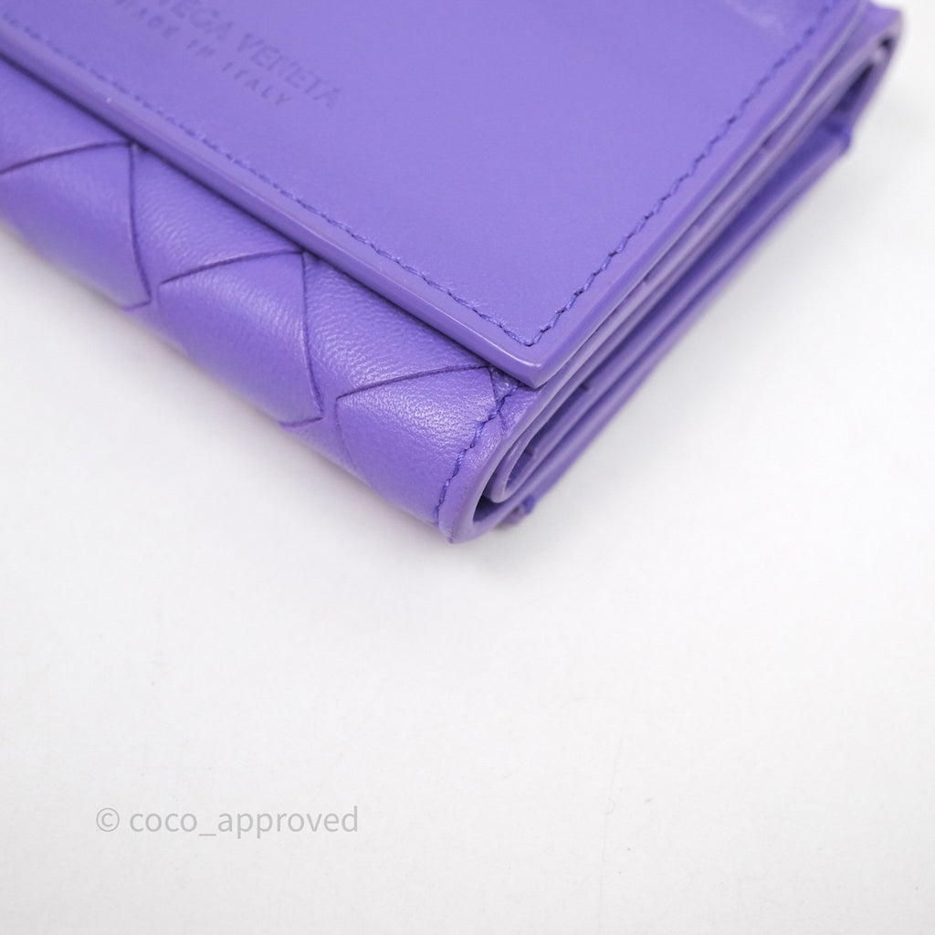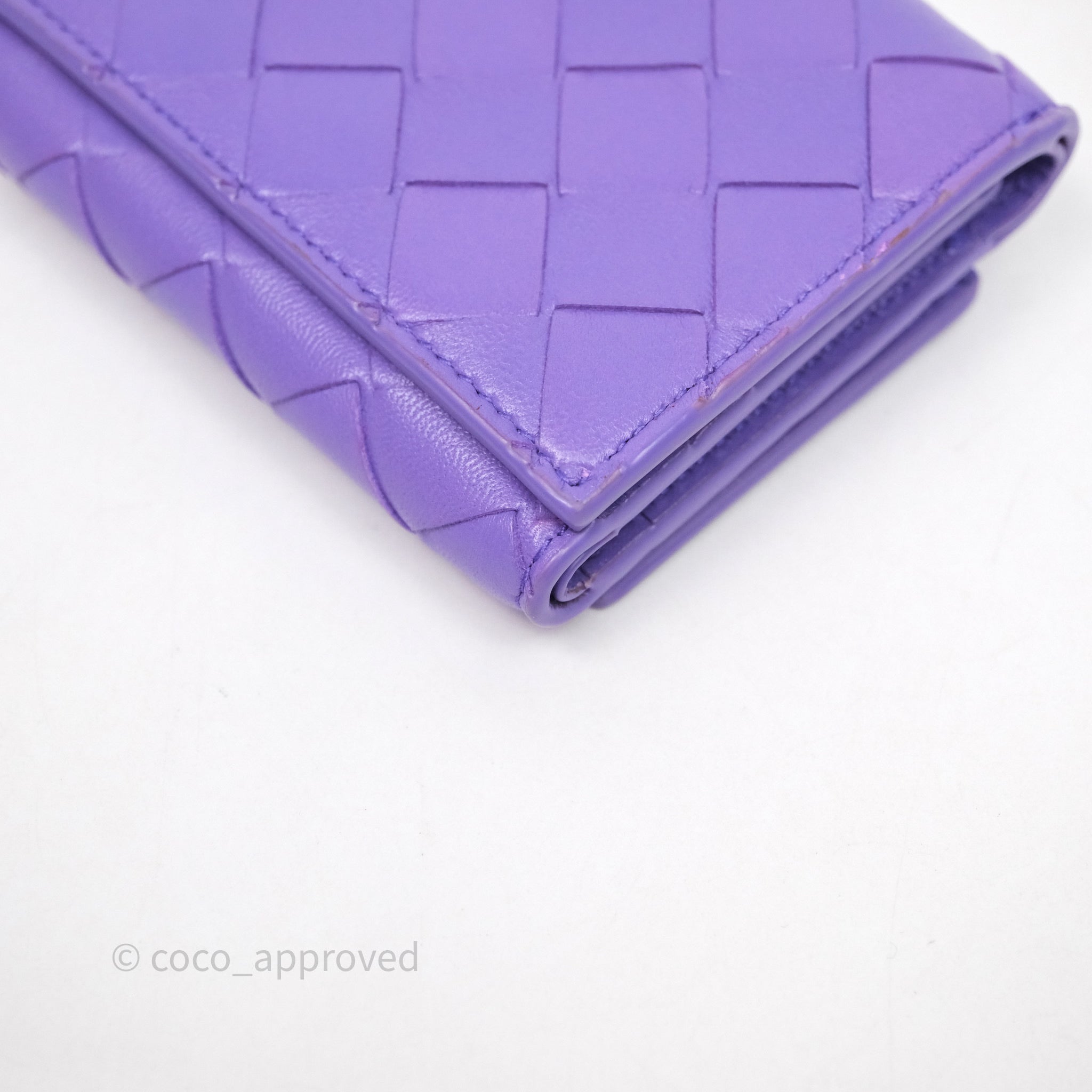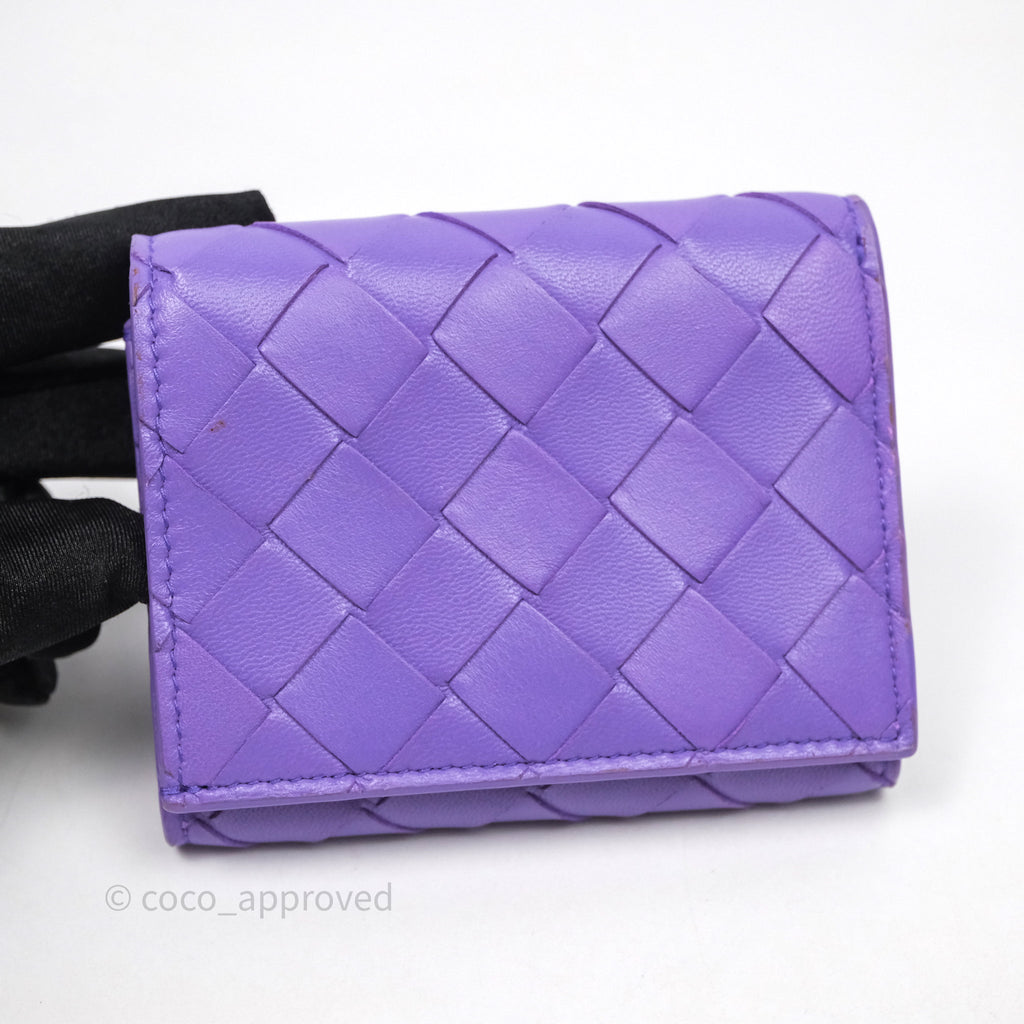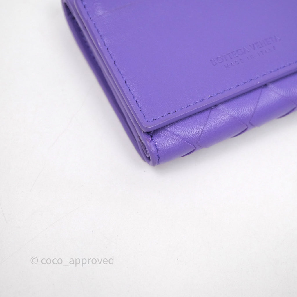 Bottega Veneta Purple Small Intrecciato Tri-Fold Zip Wallet