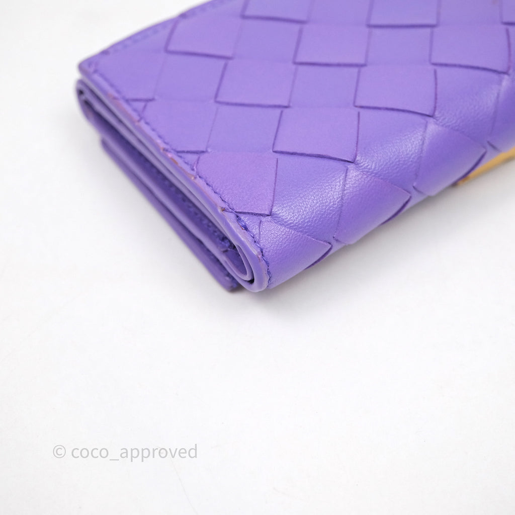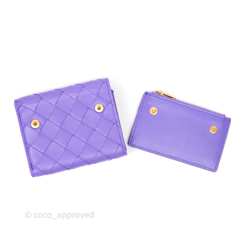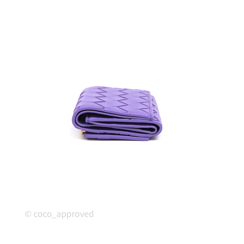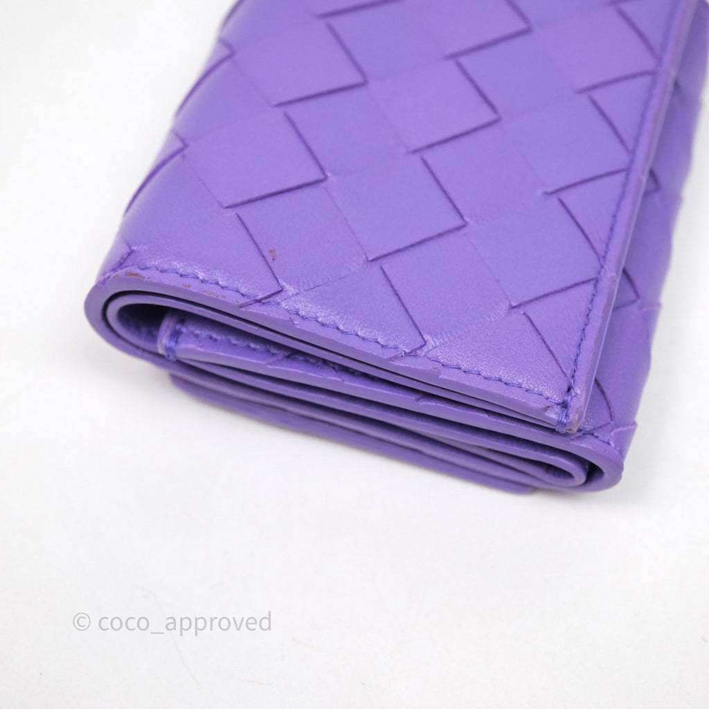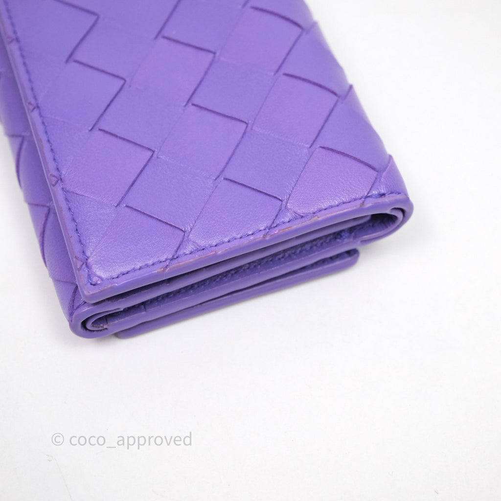 Bottega Veneta Purple Small Intrecciato Tri-Fold Zip Wallet