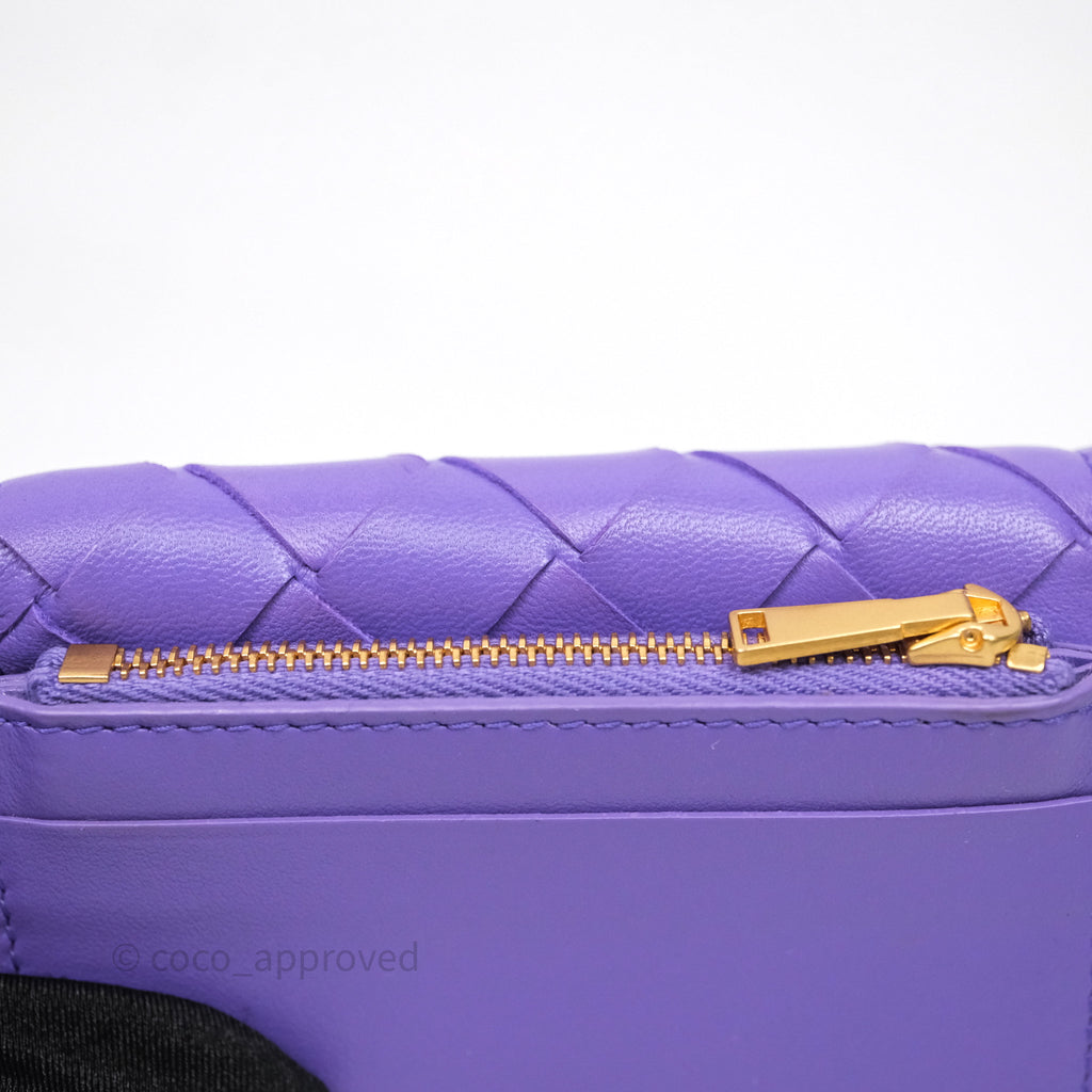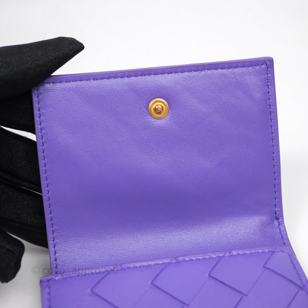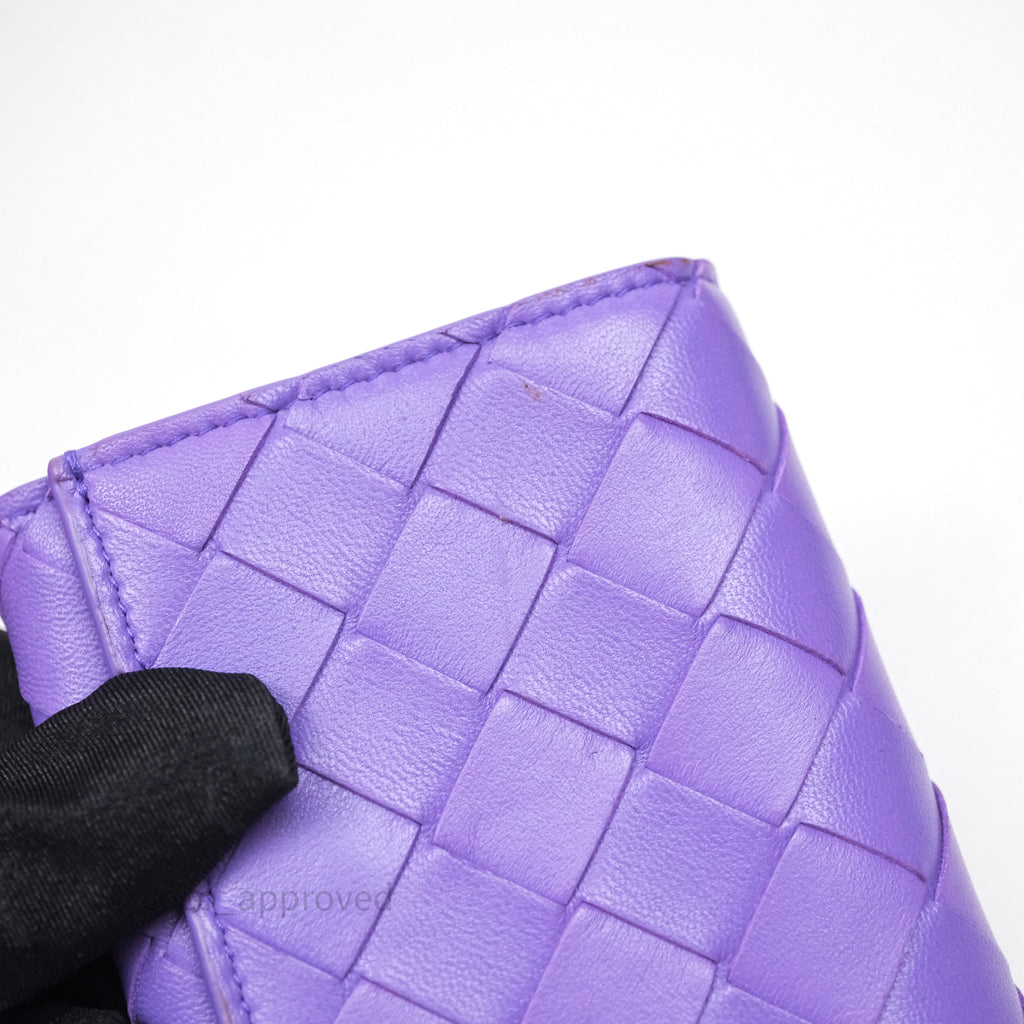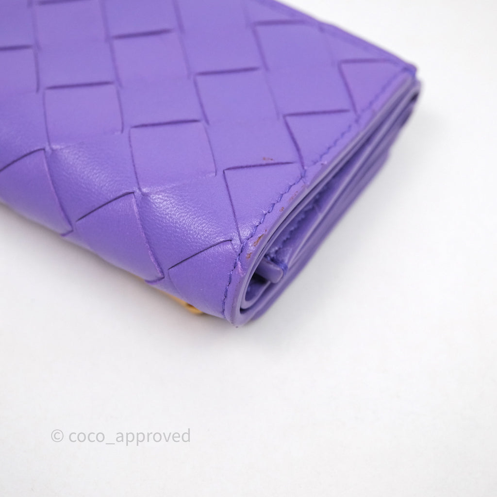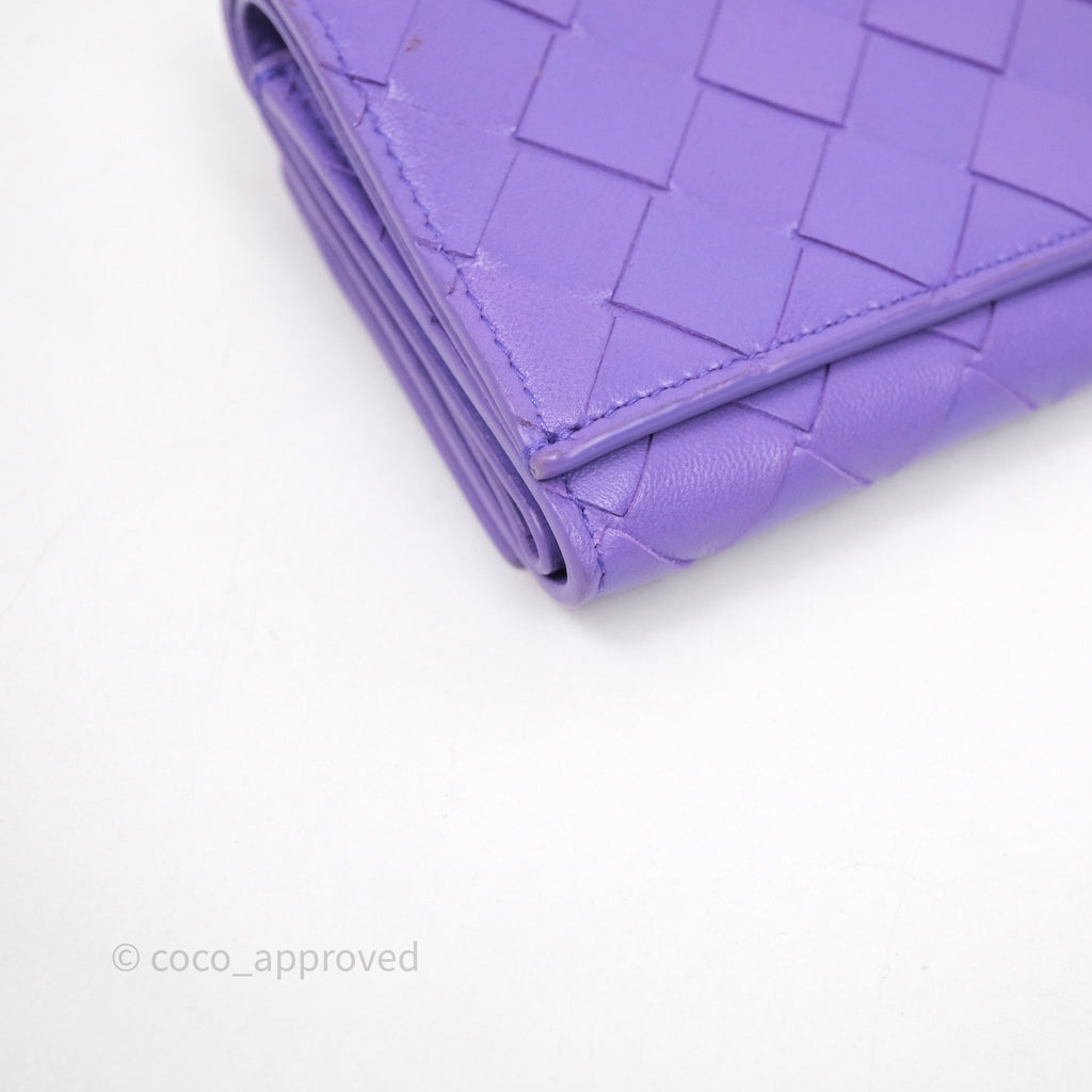 Bottega Veneta Purple Small Intrecciato Tri-Fold Zip Wallet