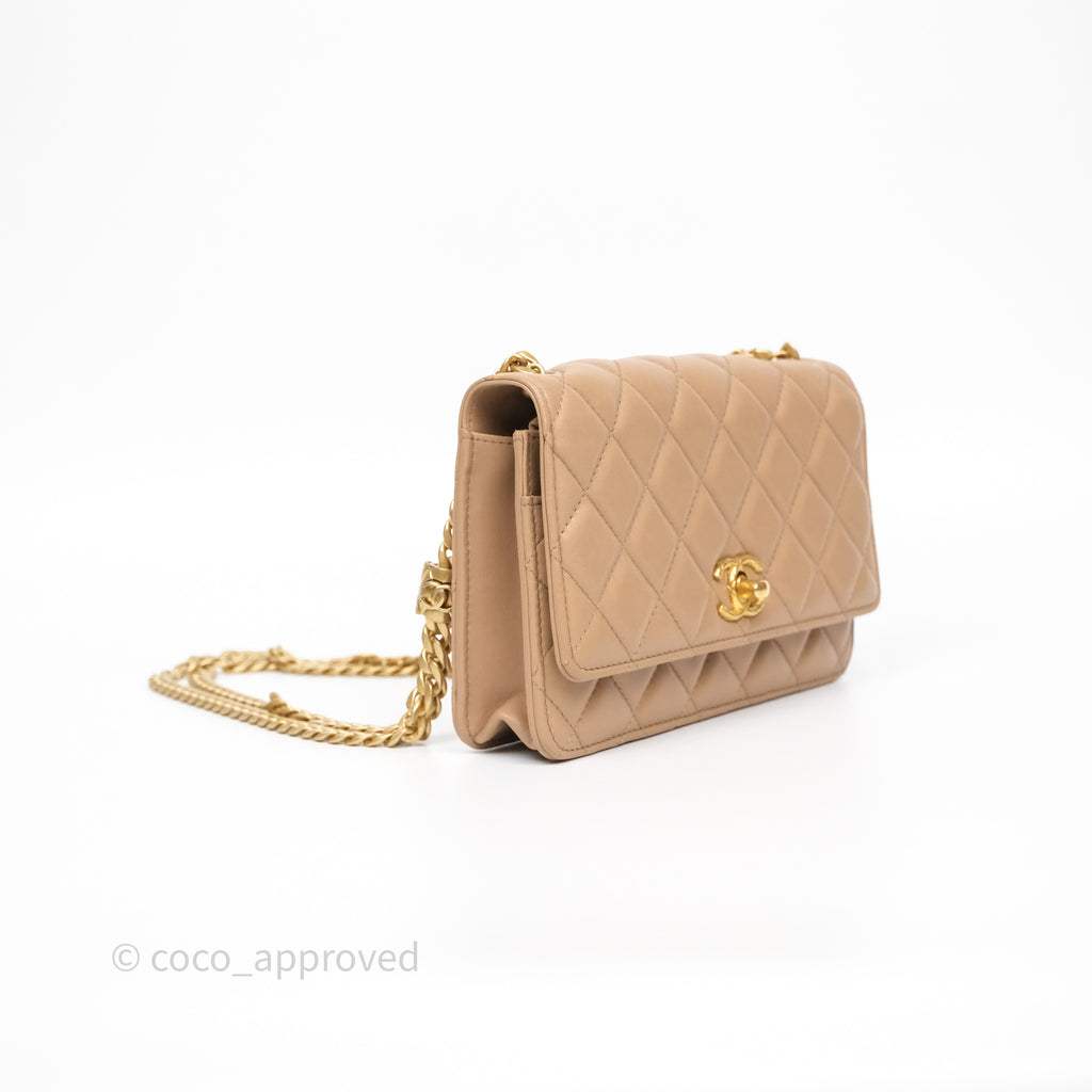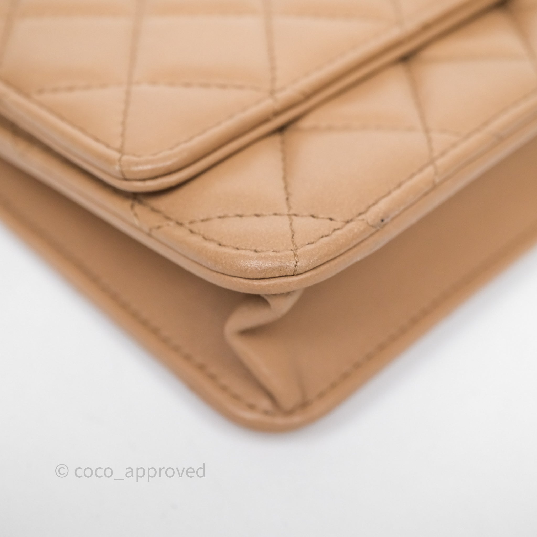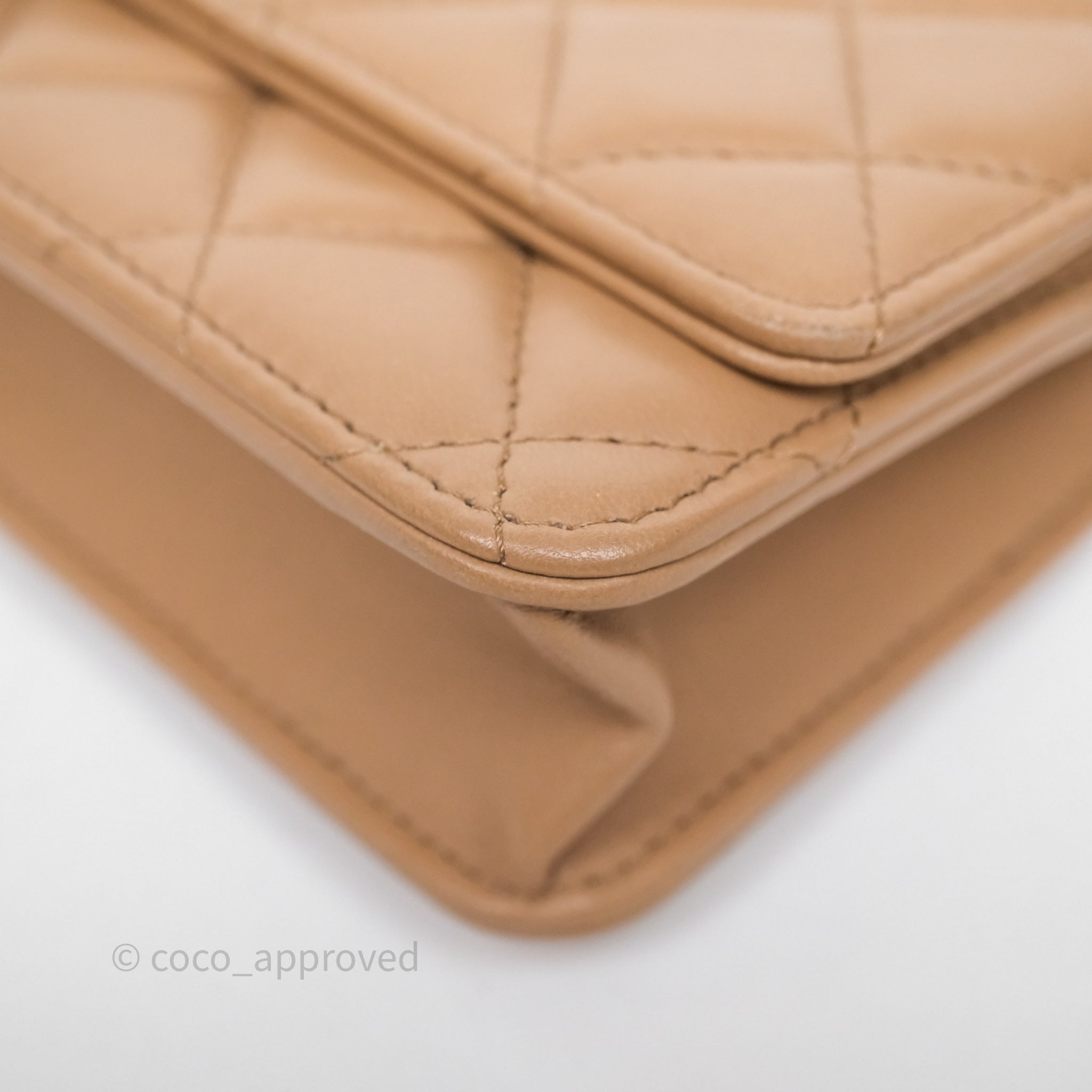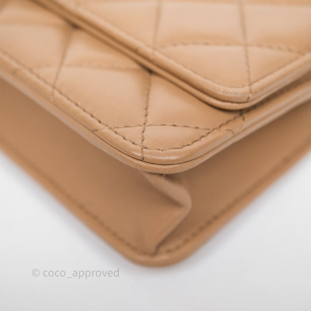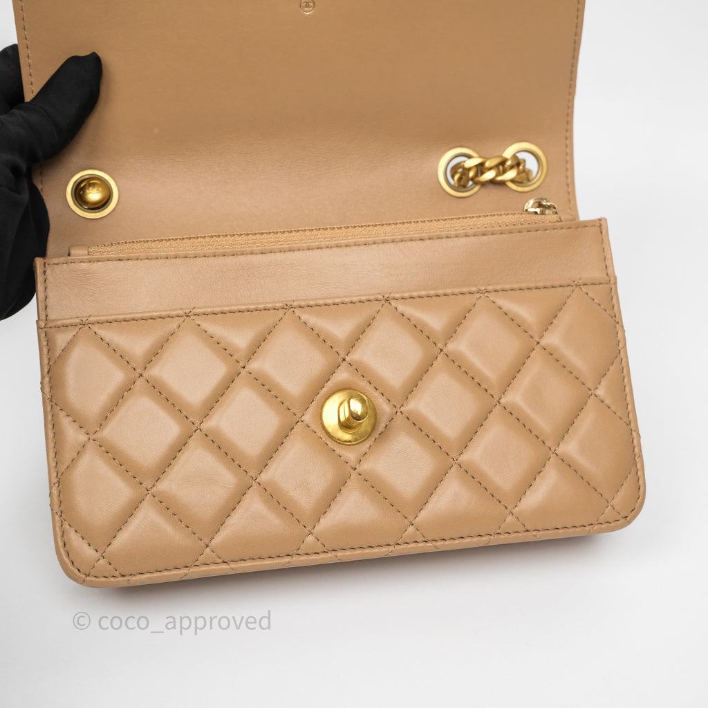 Chanel All Slide Wallet on Chain WOC Adjustable Chain Quilted Beige Lambskin