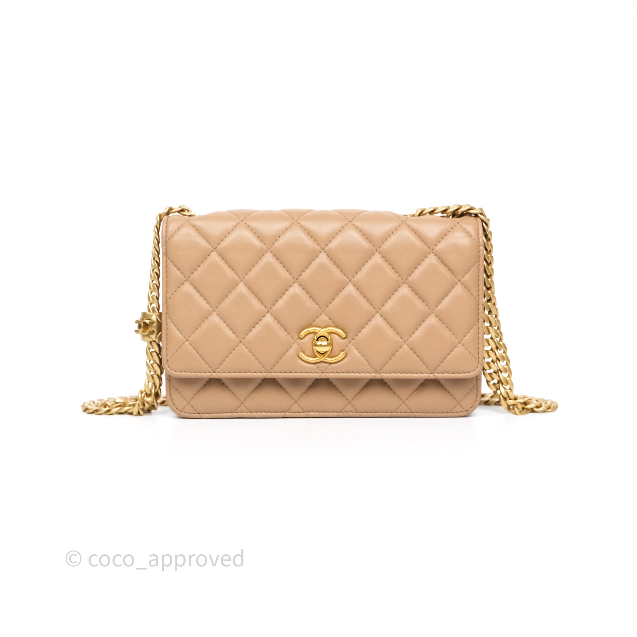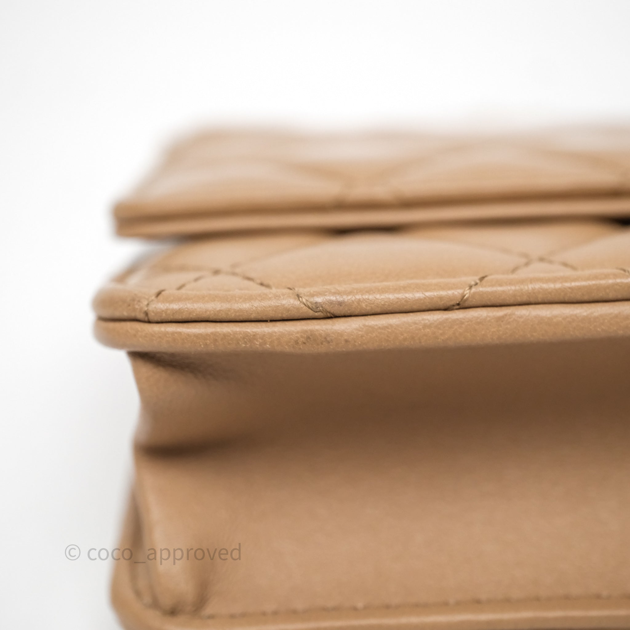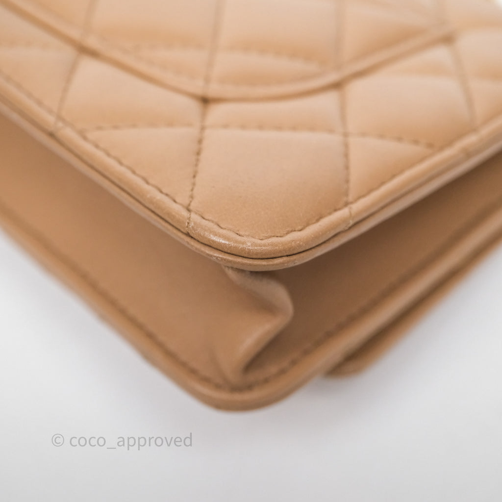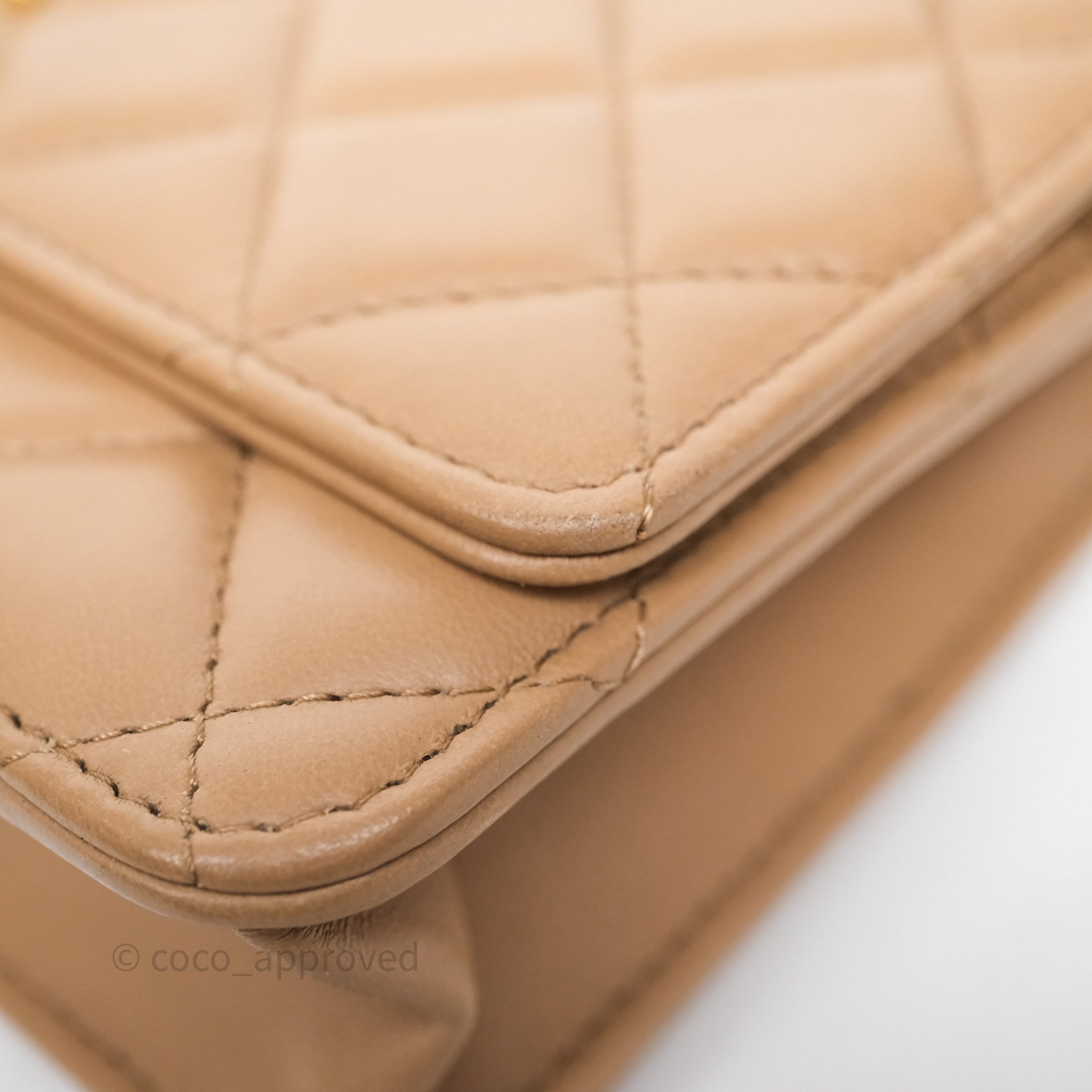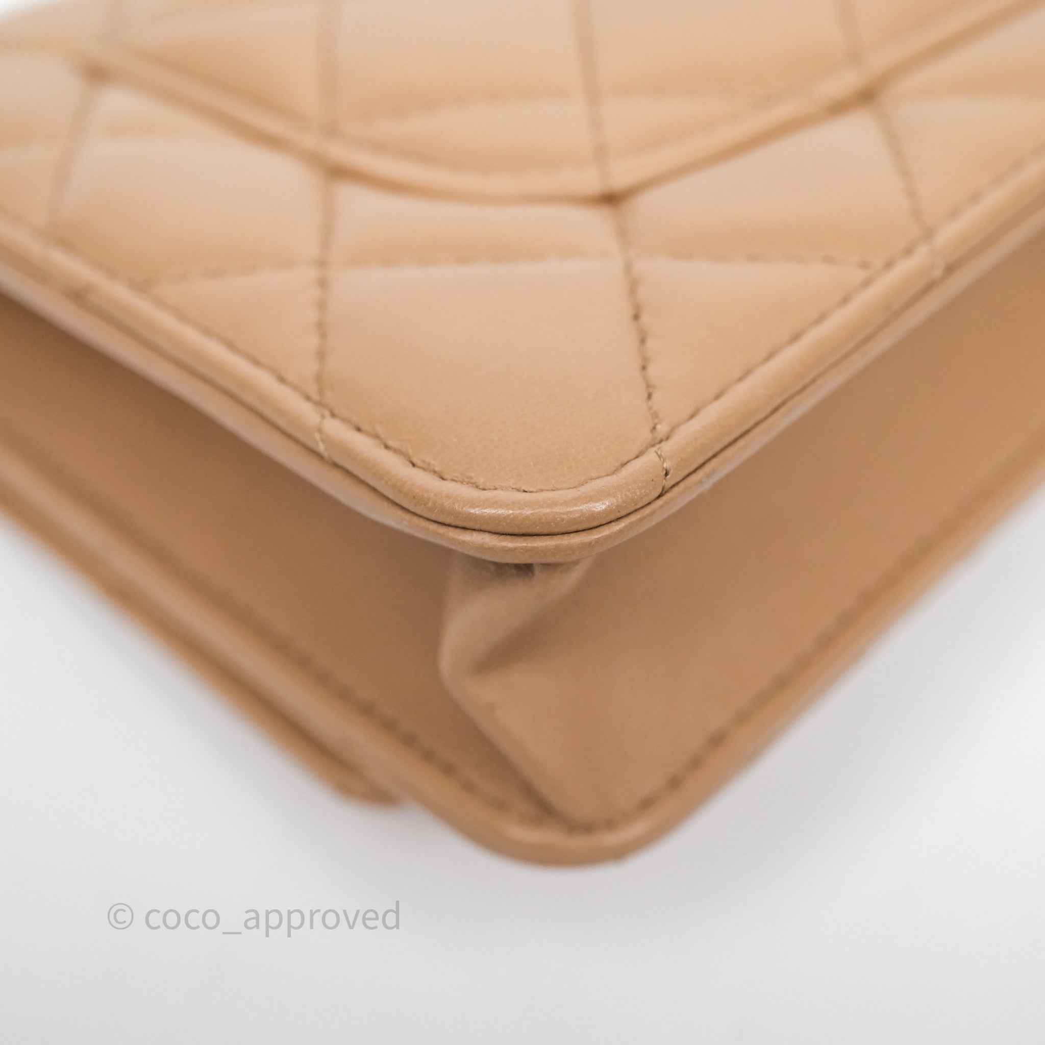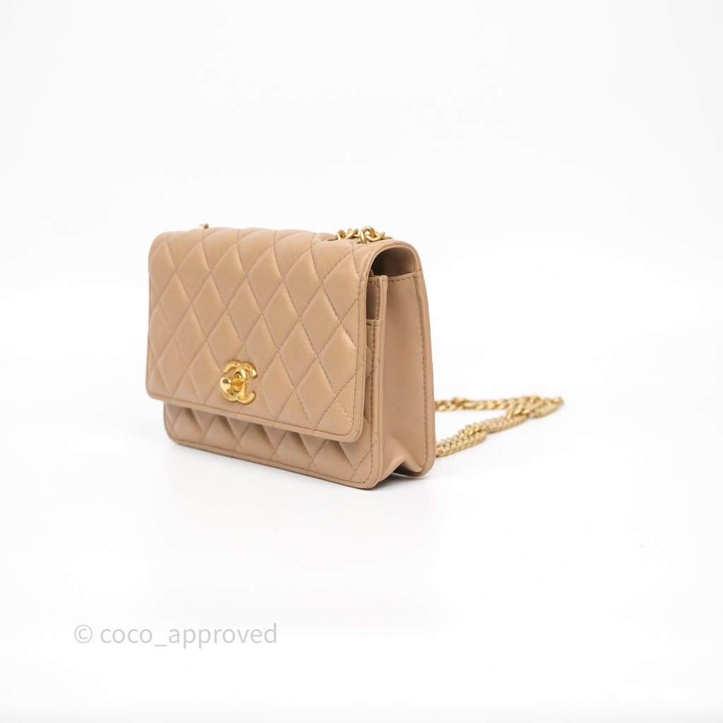 Chanel All Slide Wallet on Chain WOC Adjustable Chain Quilted Beige Lambskin