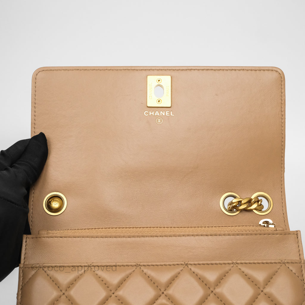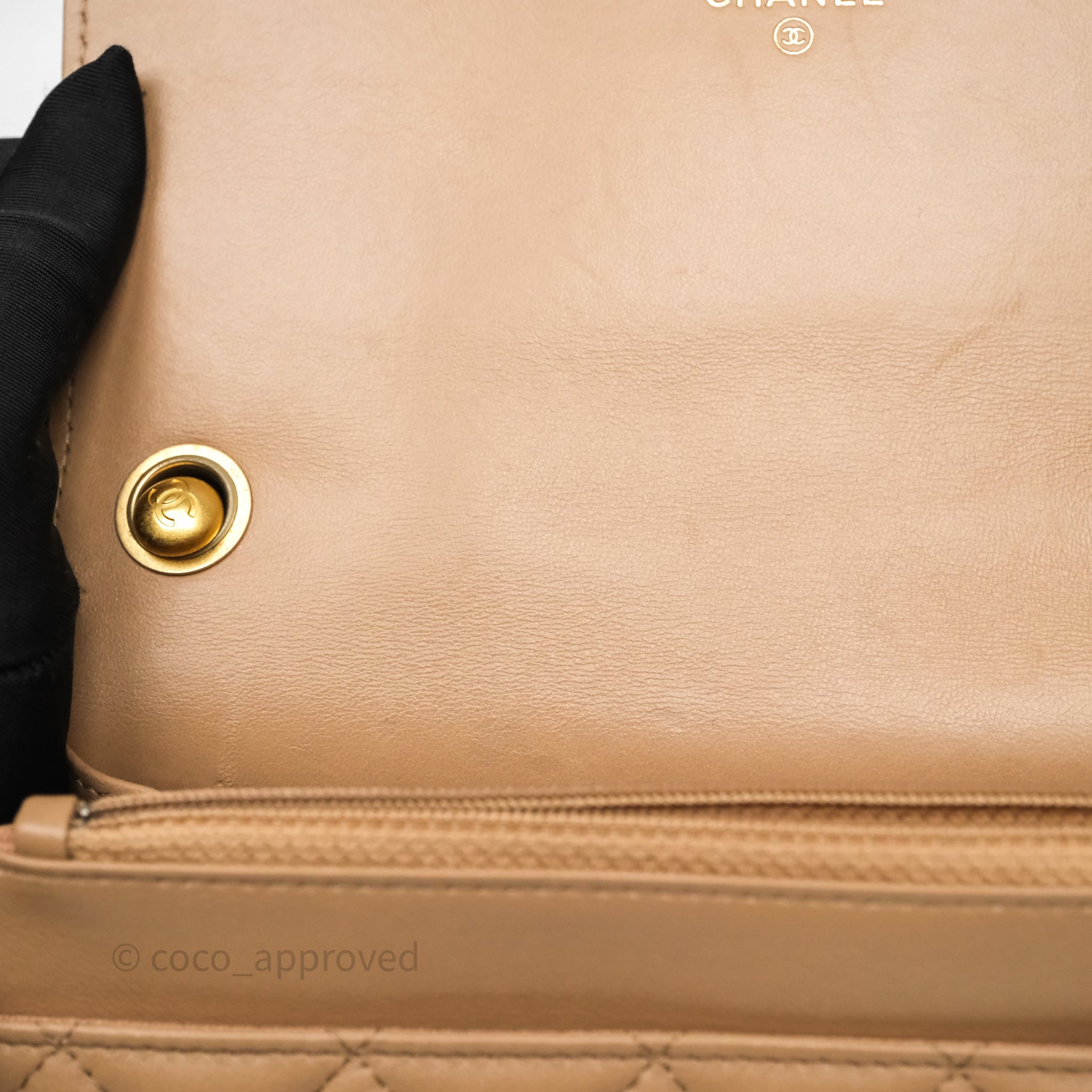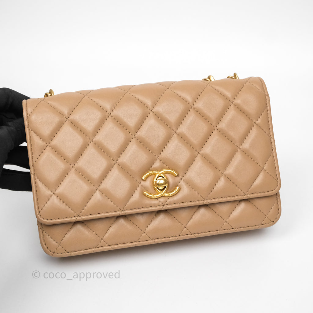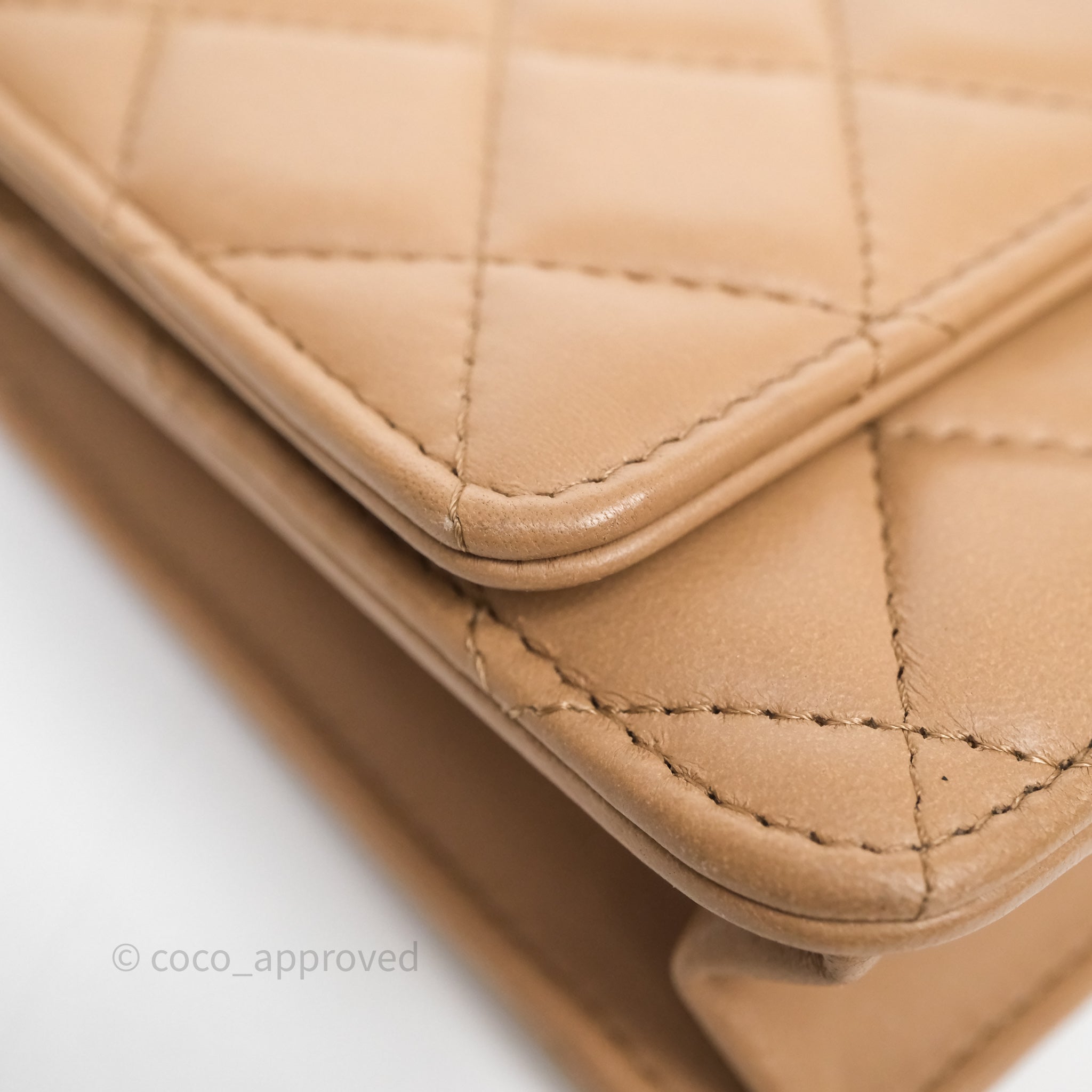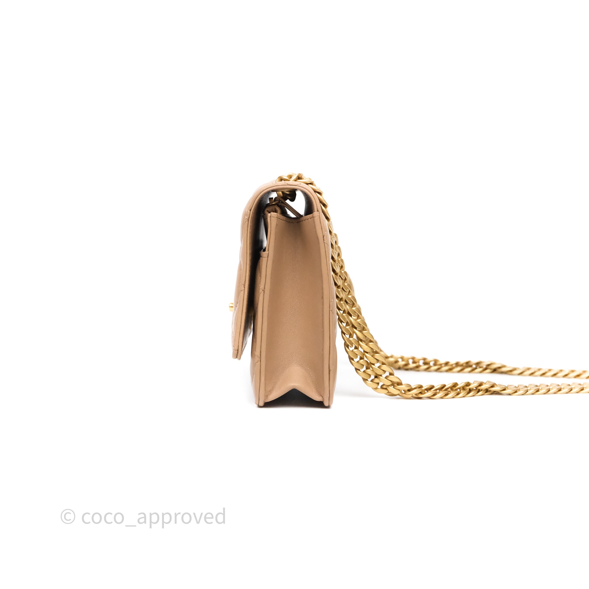 Chanel All Slide Wallet on Chain WOC Adjustable Chain Quilted Beige Lambskin