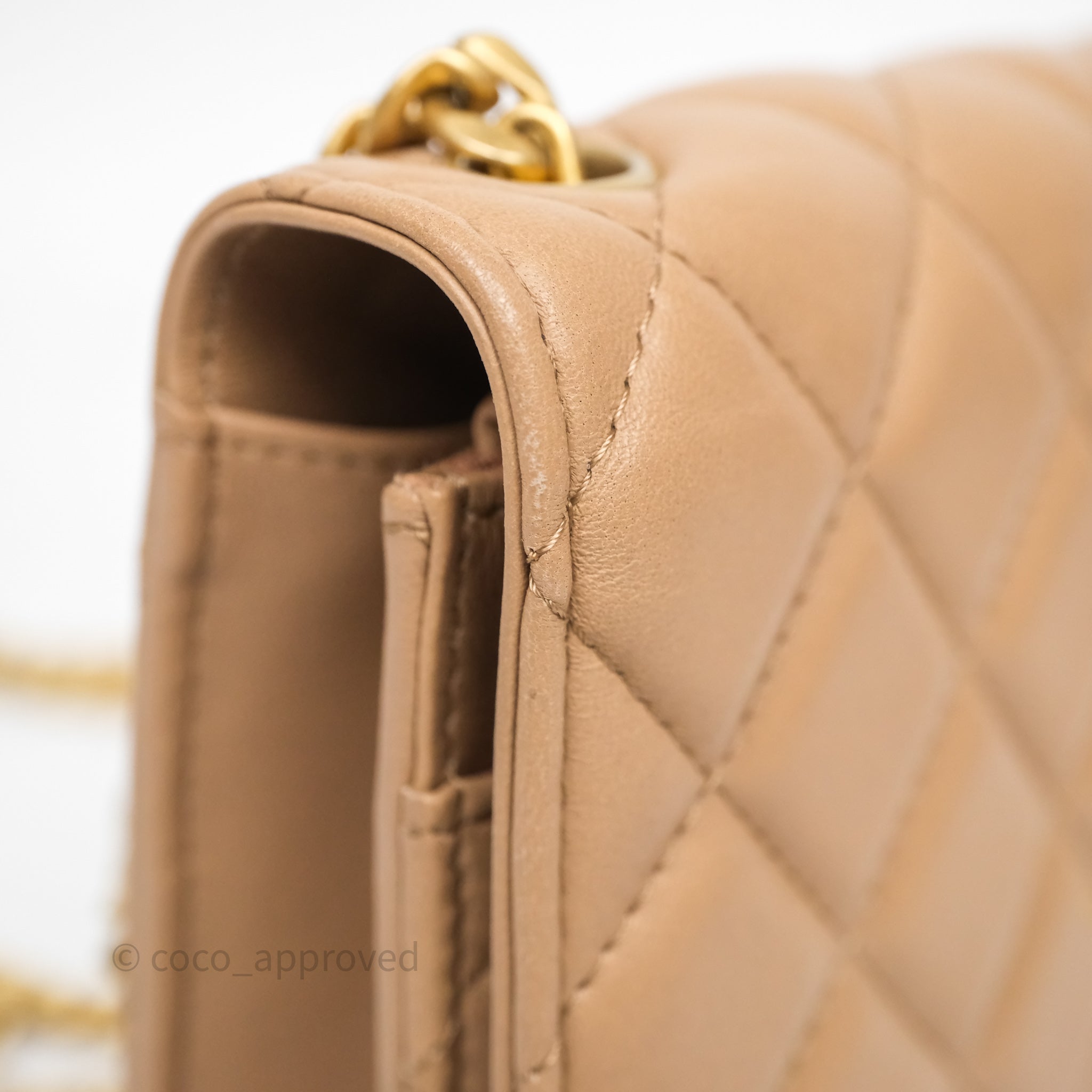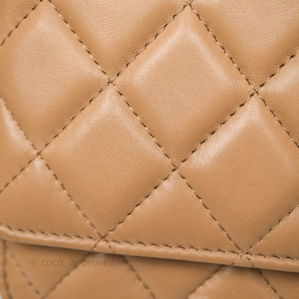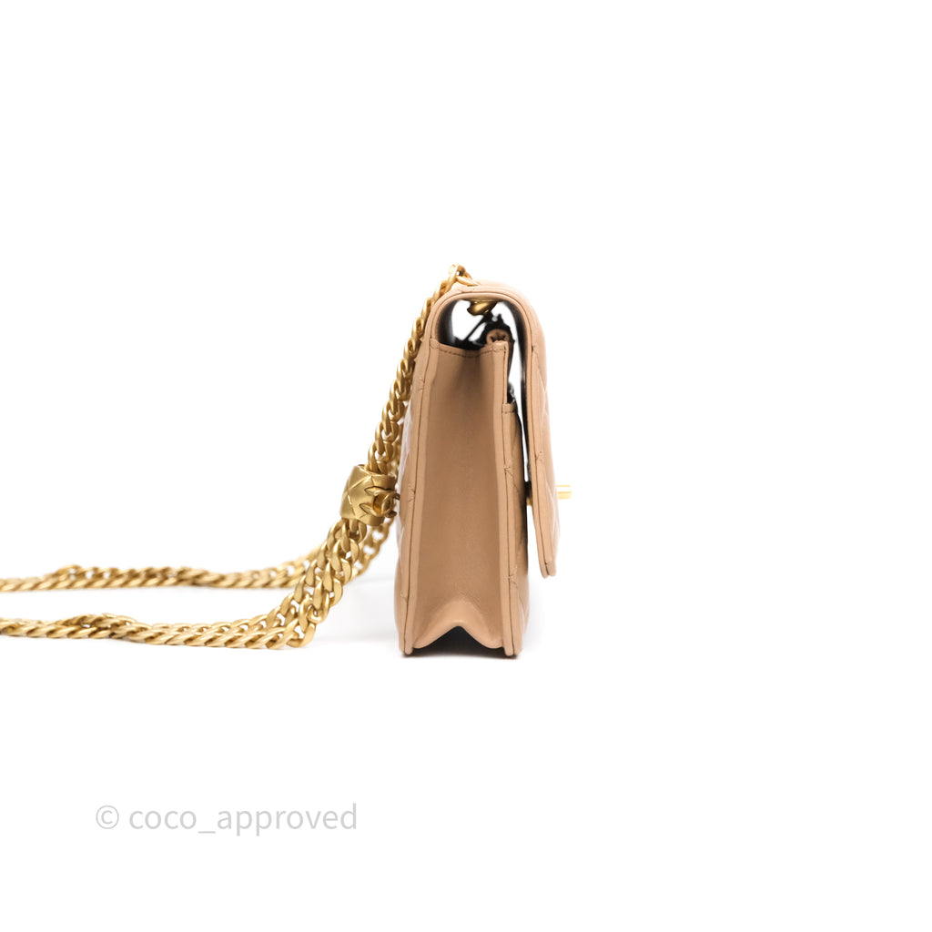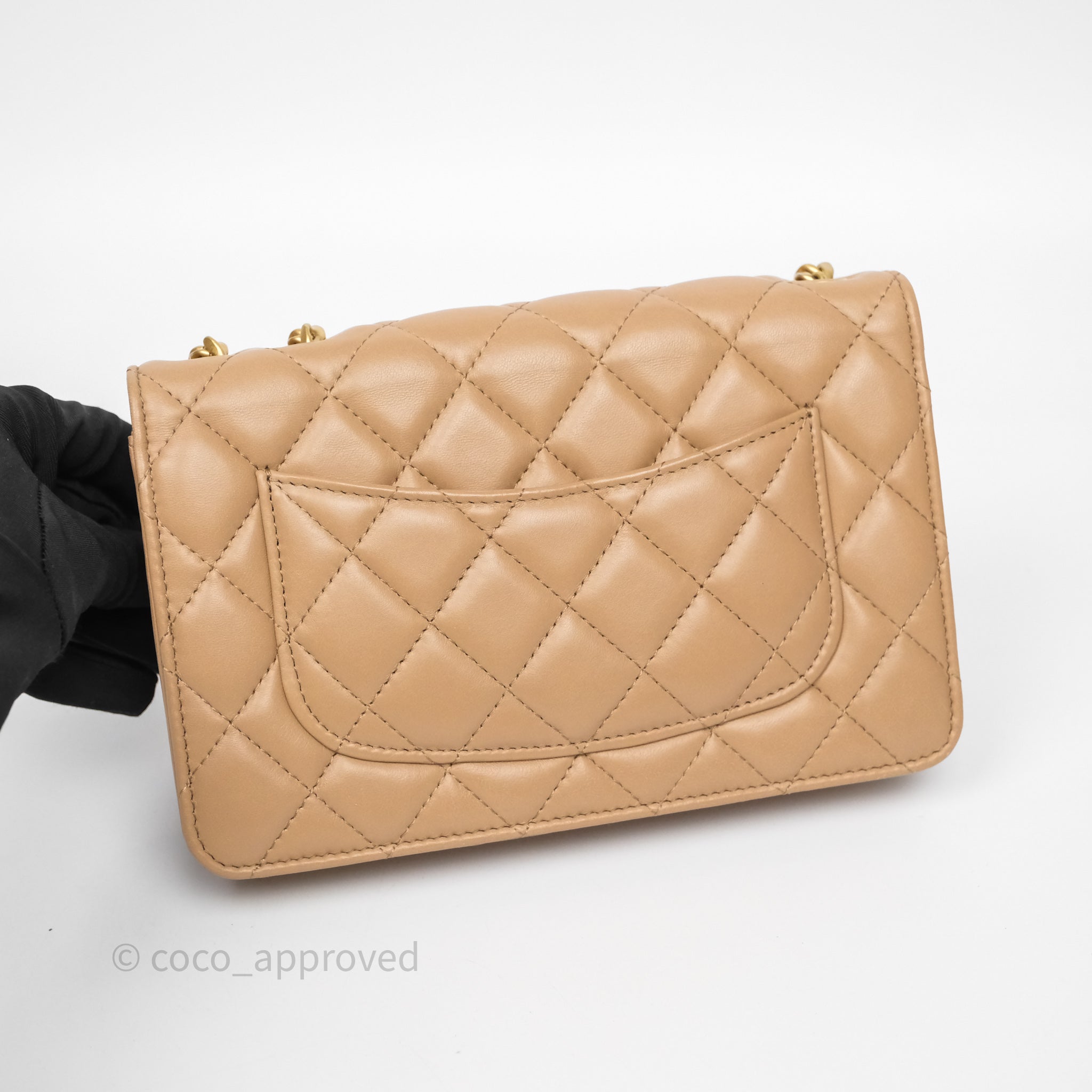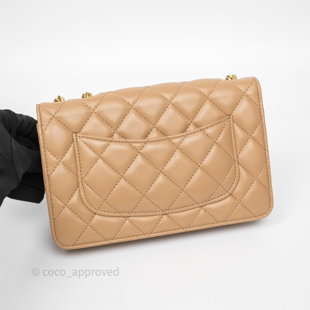 Chanel All Slide Wallet on Chain WOC Adjustable Chain Quilted Beige Lambskin