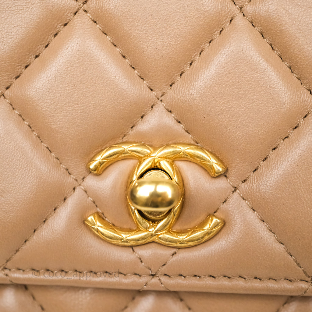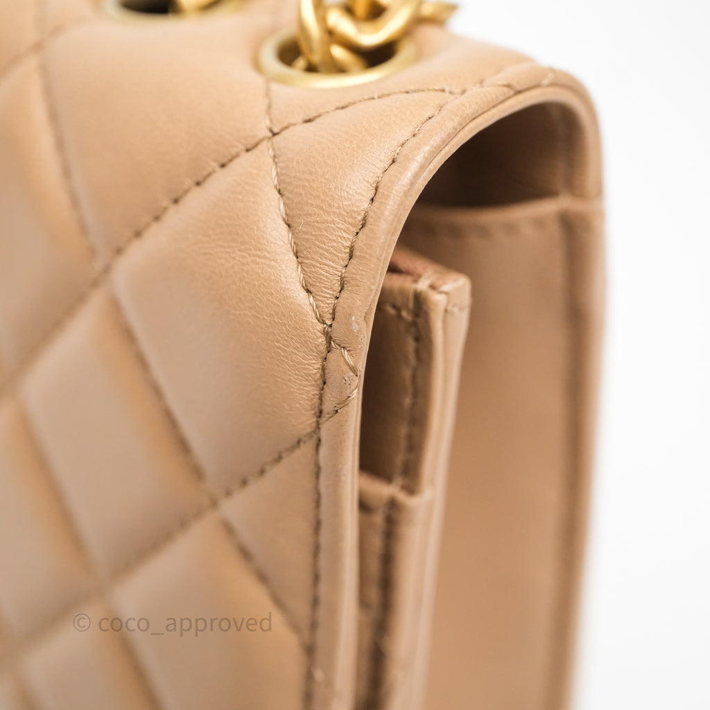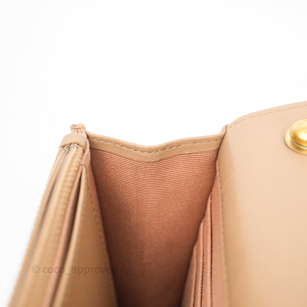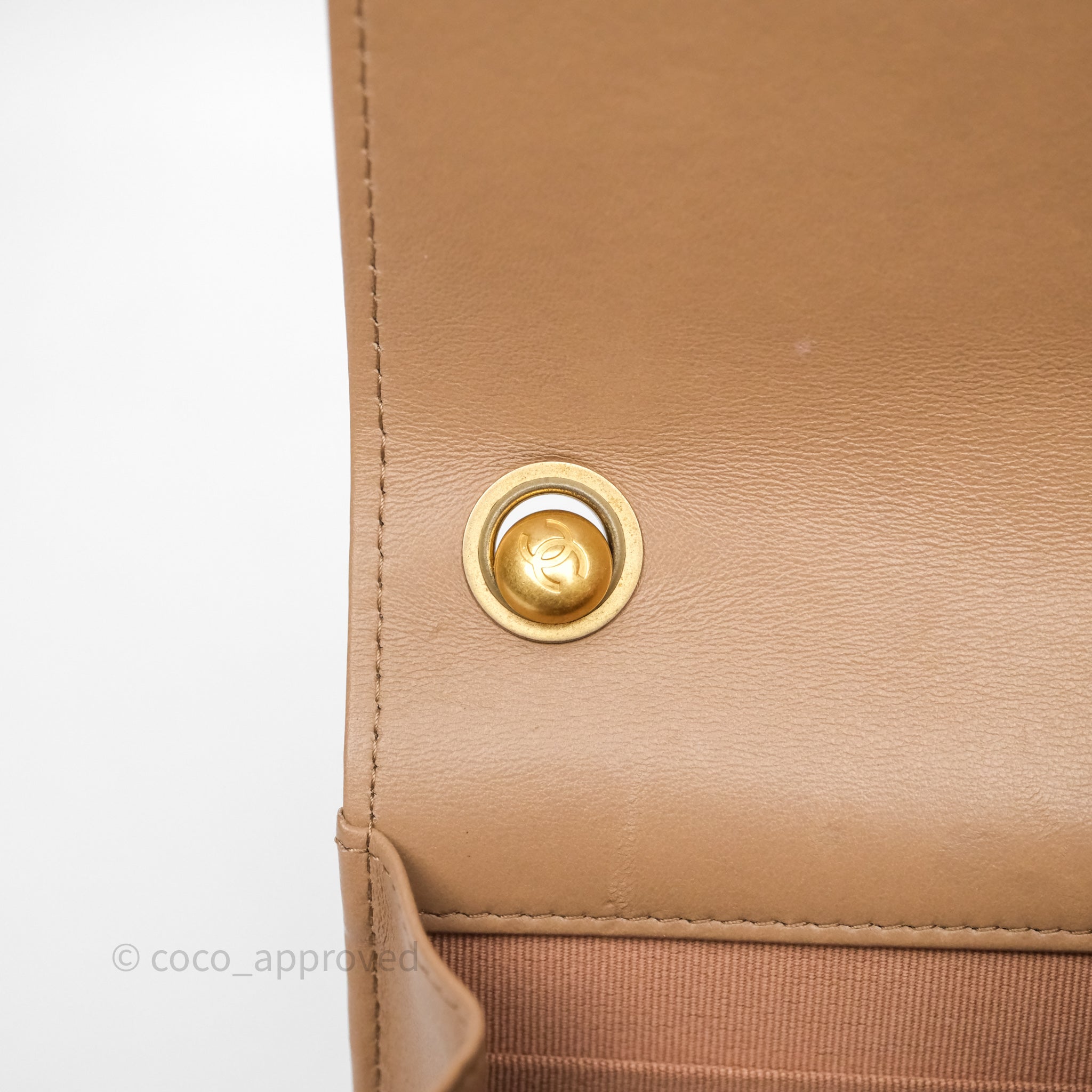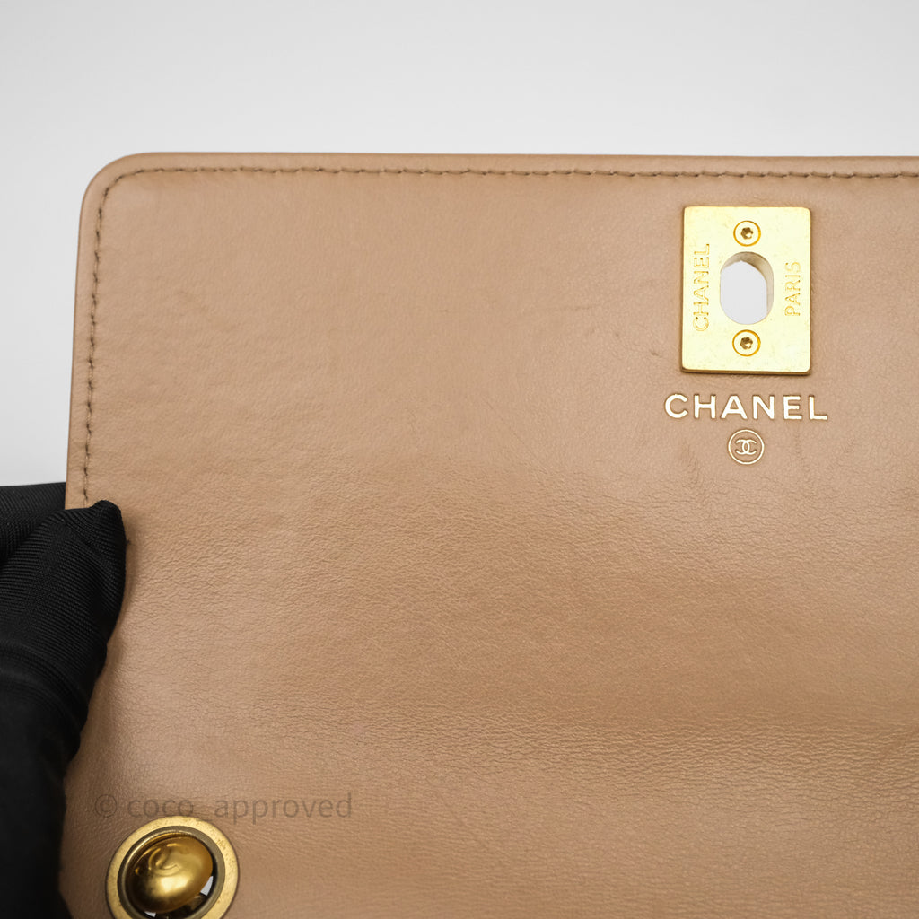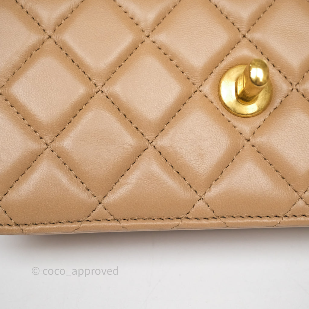 Chanel All Slide Wallet on Chain WOC Adjustable Chain Quilted Beige Lambskin