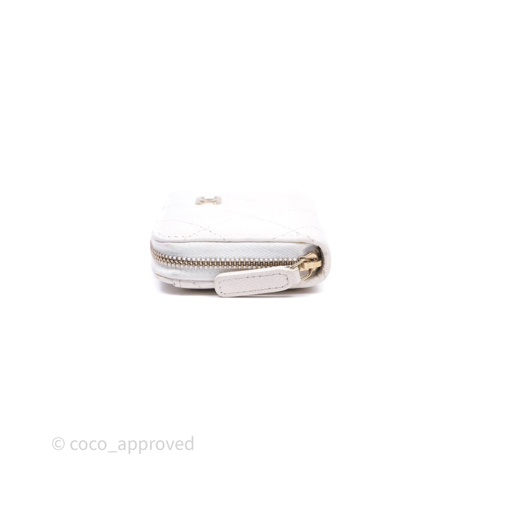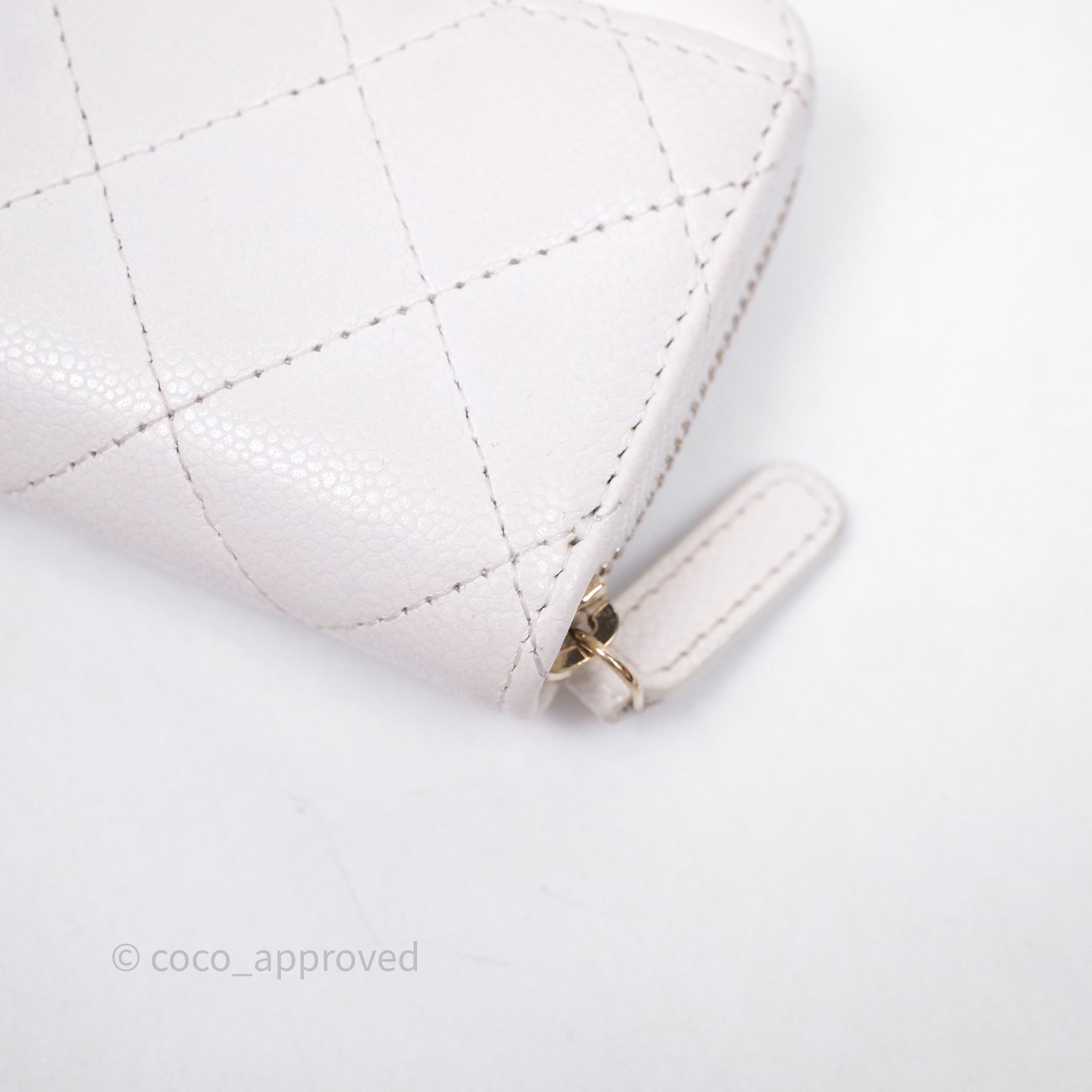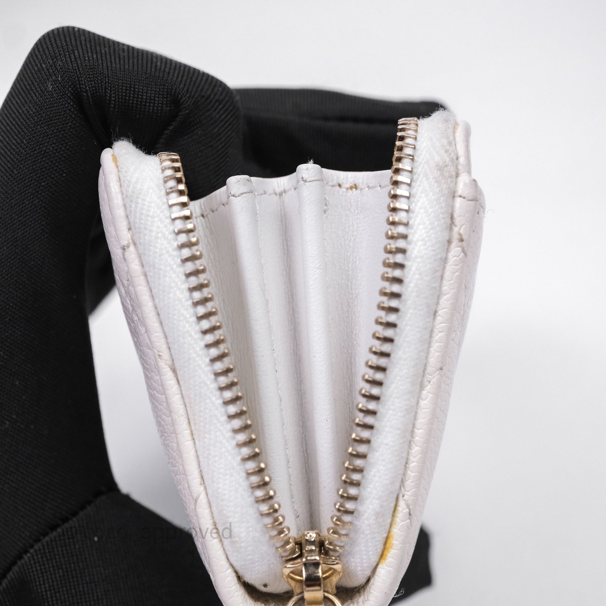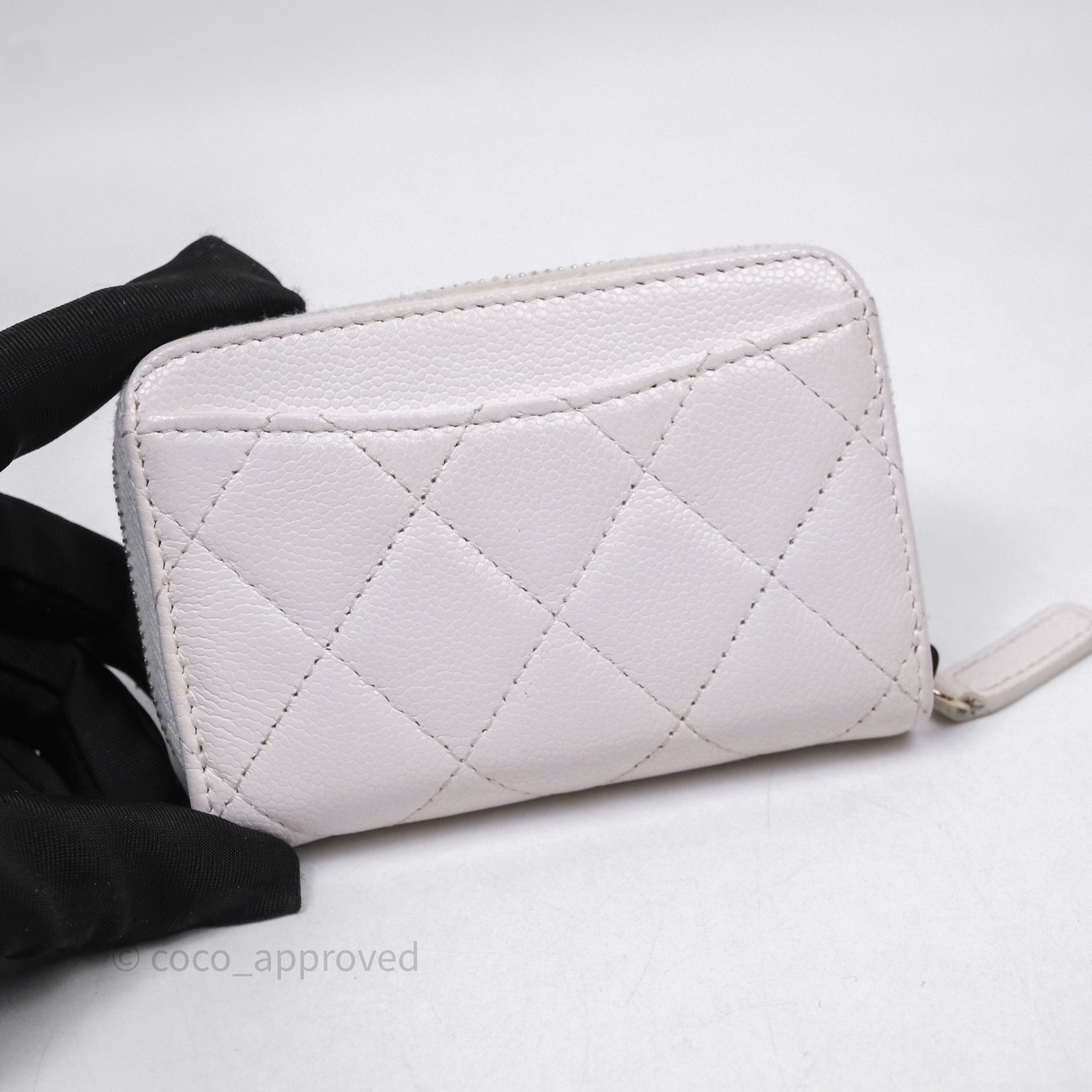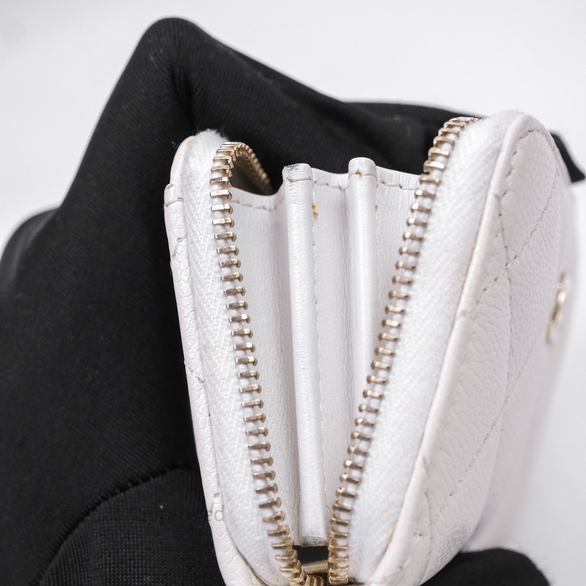 Chanel Classic Zipped Coin Purse White Caviar Gold Hardware