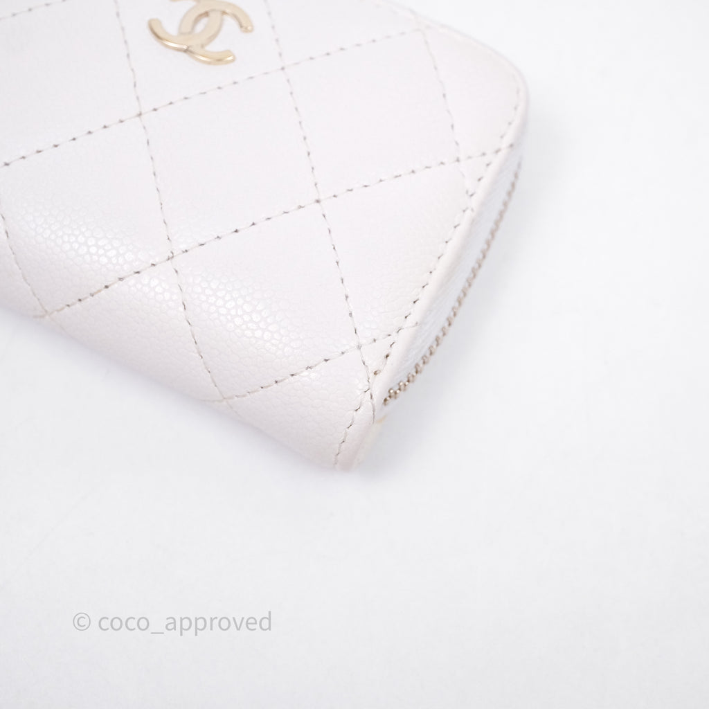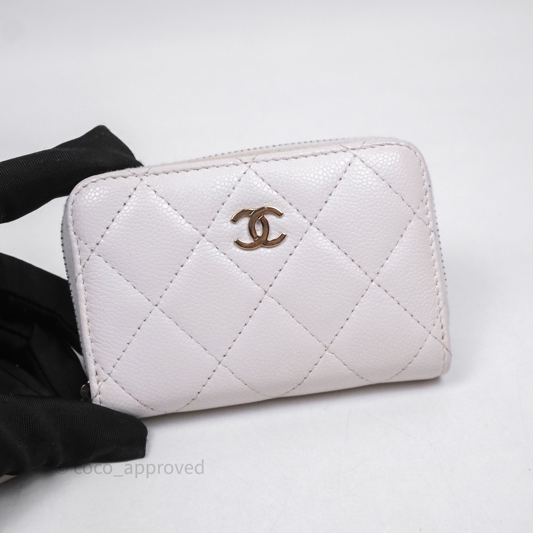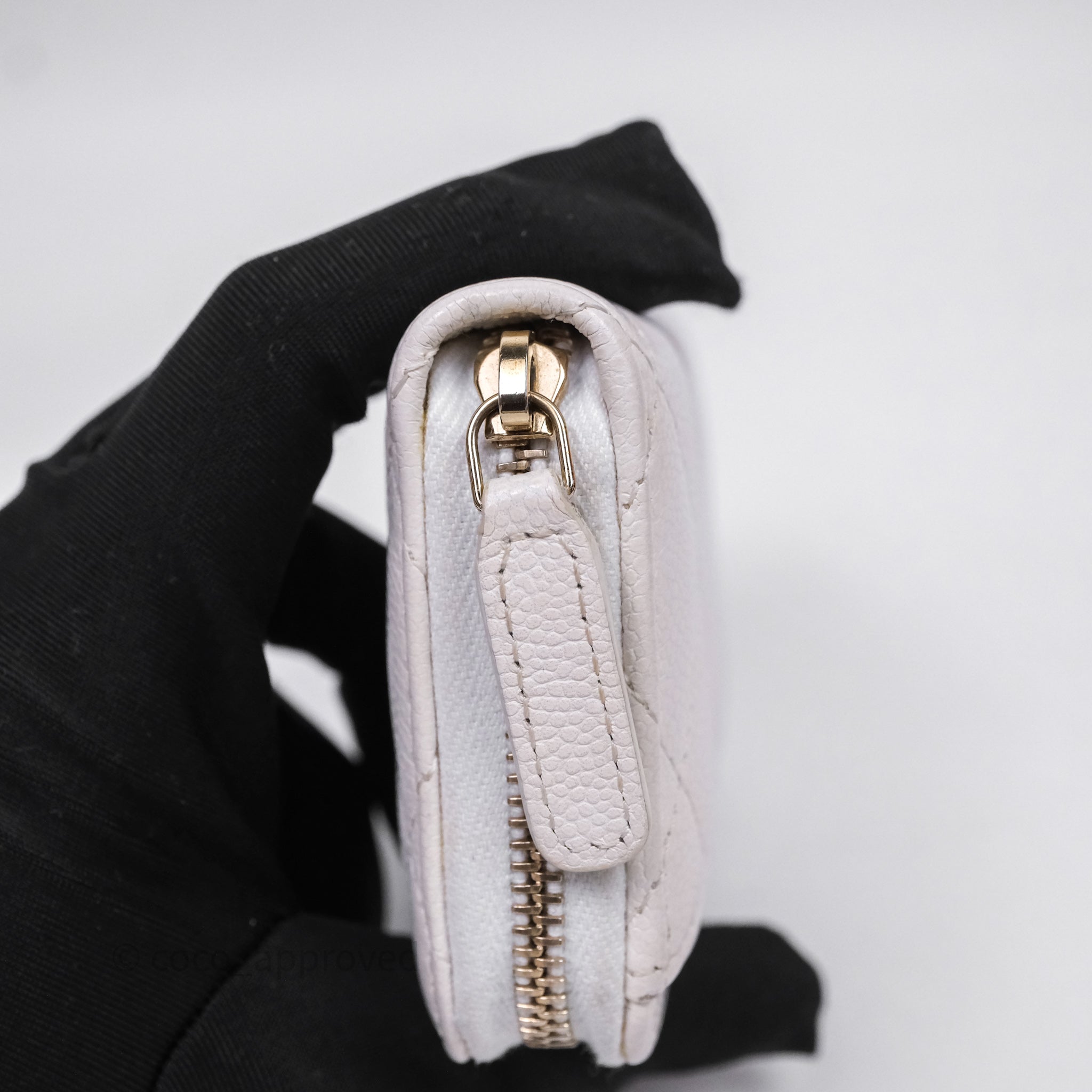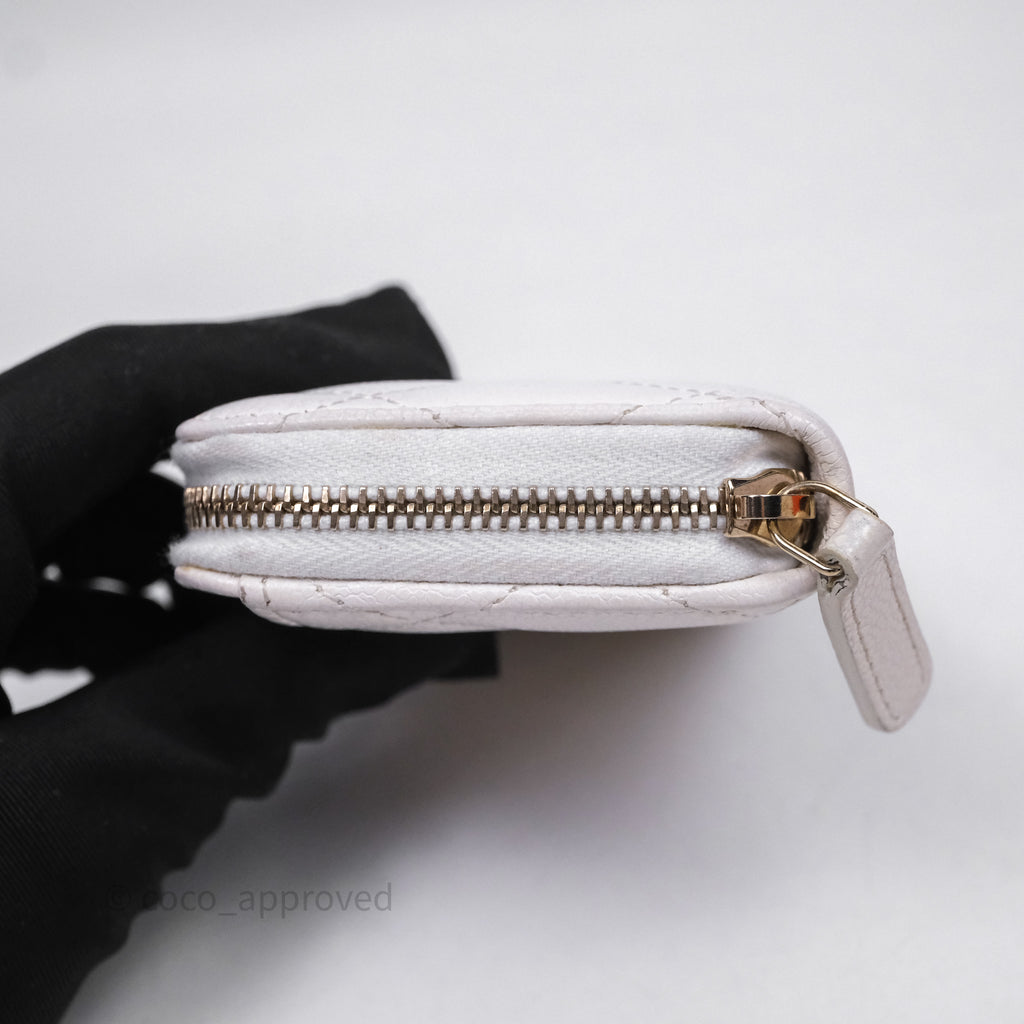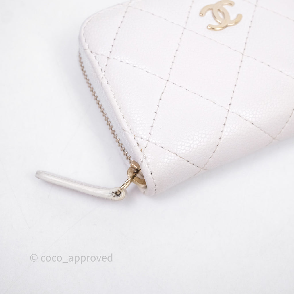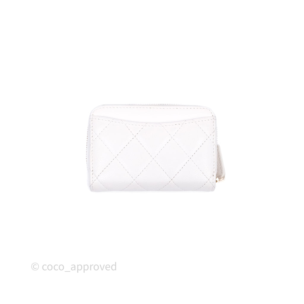 Chanel Classic Zipped Coin Purse White Caviar Gold Hardware