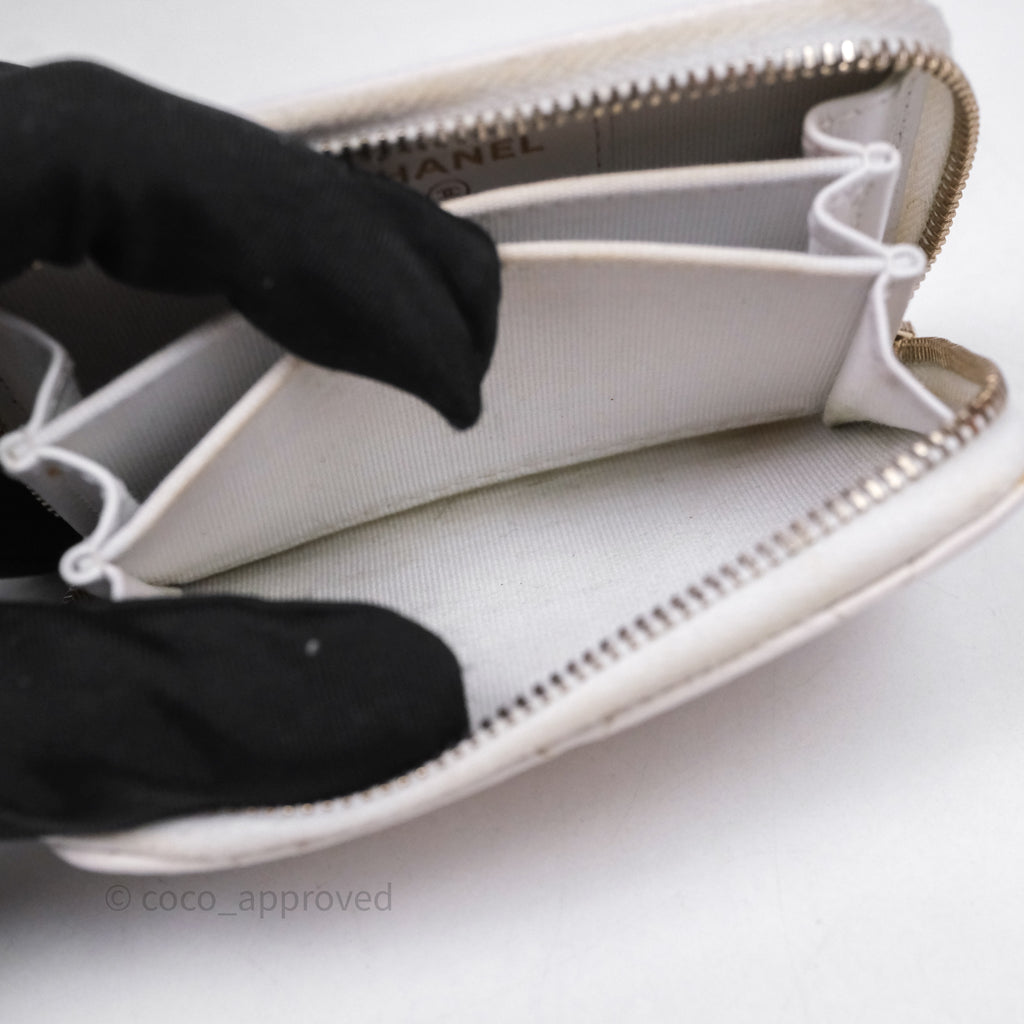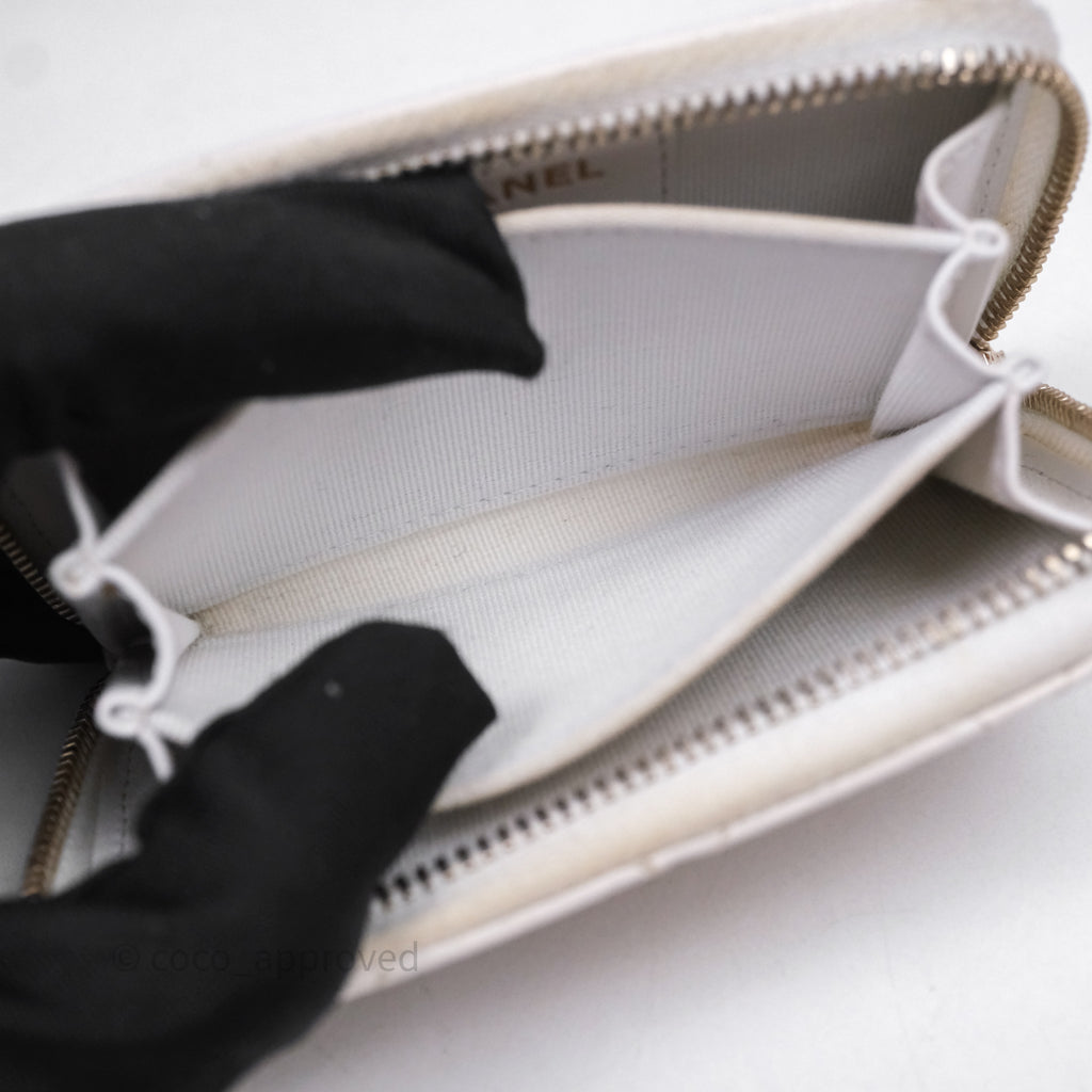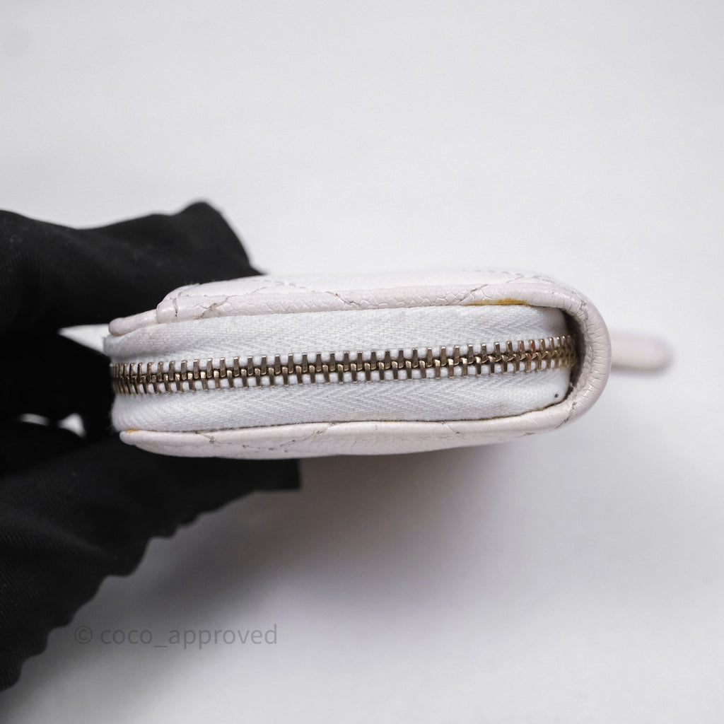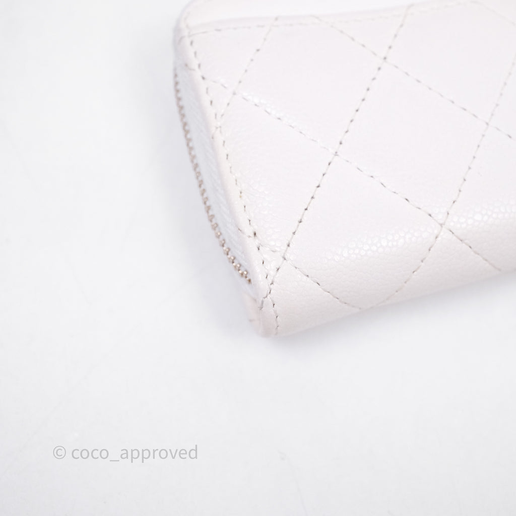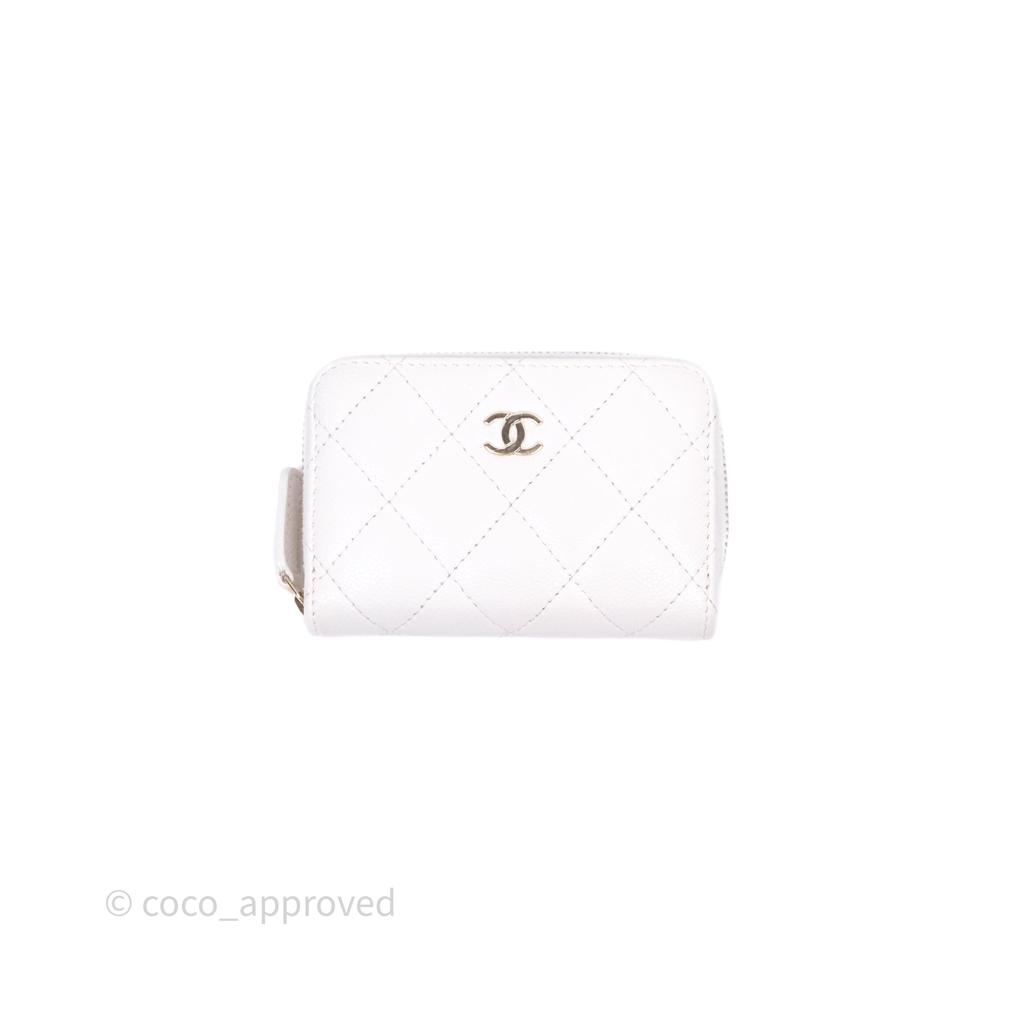 Chanel Classic Zipped Coin Purse White Caviar Gold Hardware