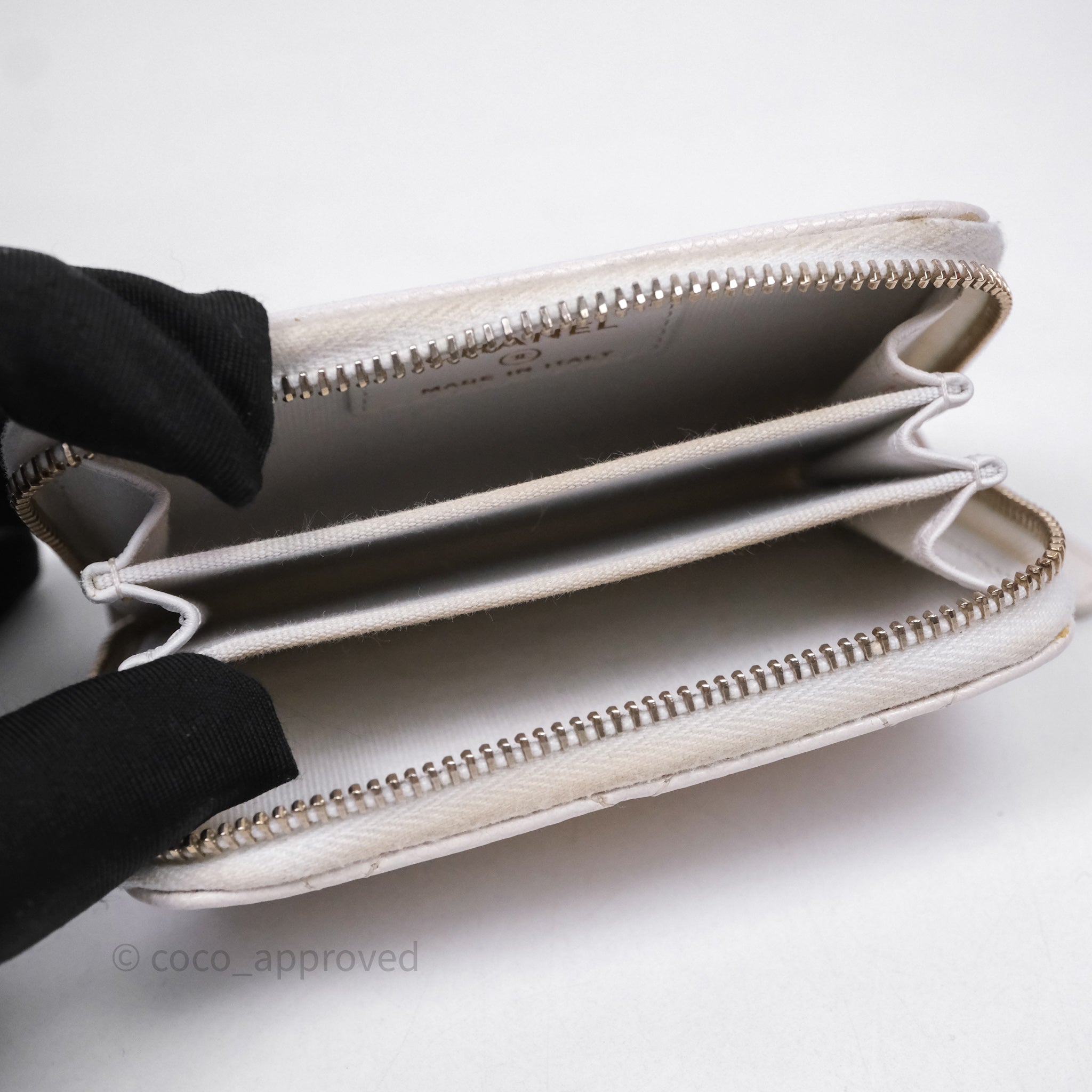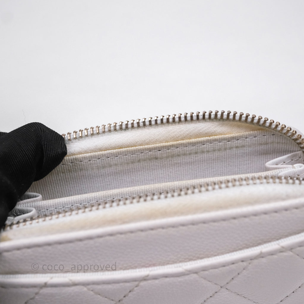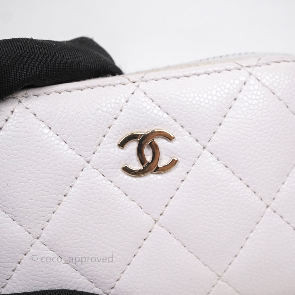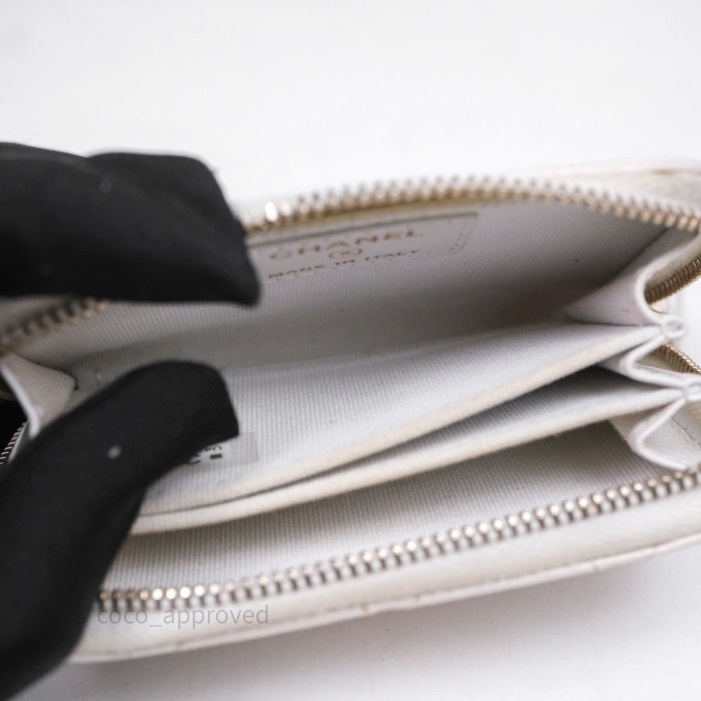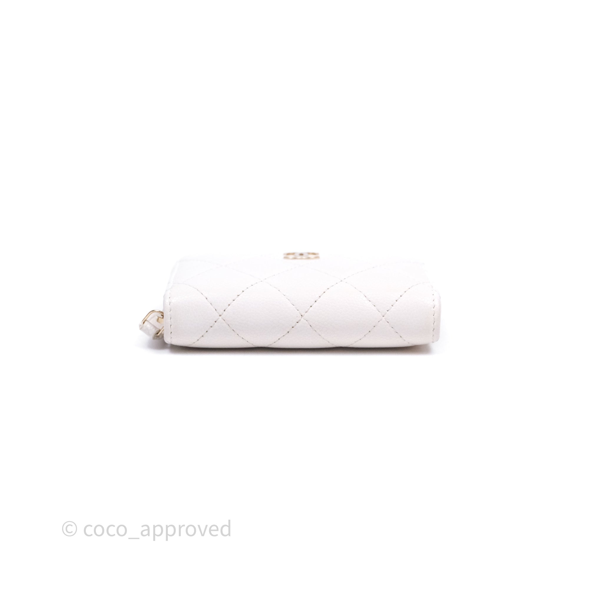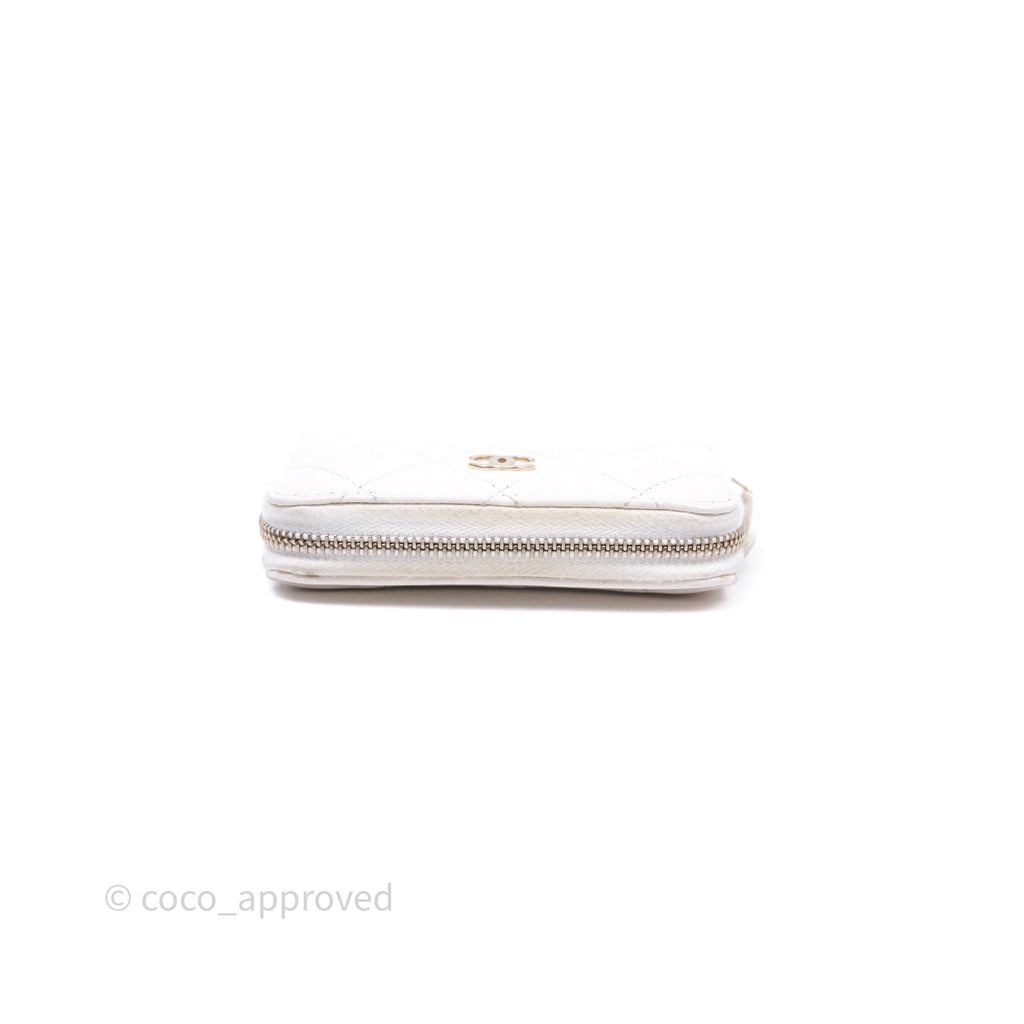 Chanel Classic Zipped Coin Purse White Caviar Gold Hardware