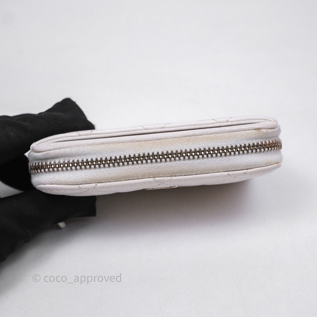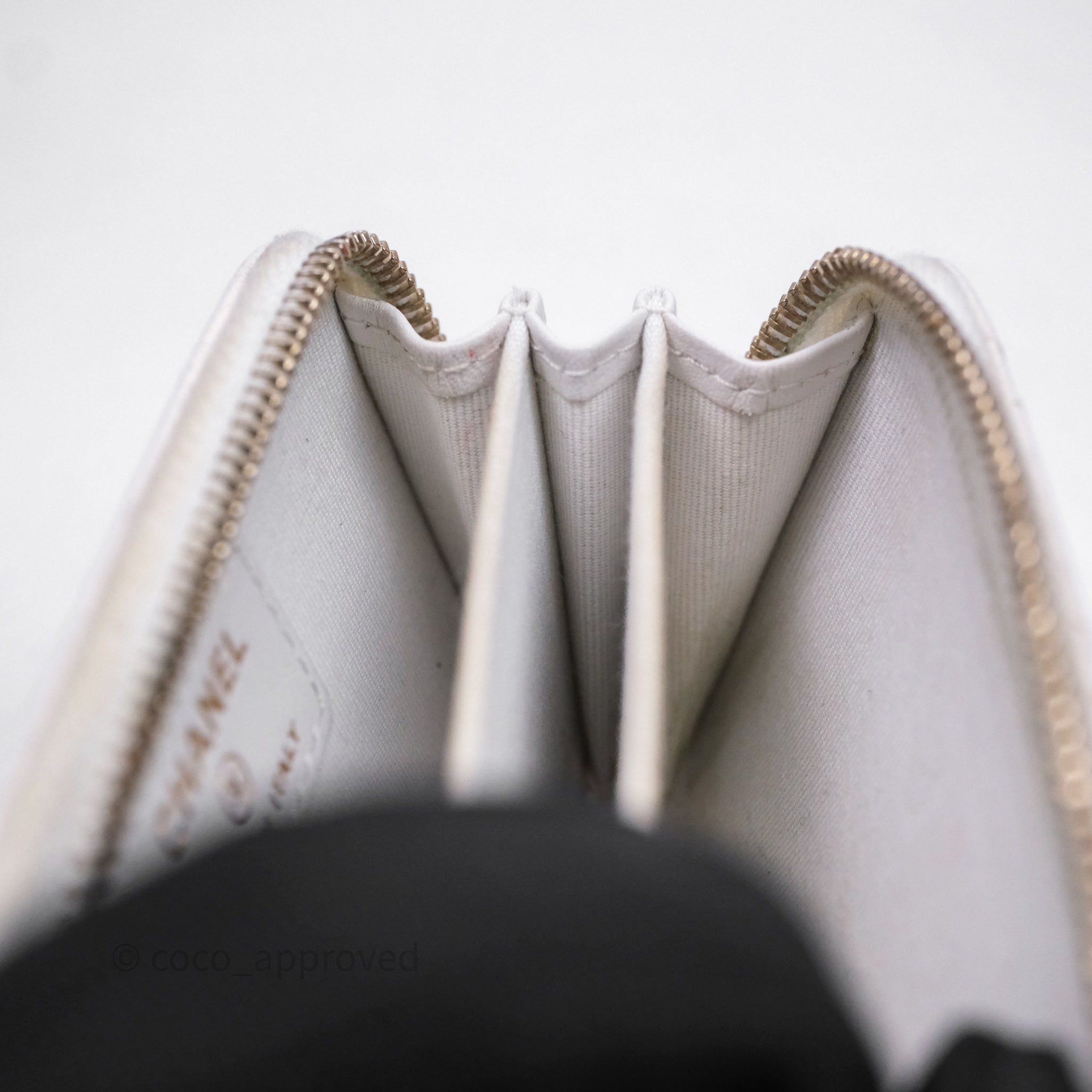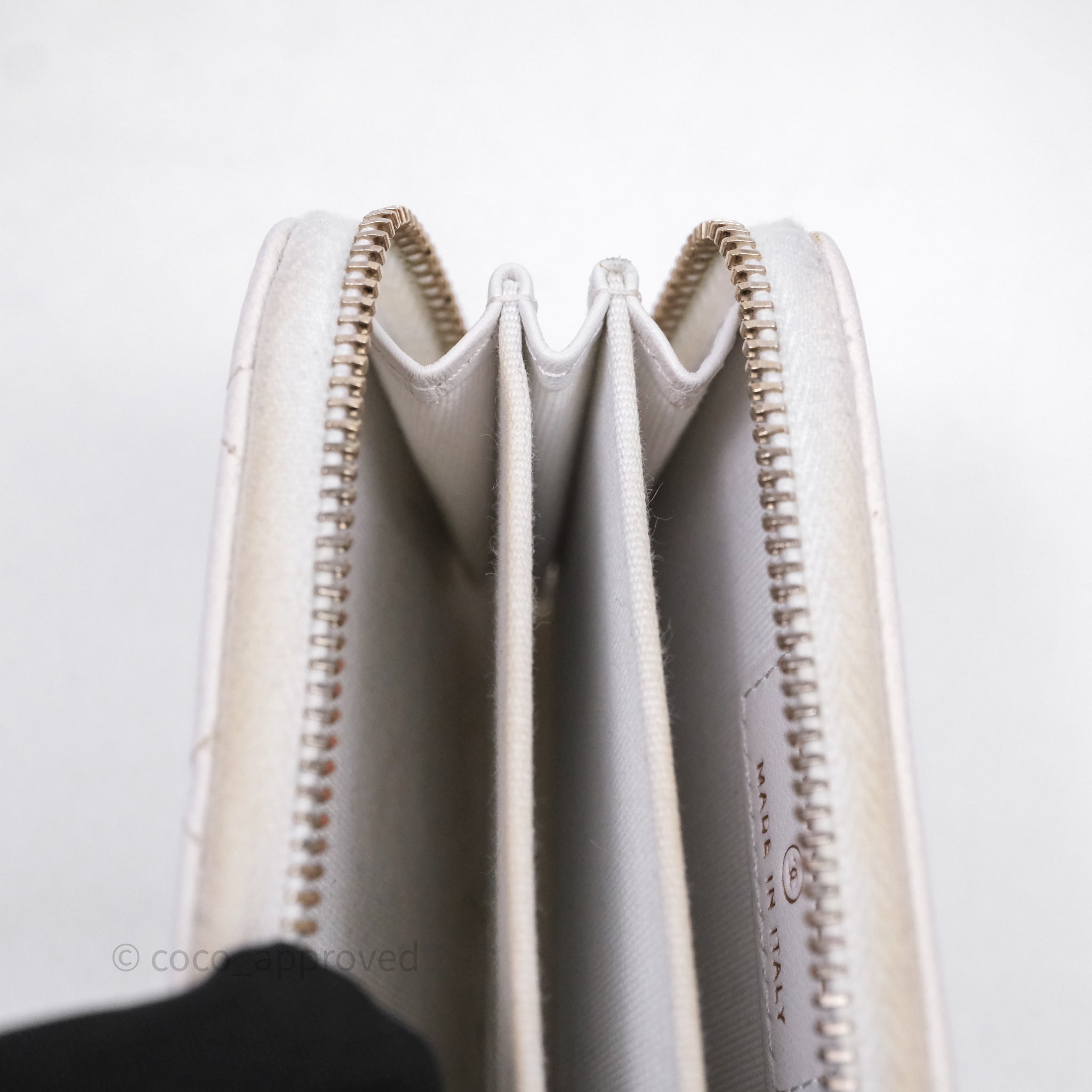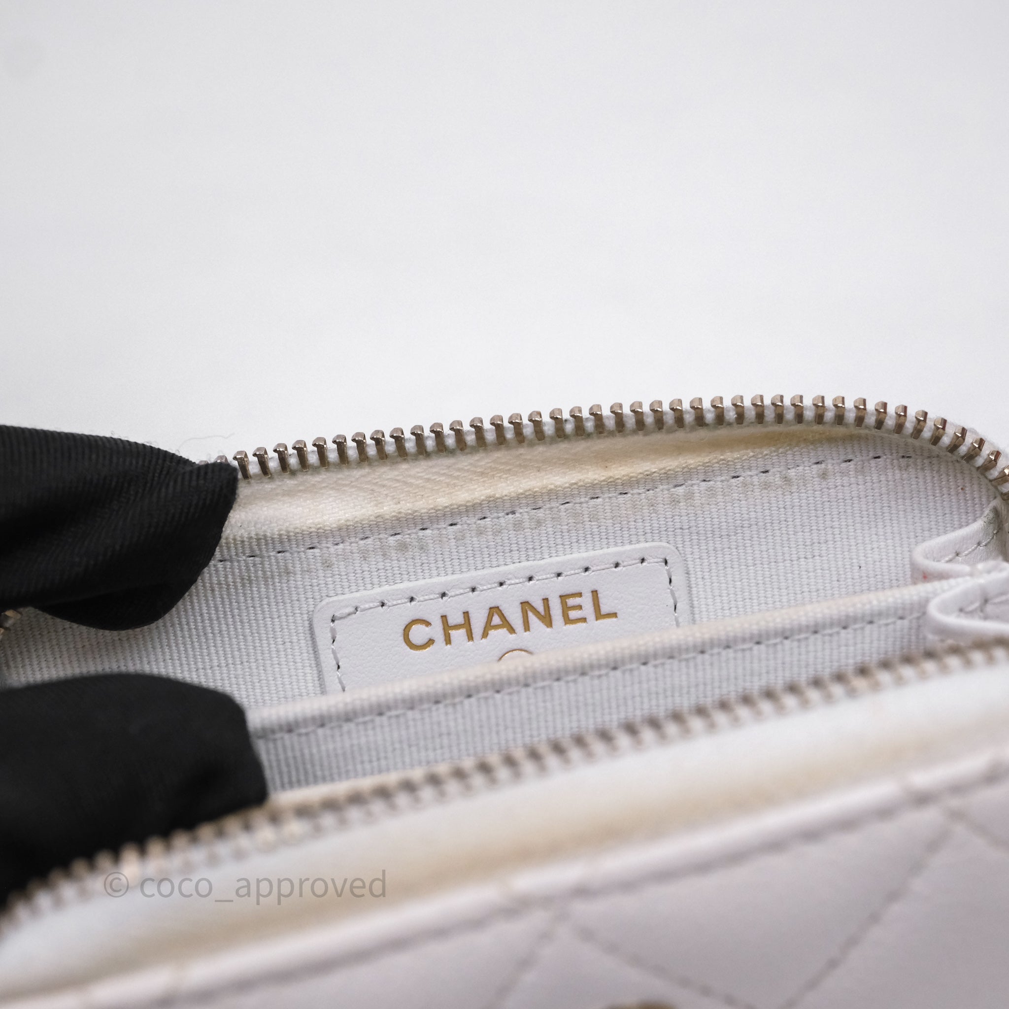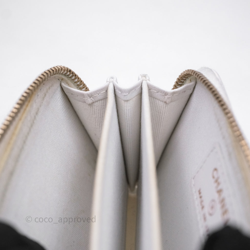 Chanel Classic Zipped Coin Purse White Caviar Gold Hardware