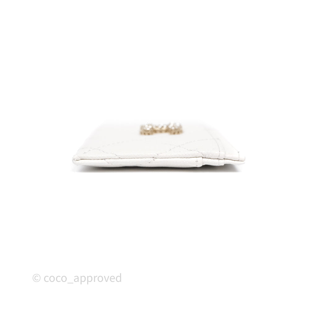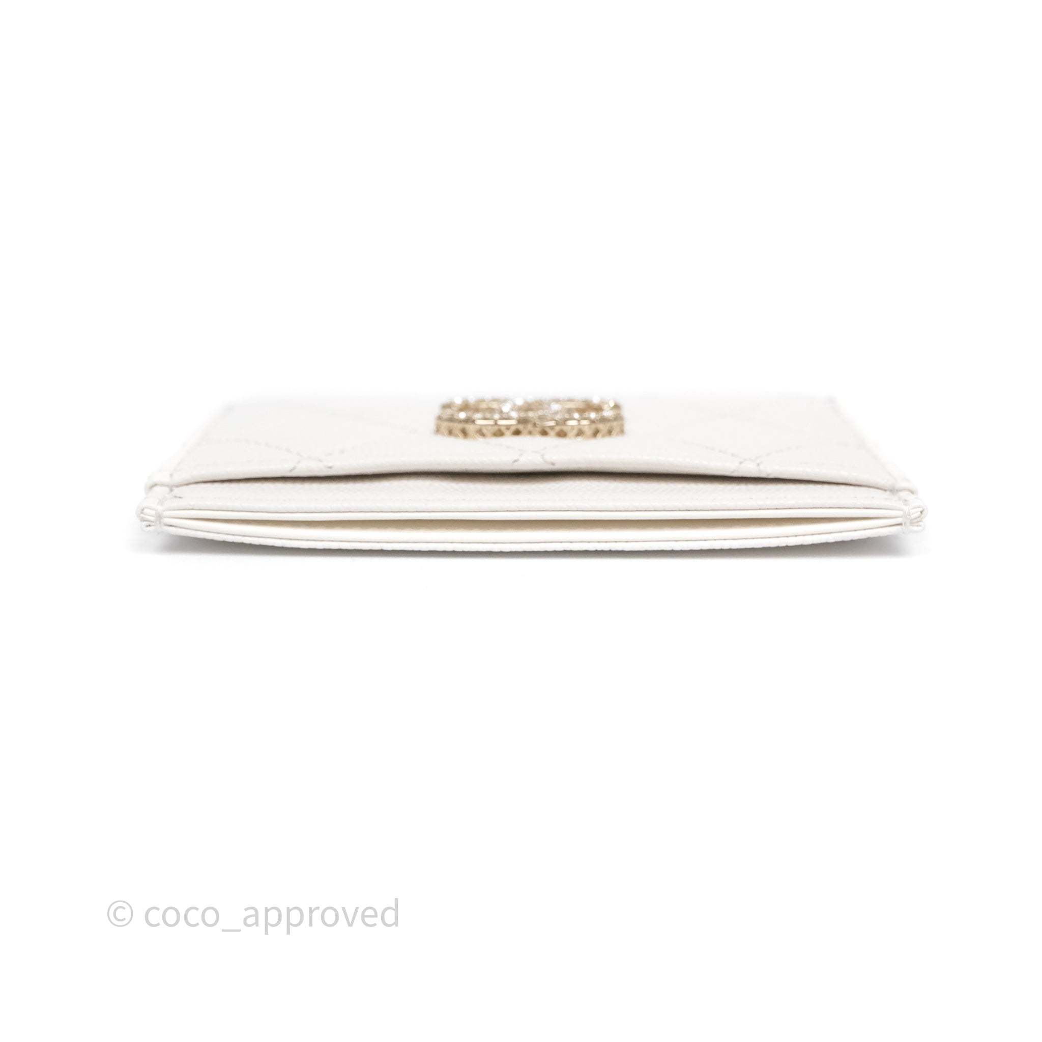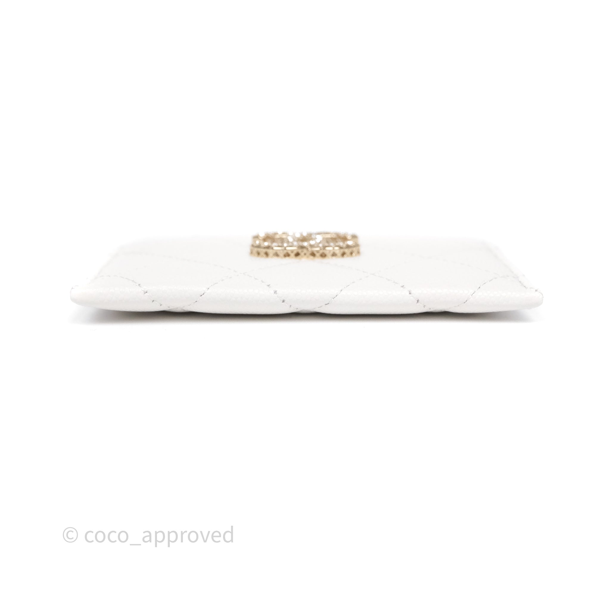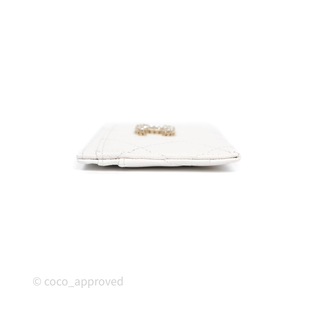 Chanel Crystal CC Quilted Flat Card Holder White Caviar