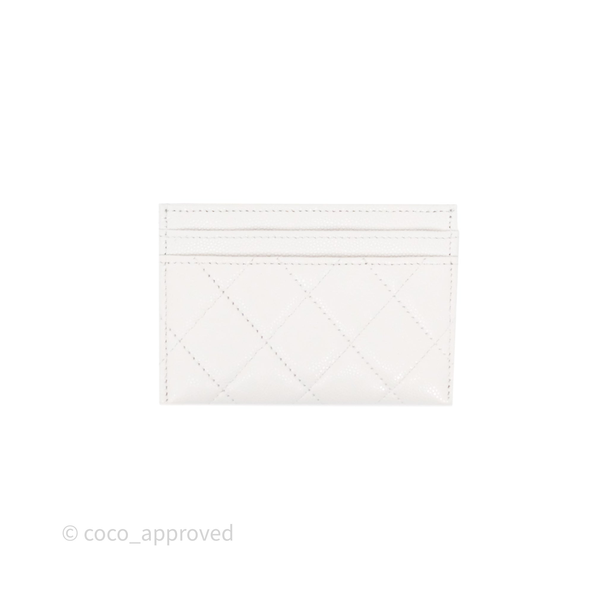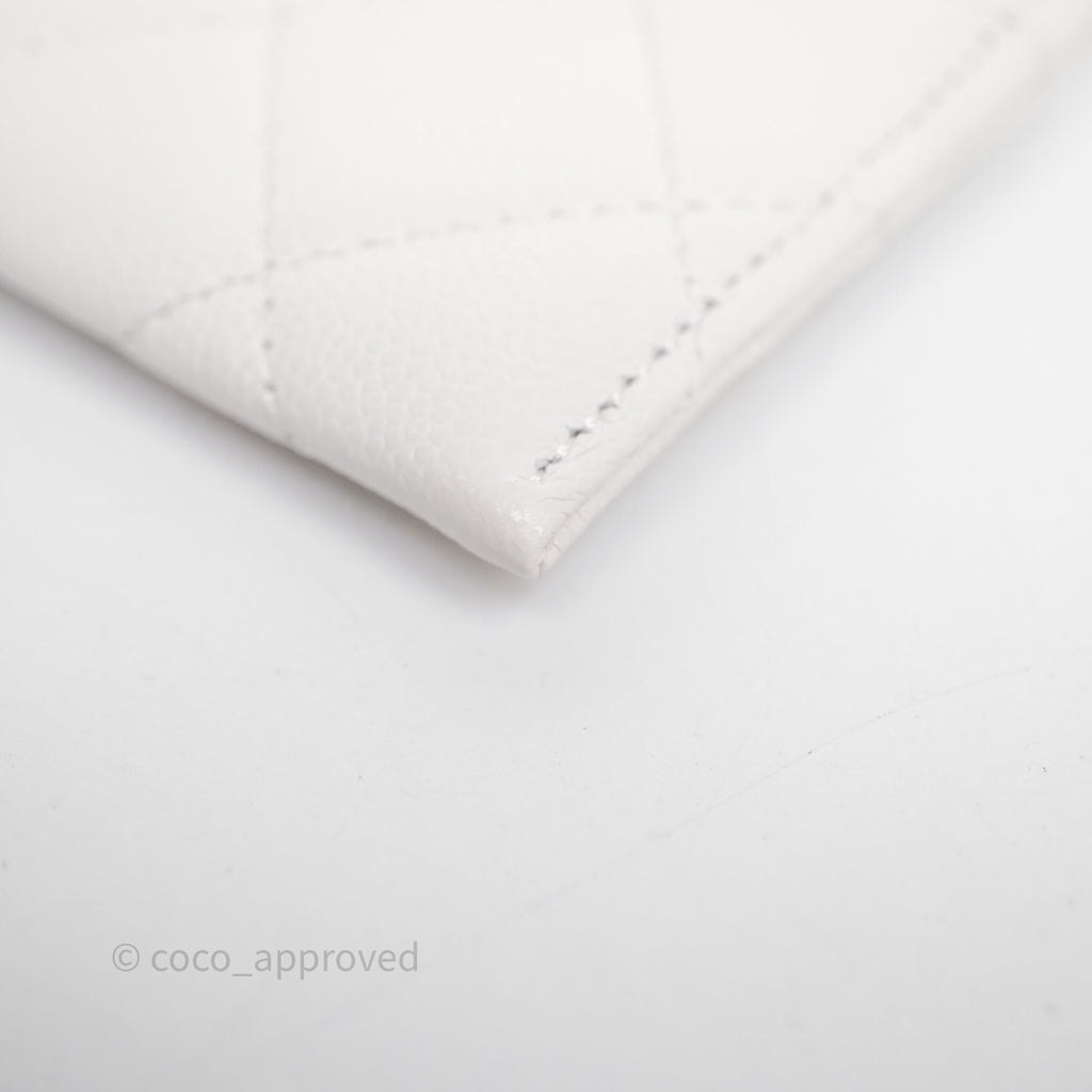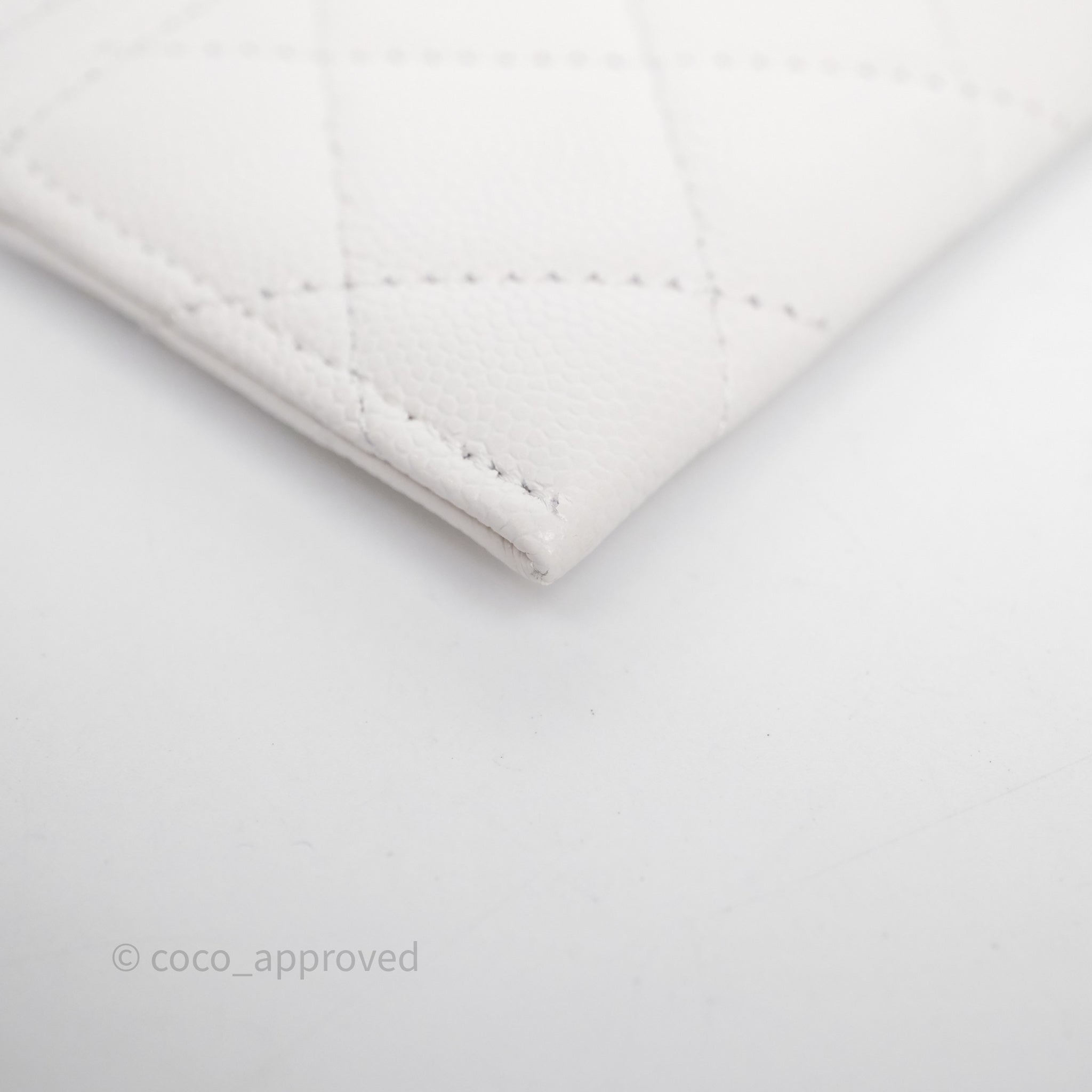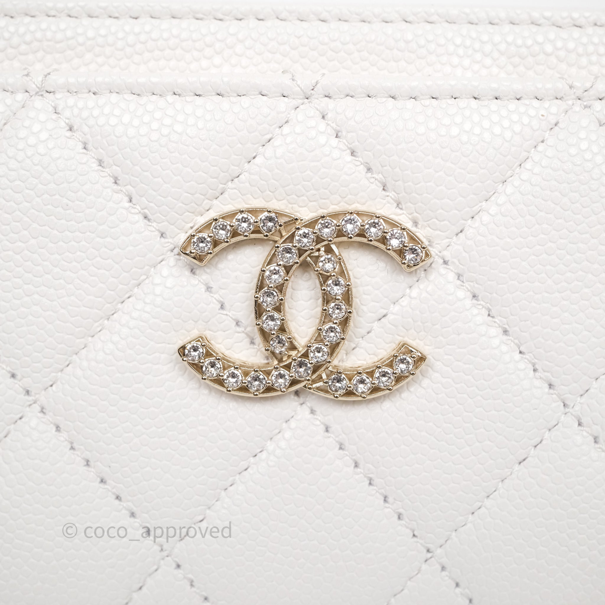 Chanel Crystal CC Quilted Flat Card Holder White Caviar