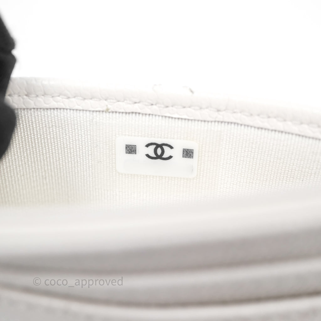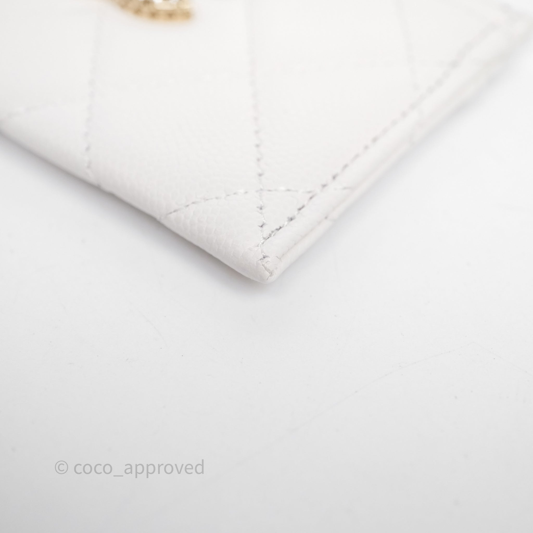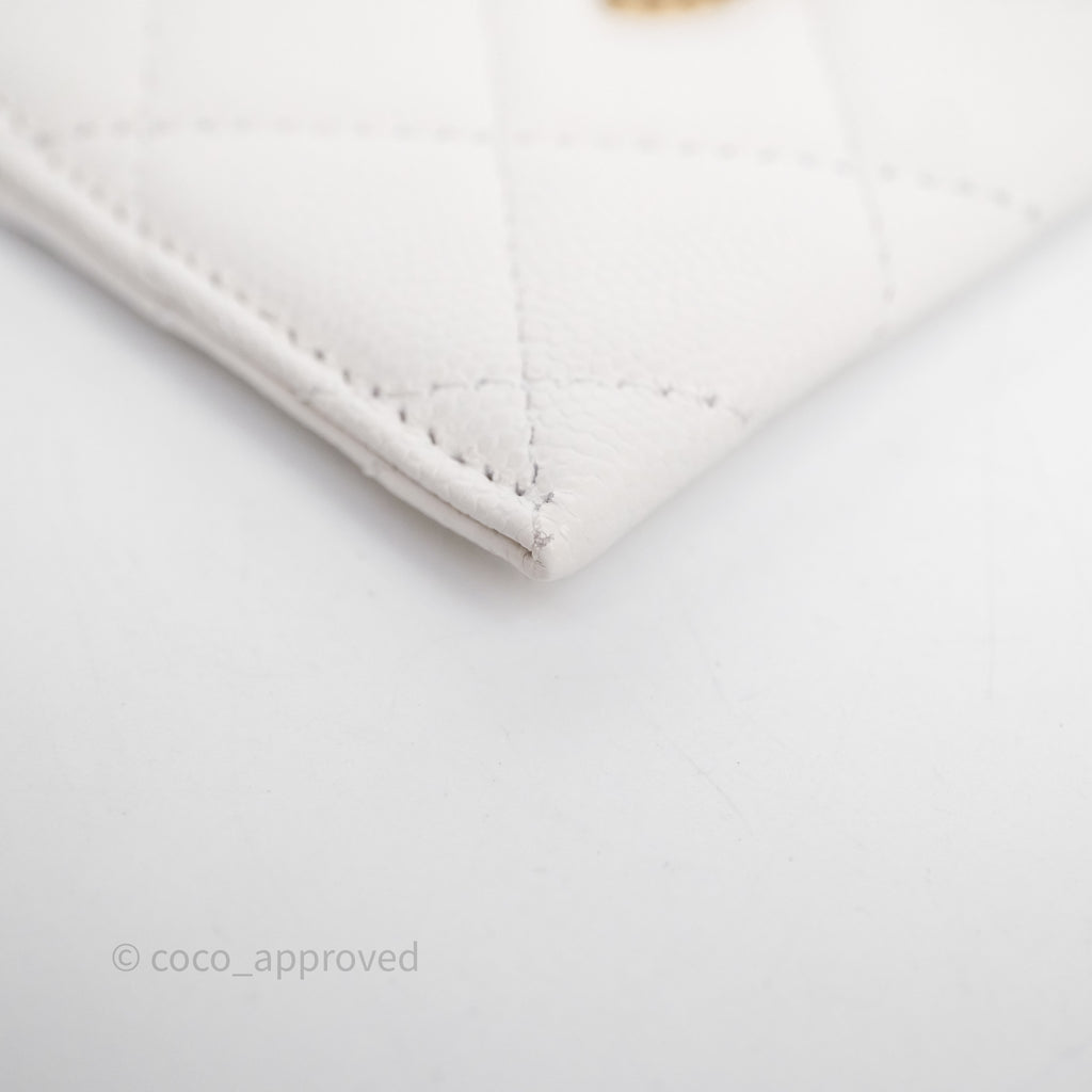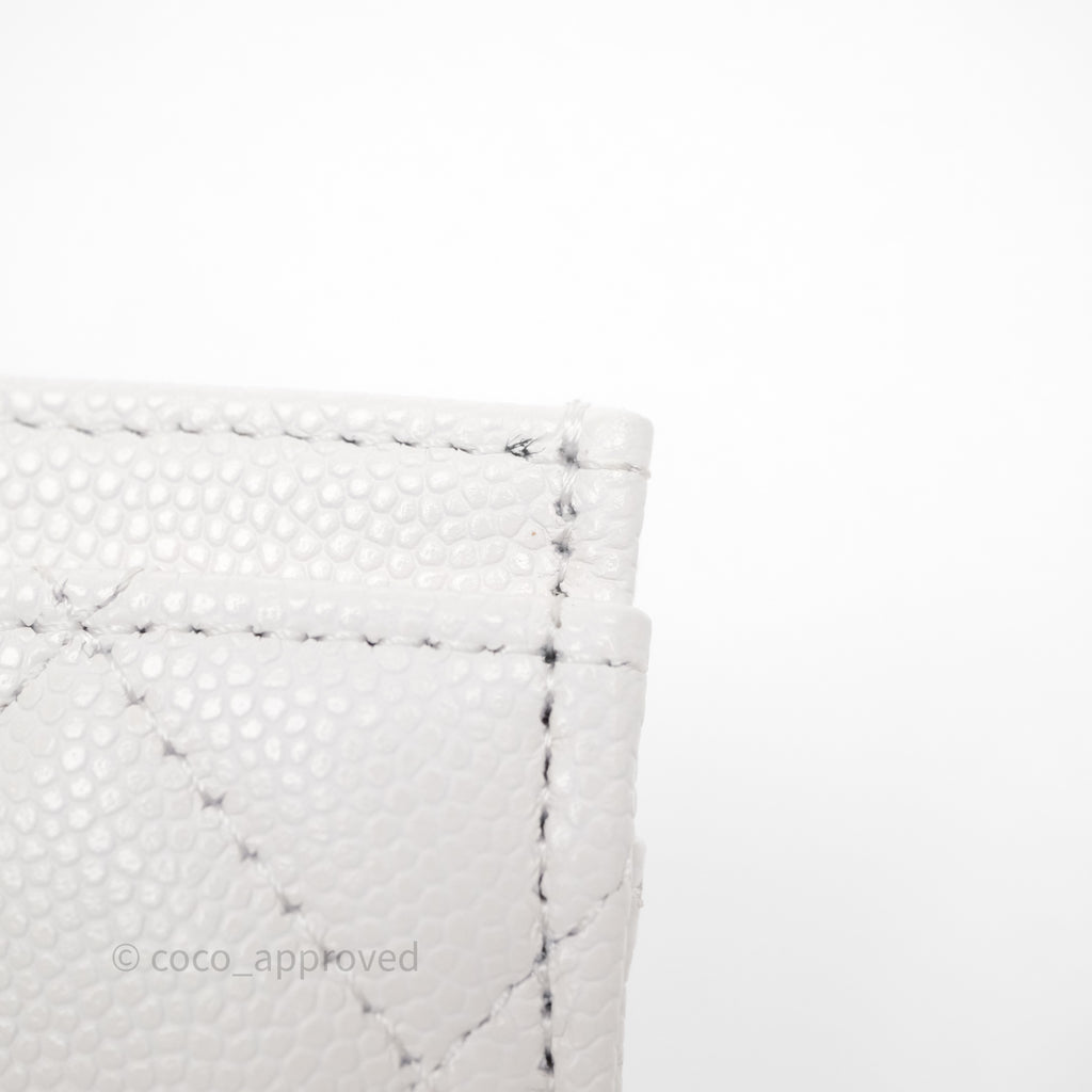 Chanel Crystal CC Quilted Flat Card Holder White Caviar