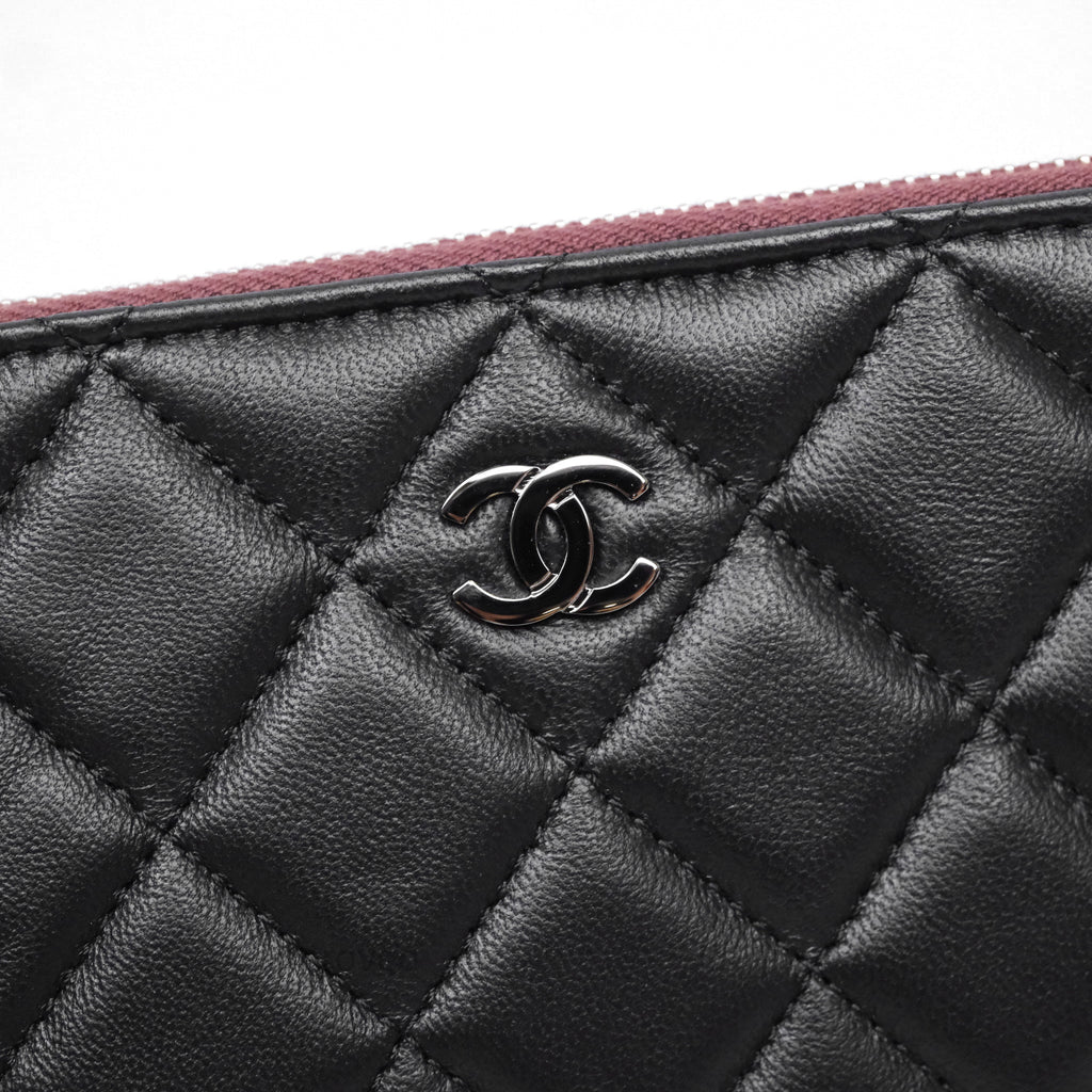 Chanel Quilted Mini O Case Black Lambskin Silver Hardware