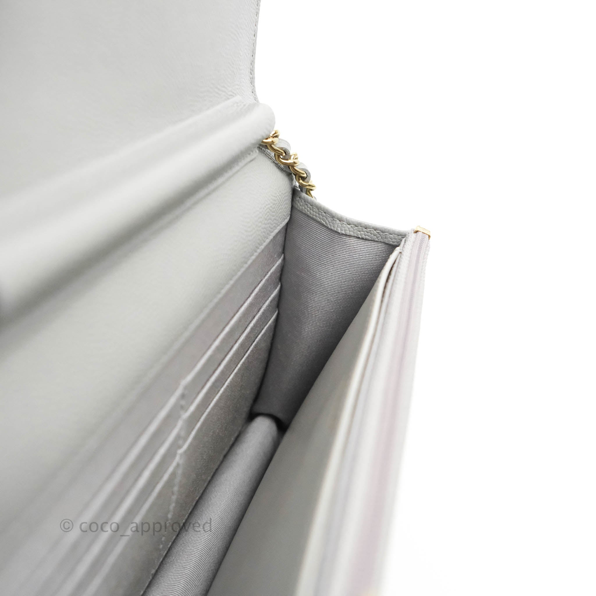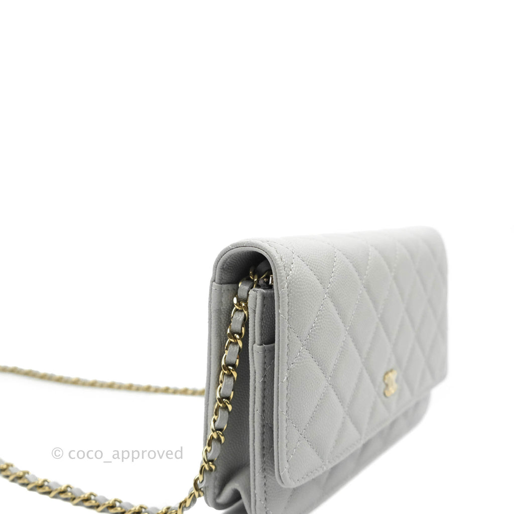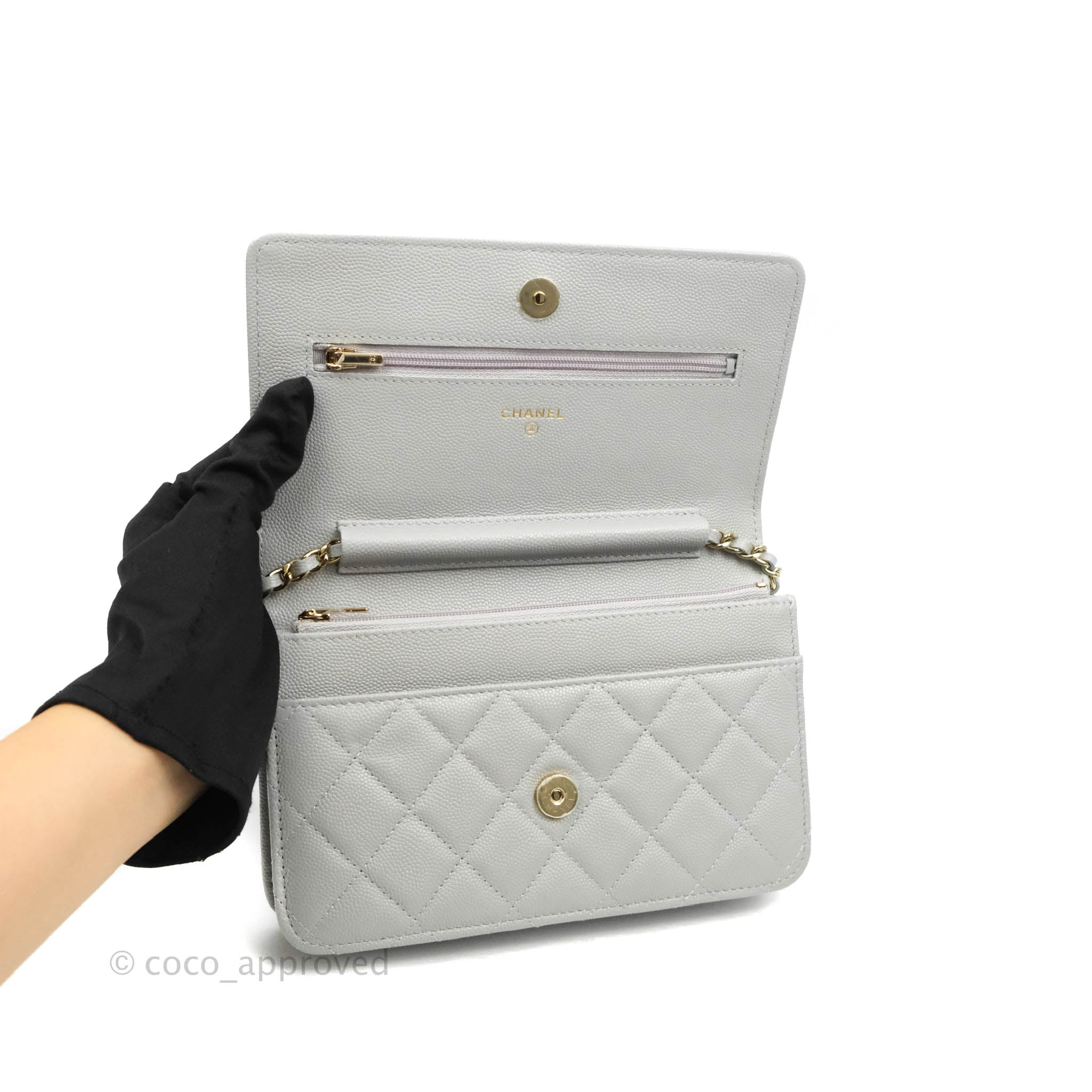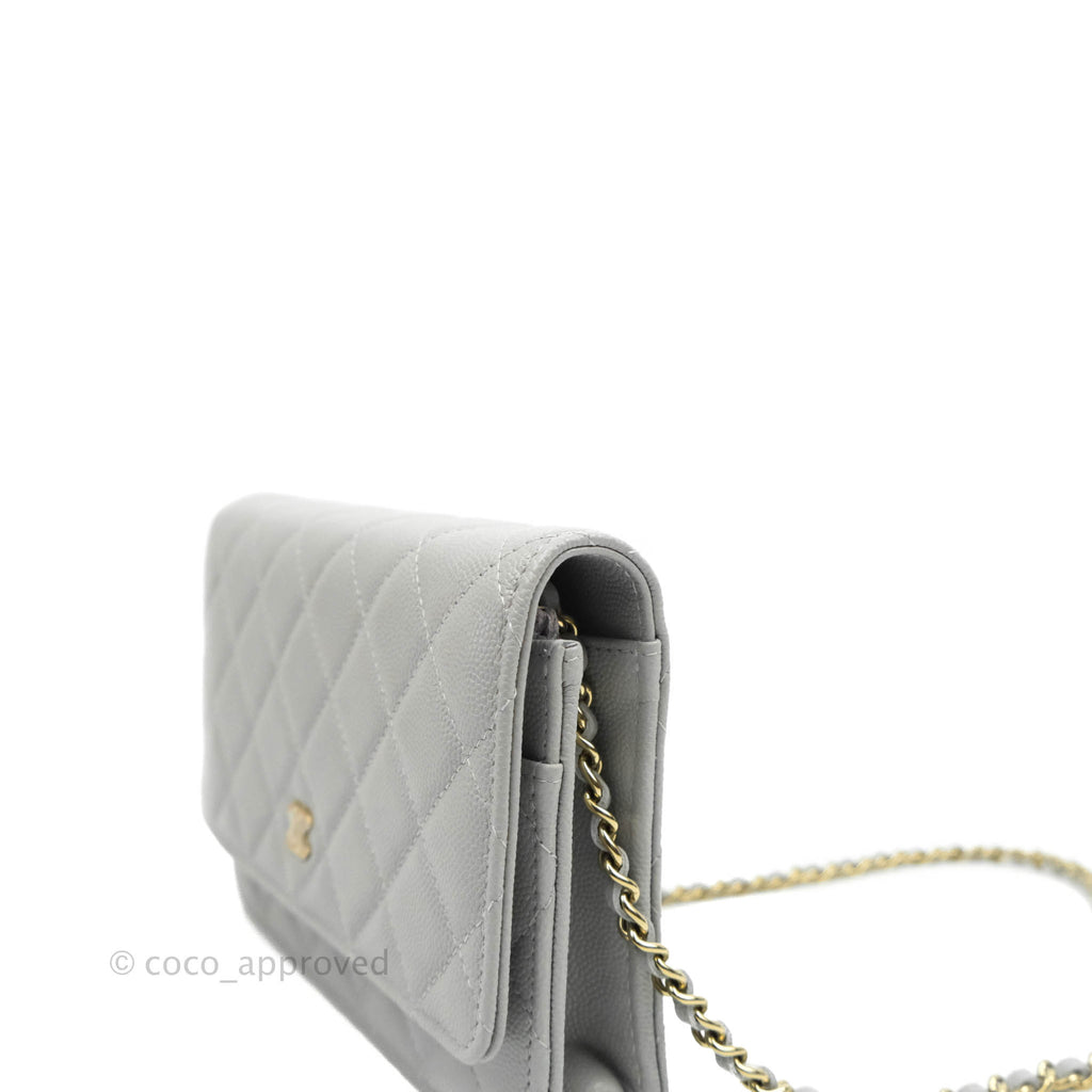 Chanel Quilted Wallet On Chain WOC Grey Caviar Gold Hardware 21A