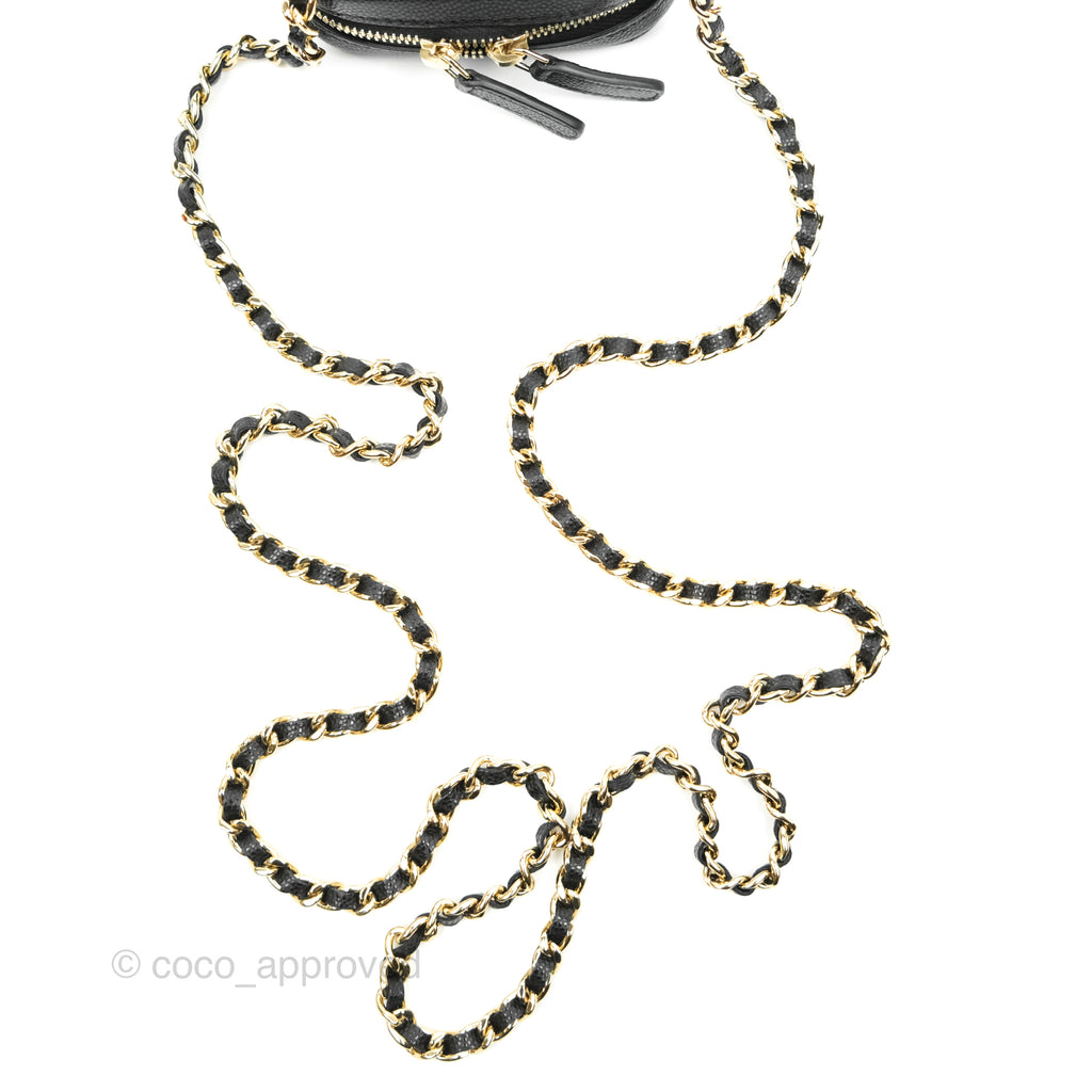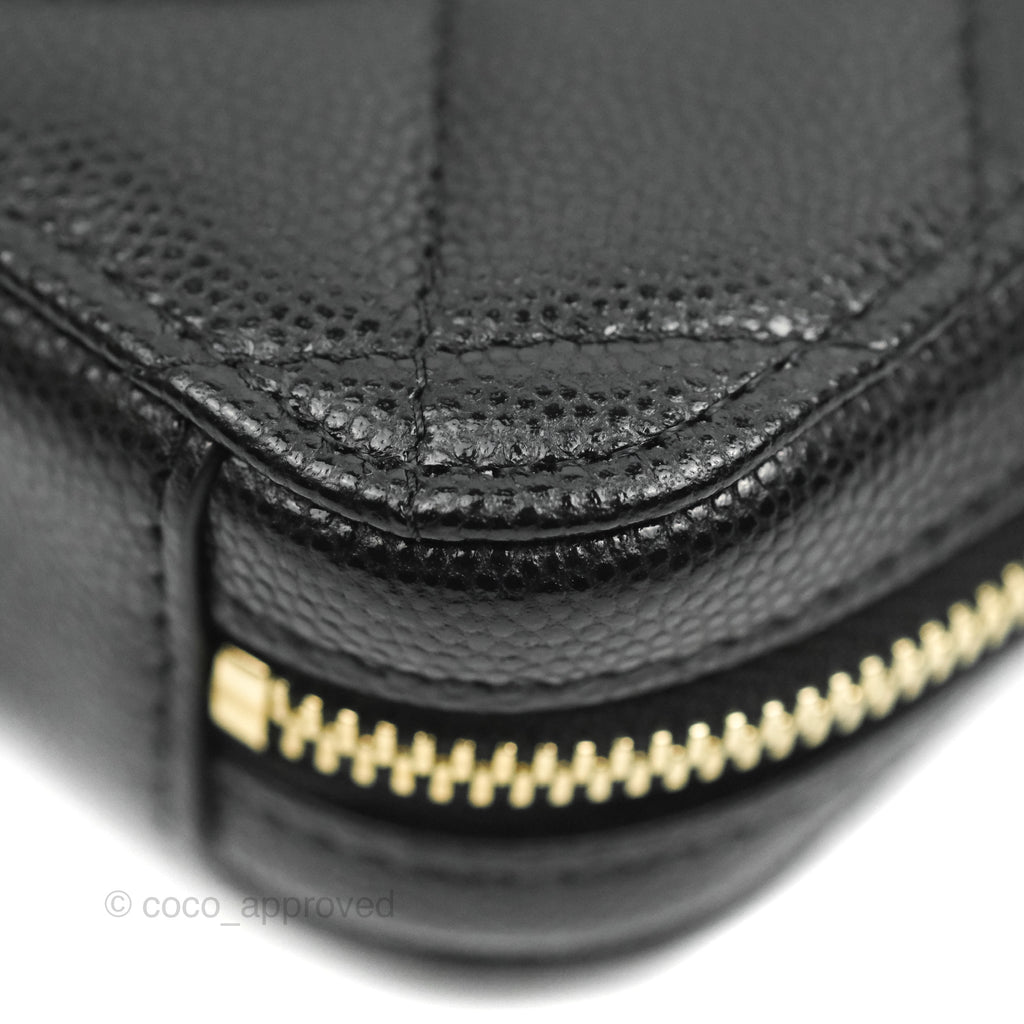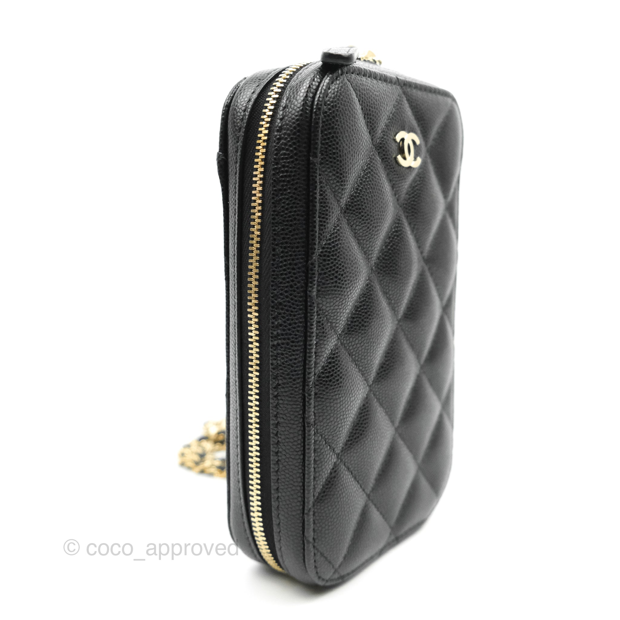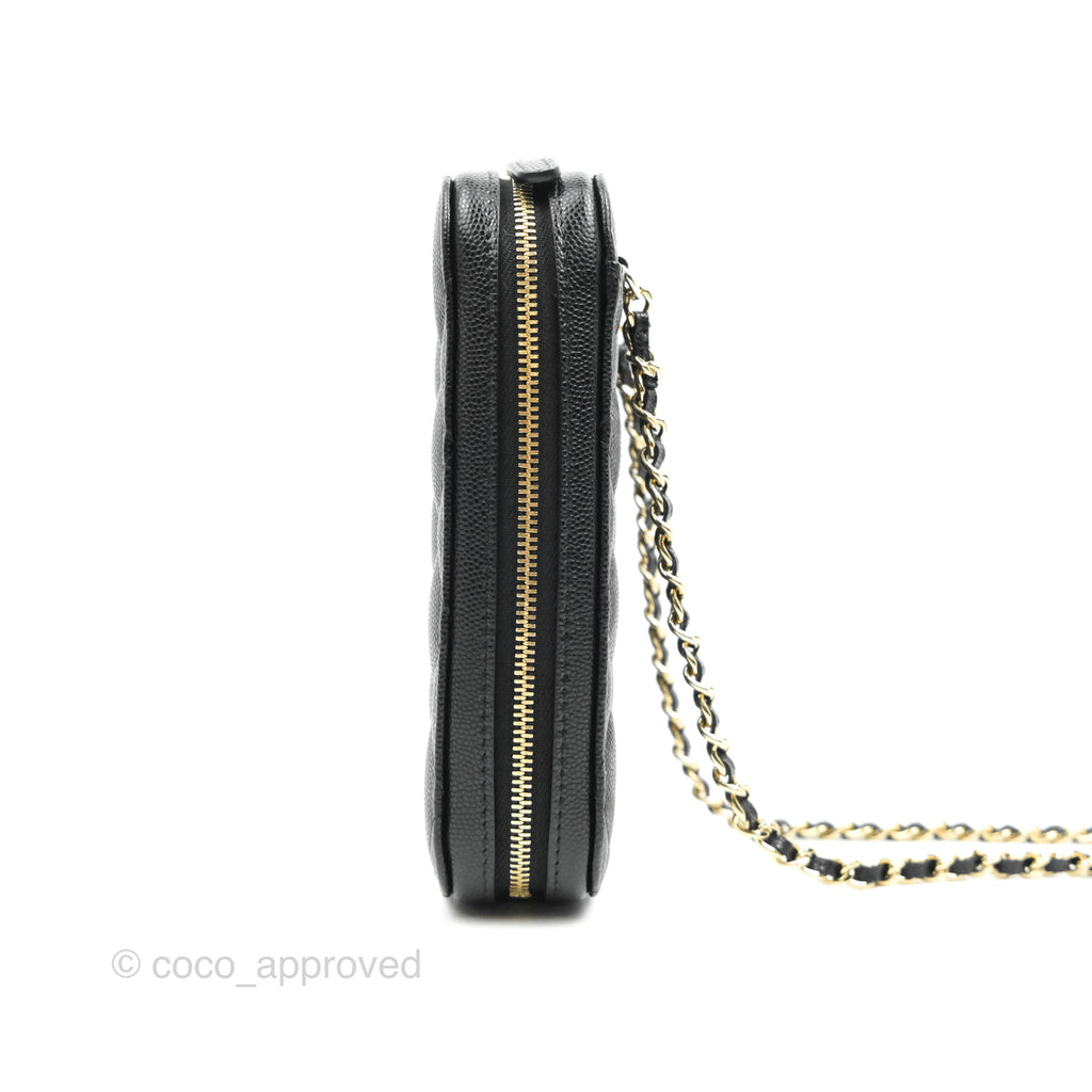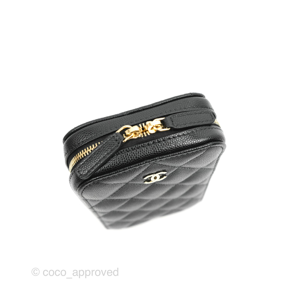 Chanel Quilted WOC Phone Holder Black Caviar Gold Hardware
