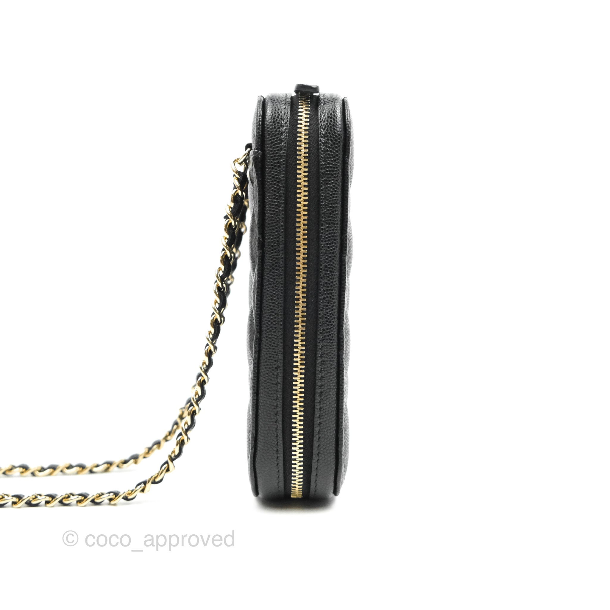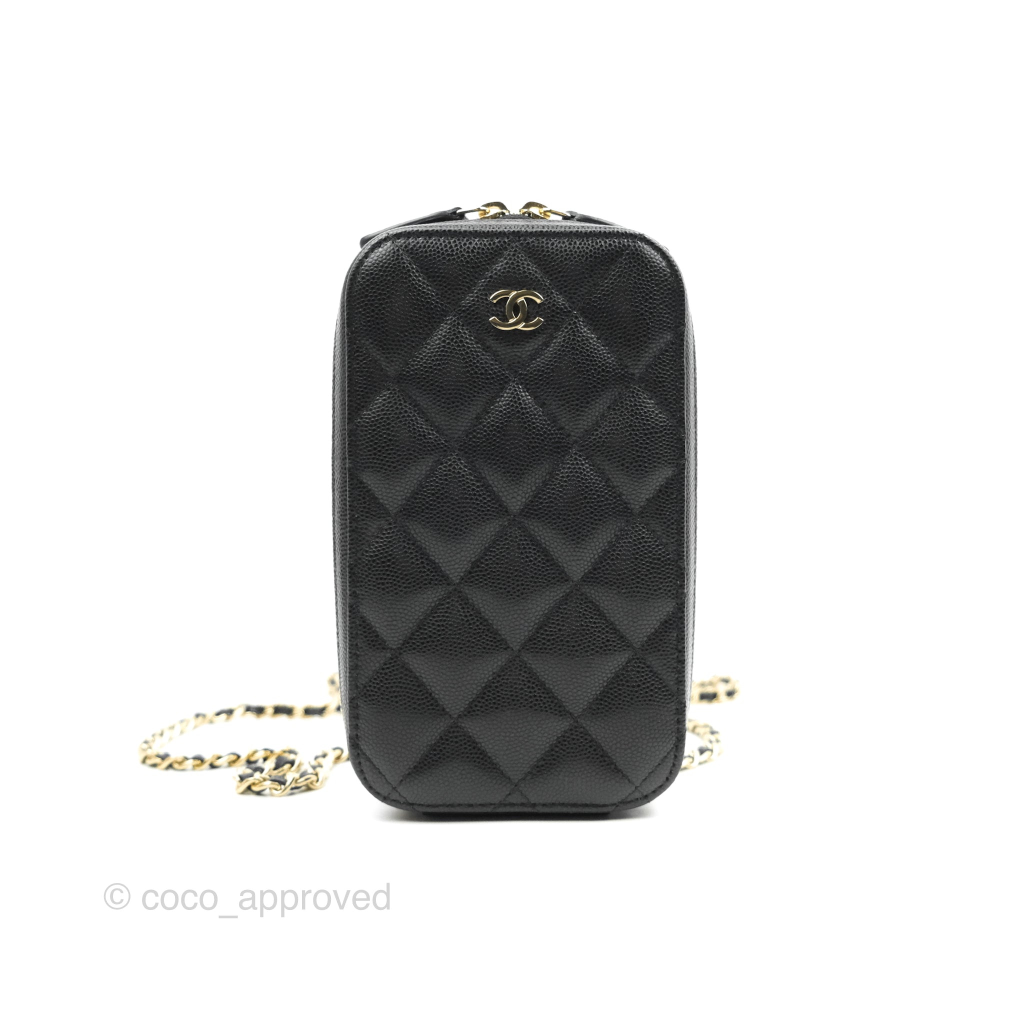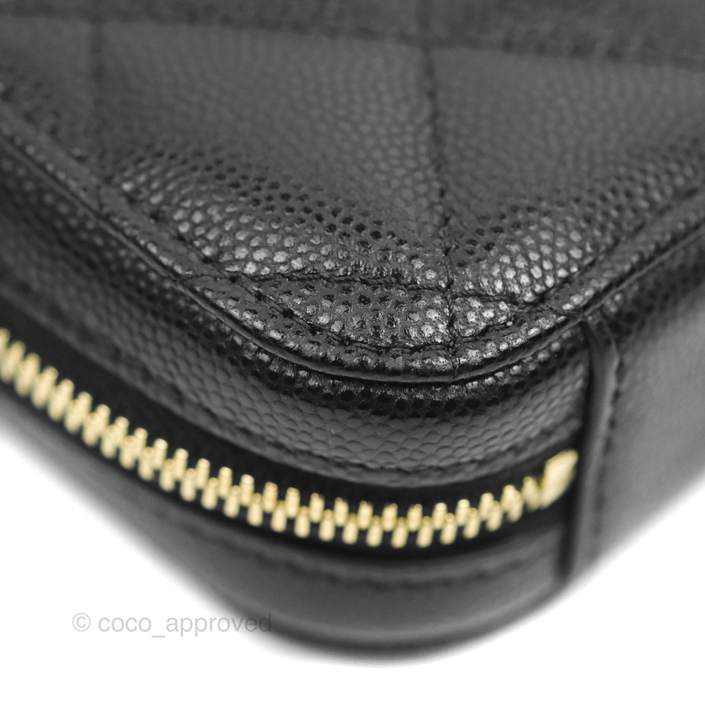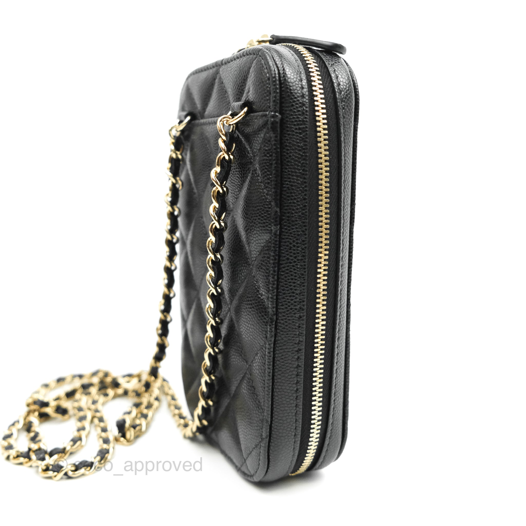 Chanel Quilted WOC Phone Holder Black Caviar Gold Hardware
