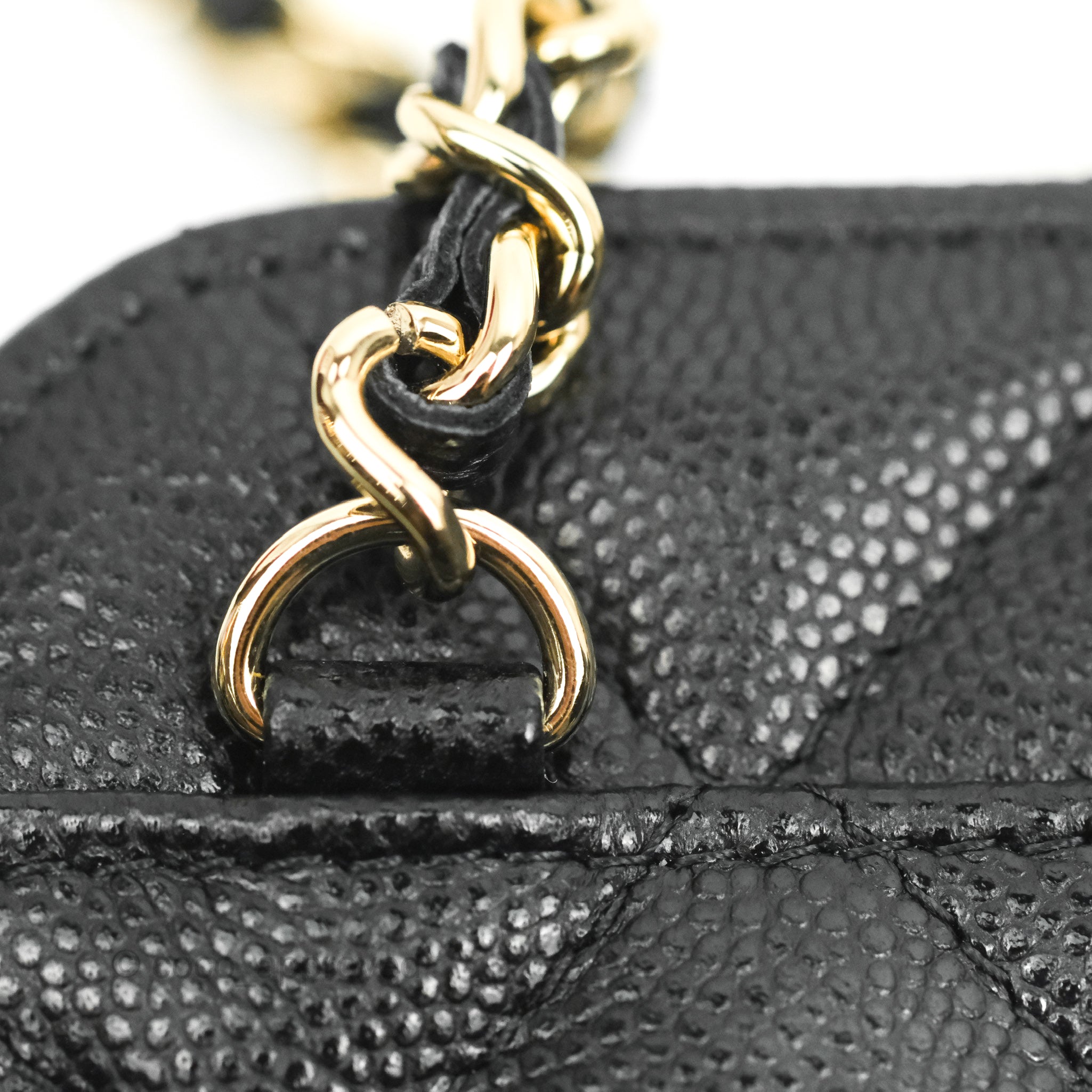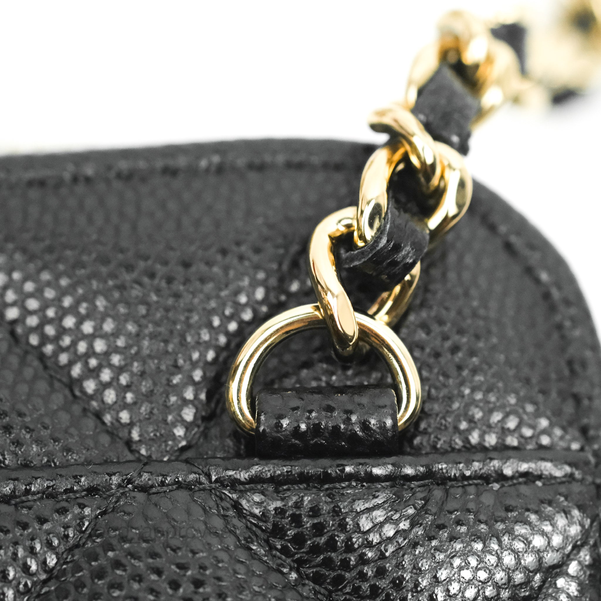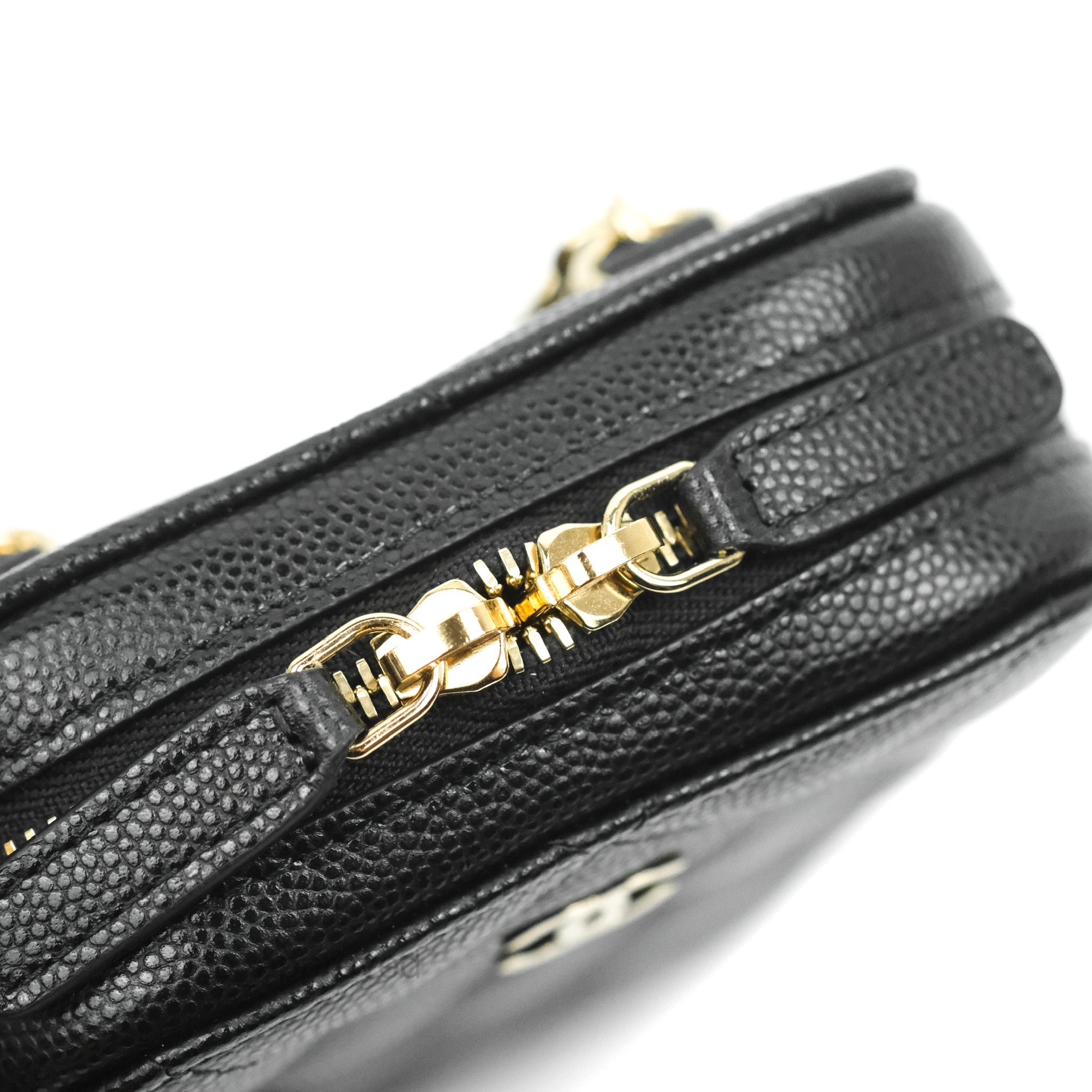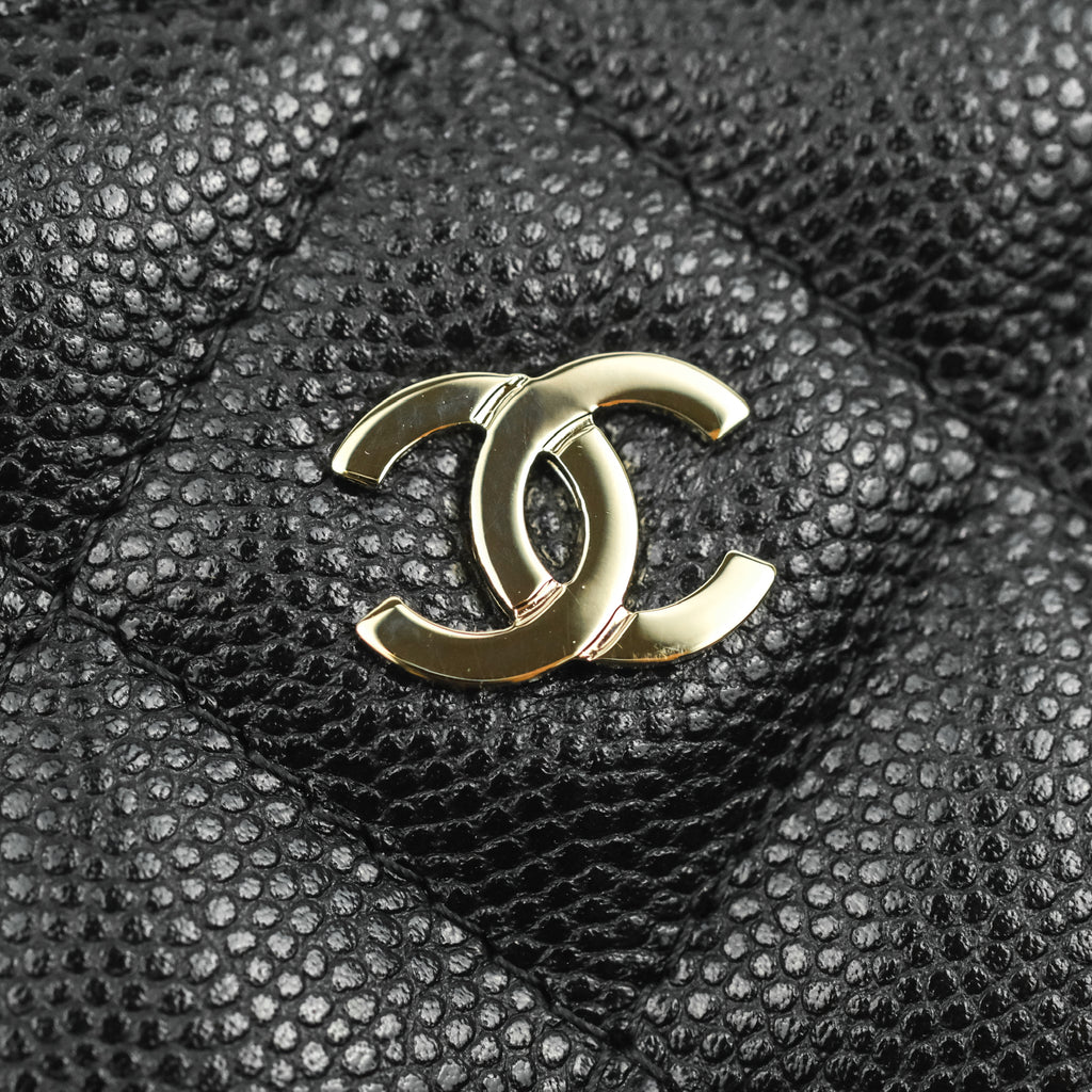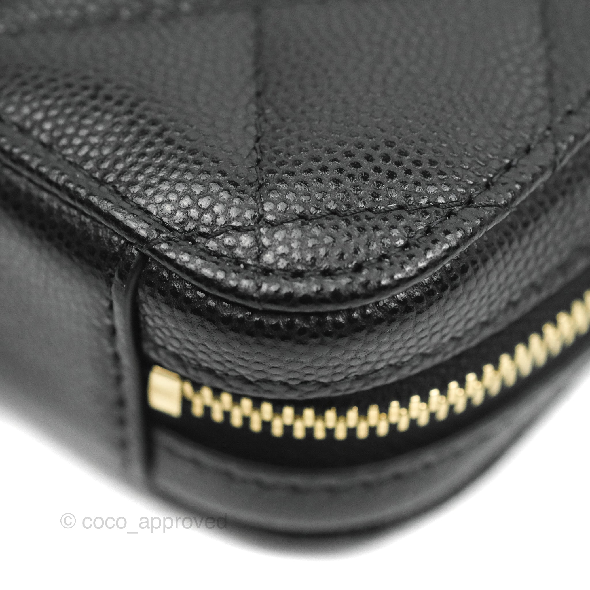 Chanel Quilted WOC Phone Holder Black Caviar Gold Hardware