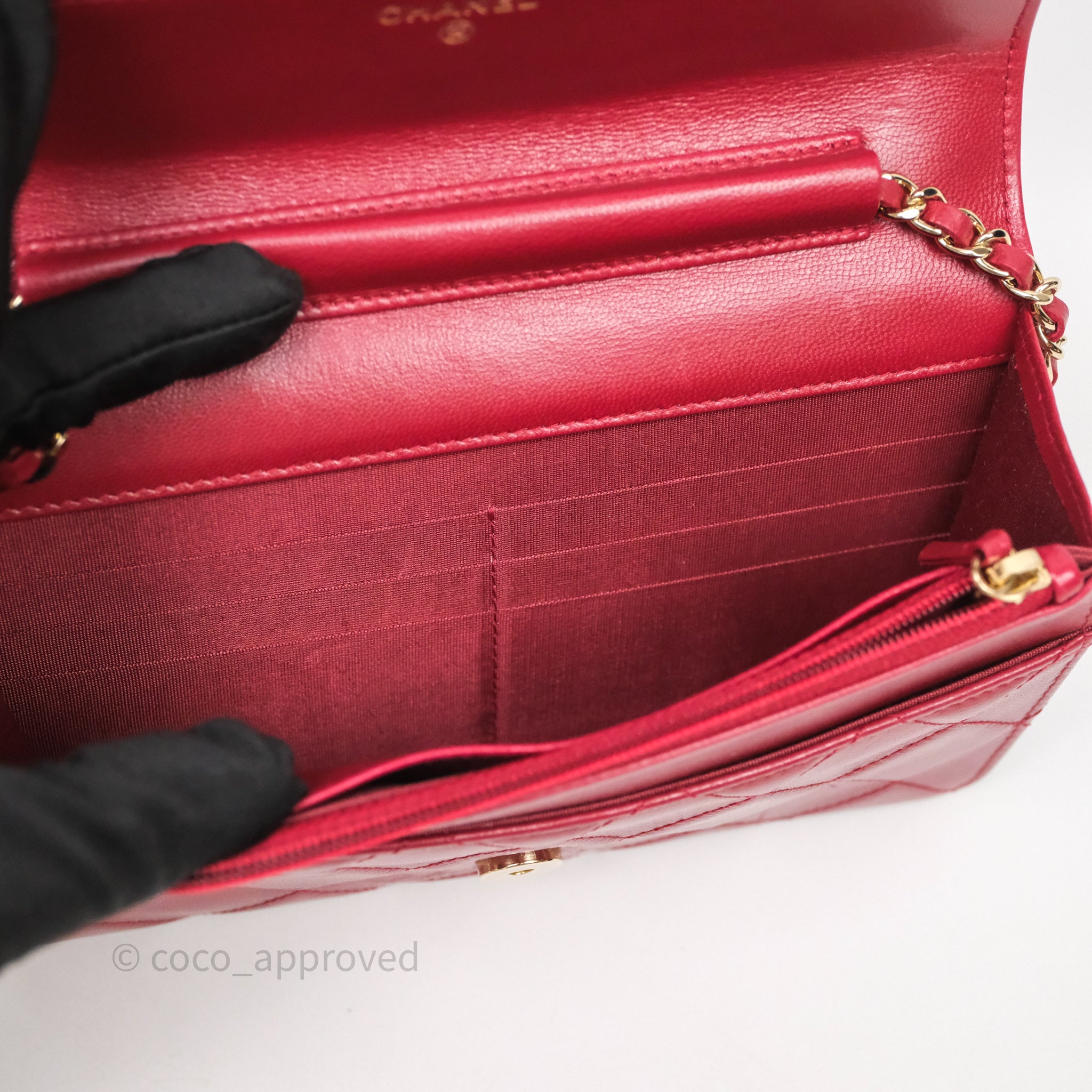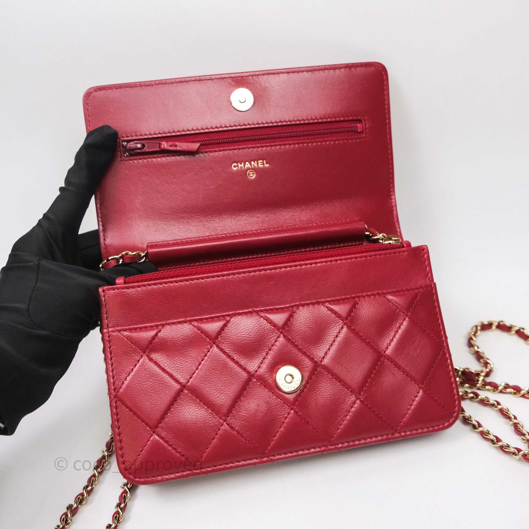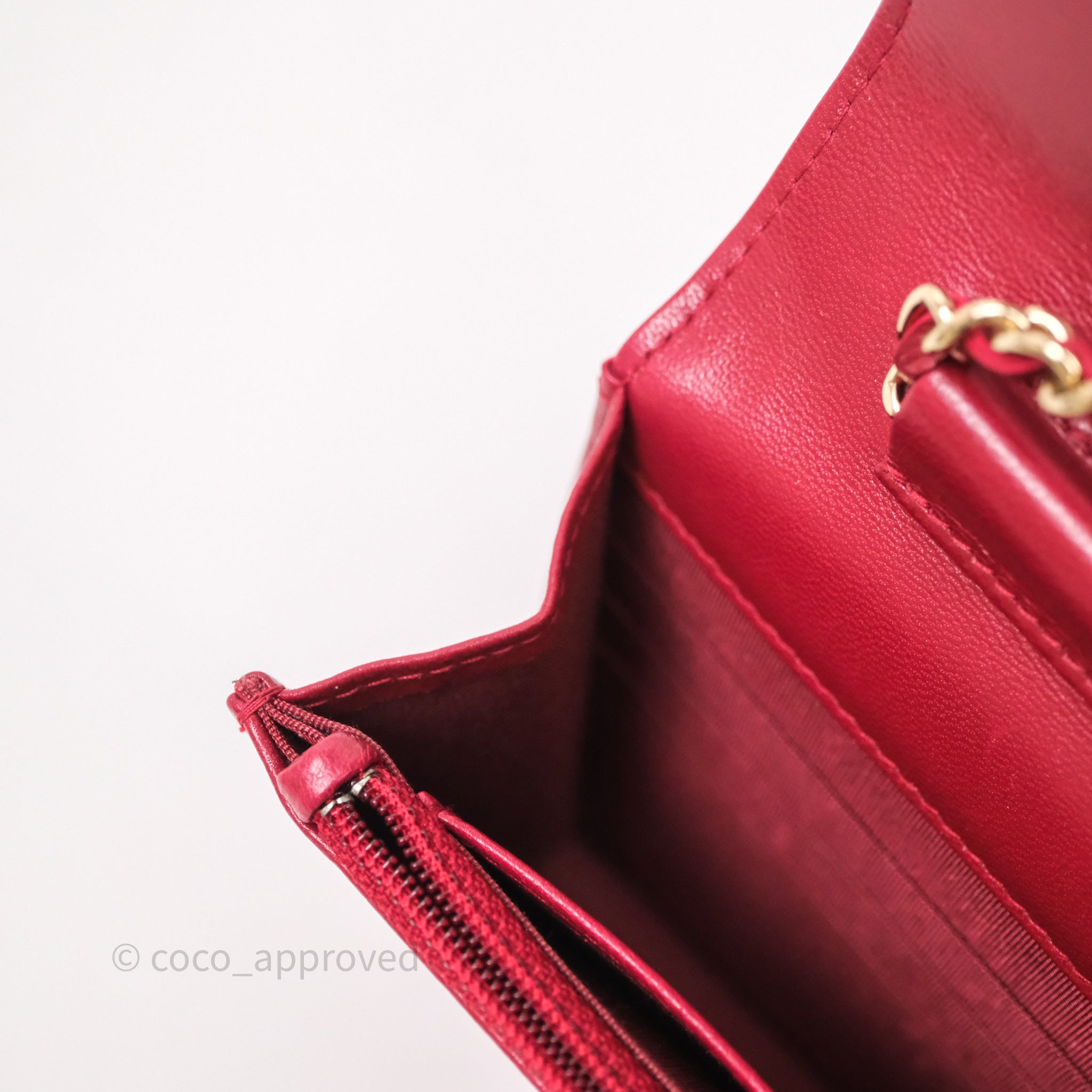 Chanel Wallet On Chain Red Calfskin Bag Gold hardware