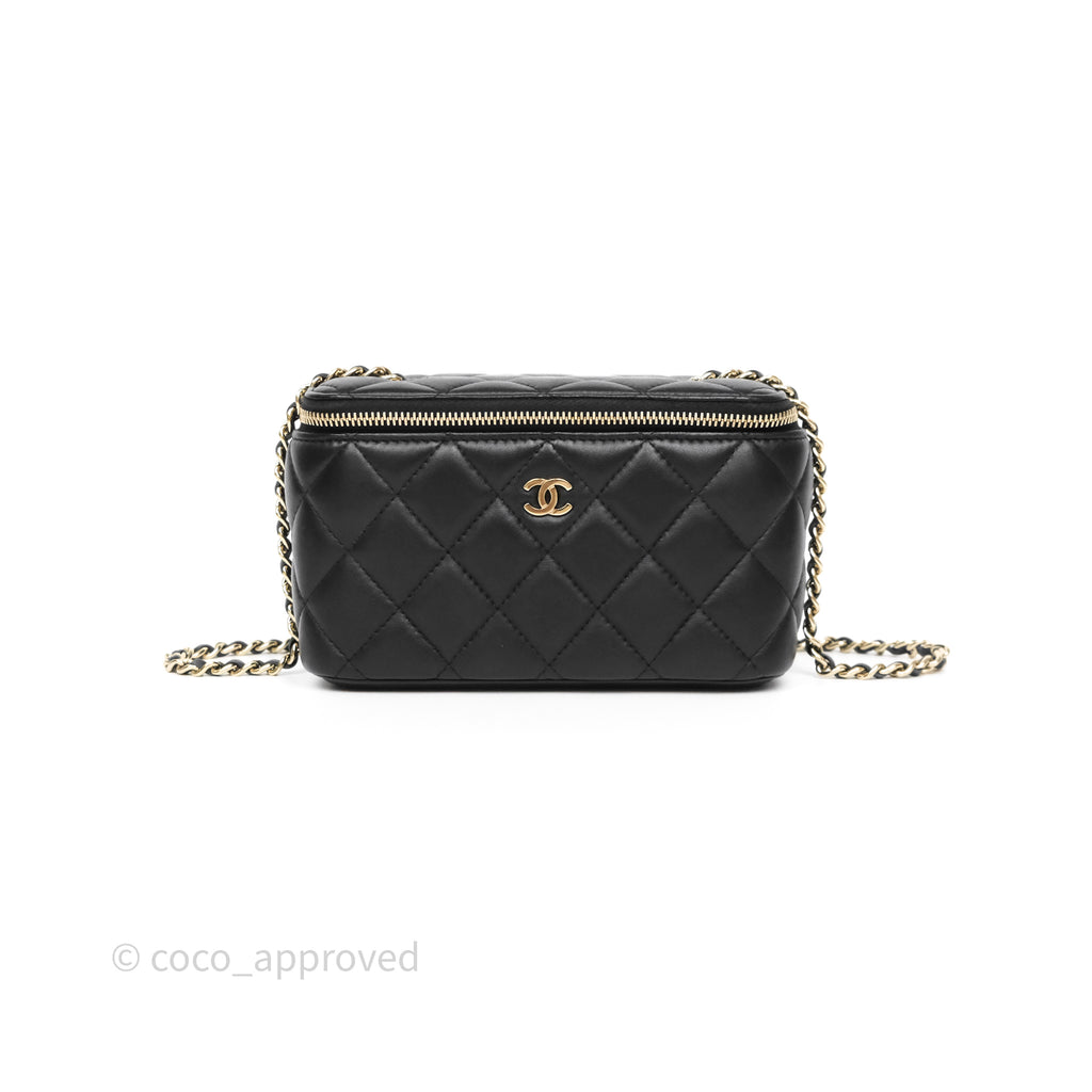 Chanel Vanity Rectangular With Chain Black Lambskin Gold Hardware