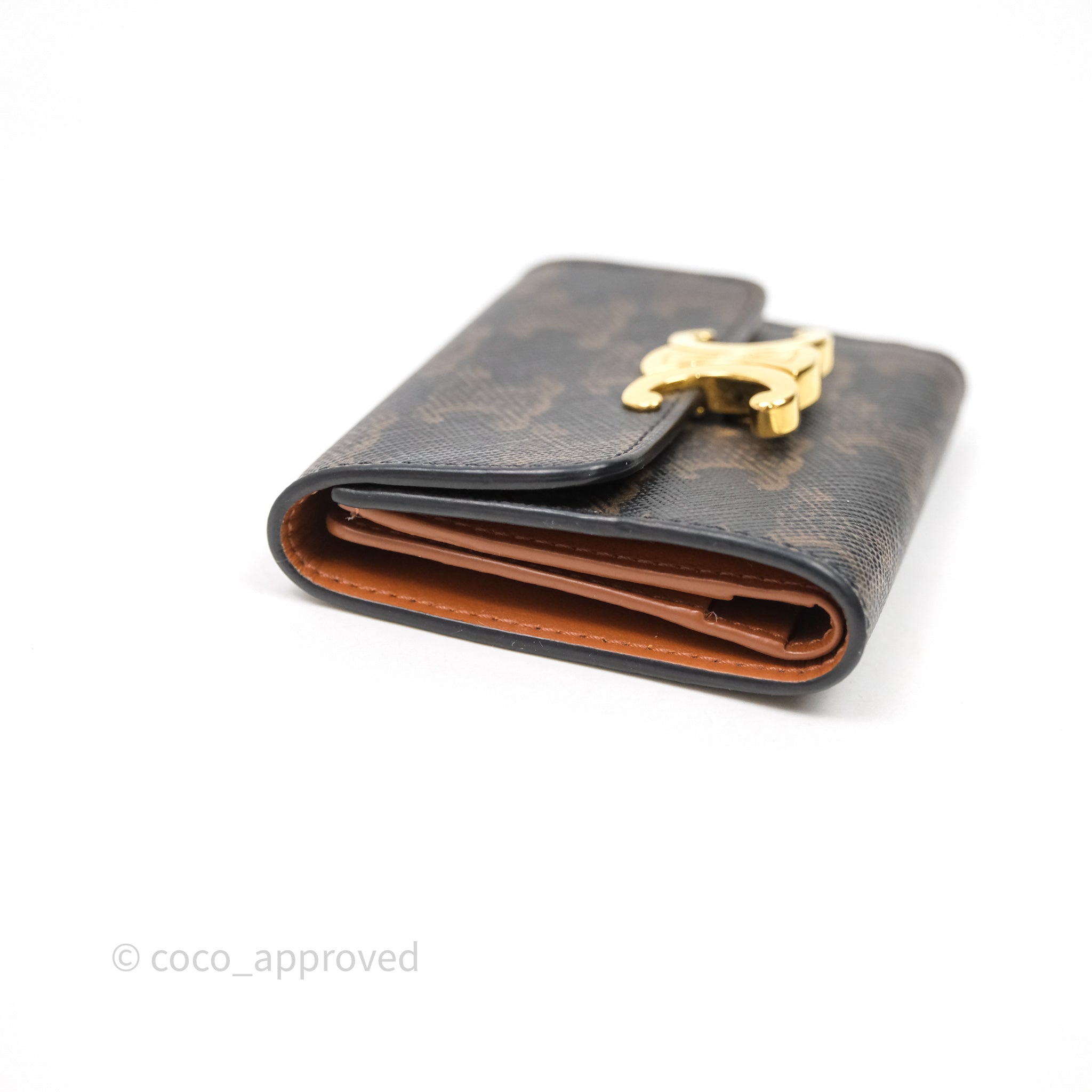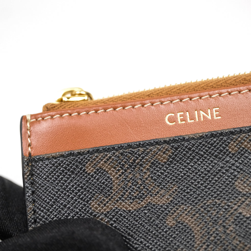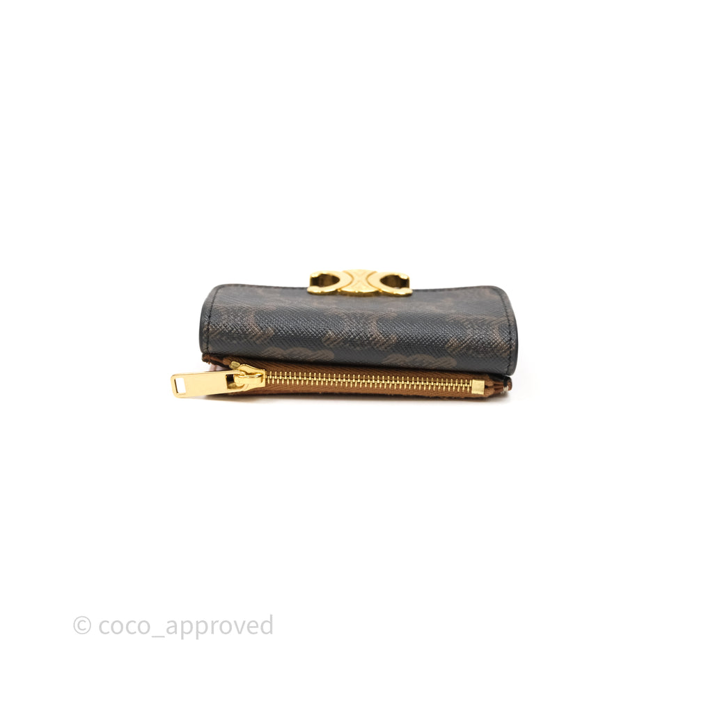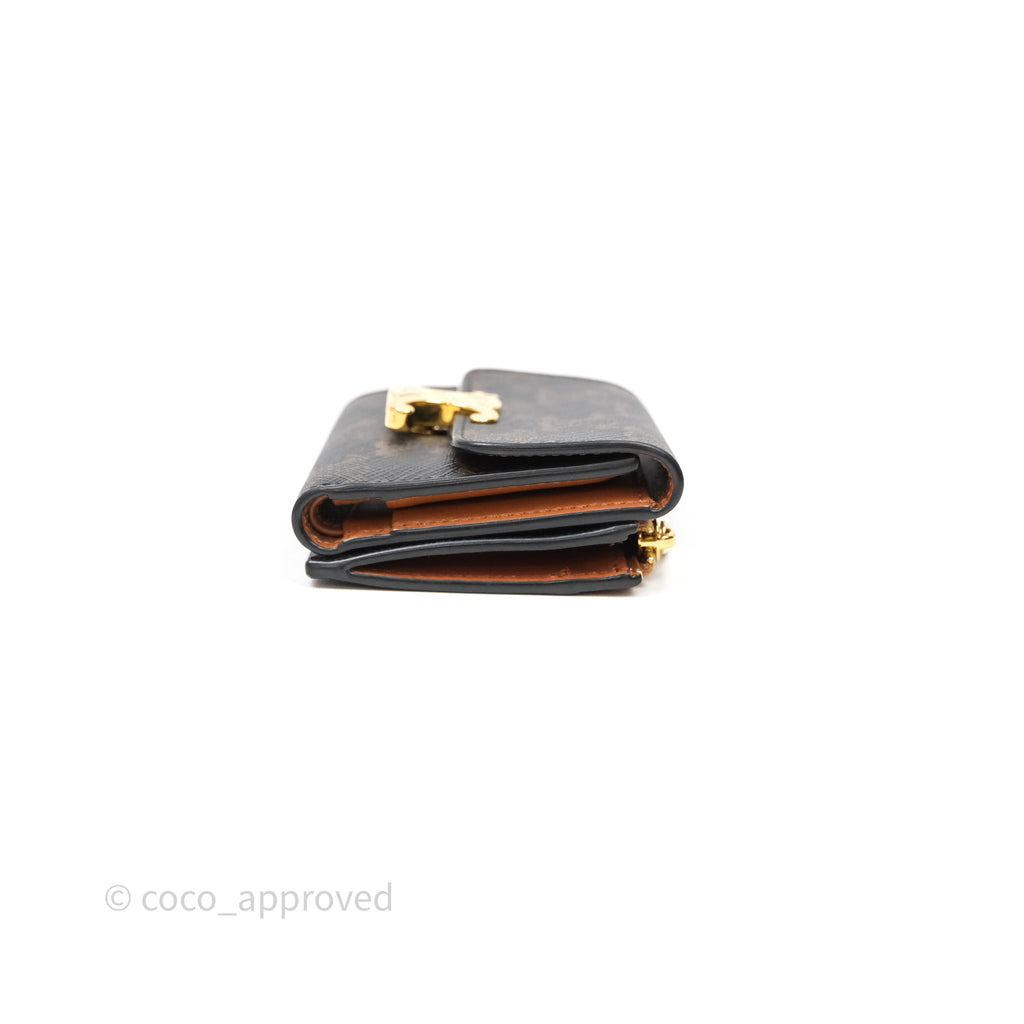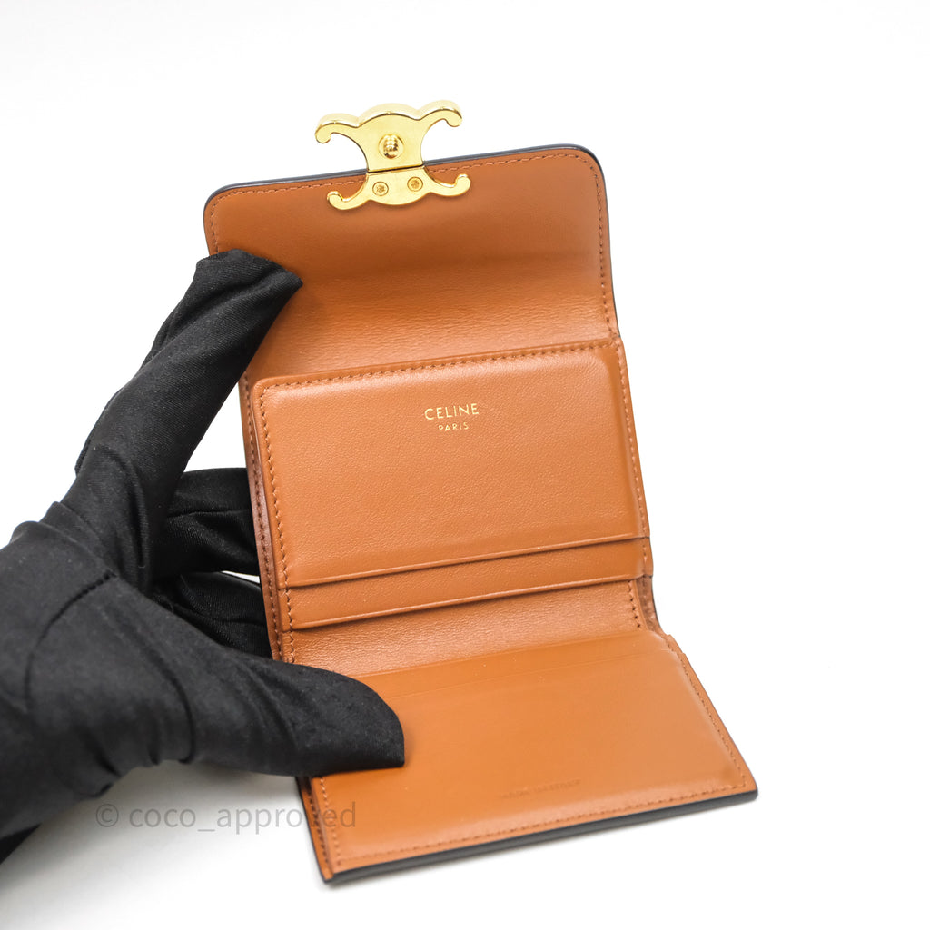 Celine Compact Wallet with Coin Triomphe Canvas Tan Lambskin