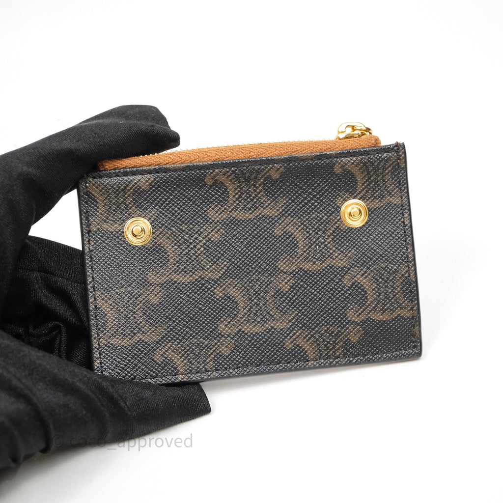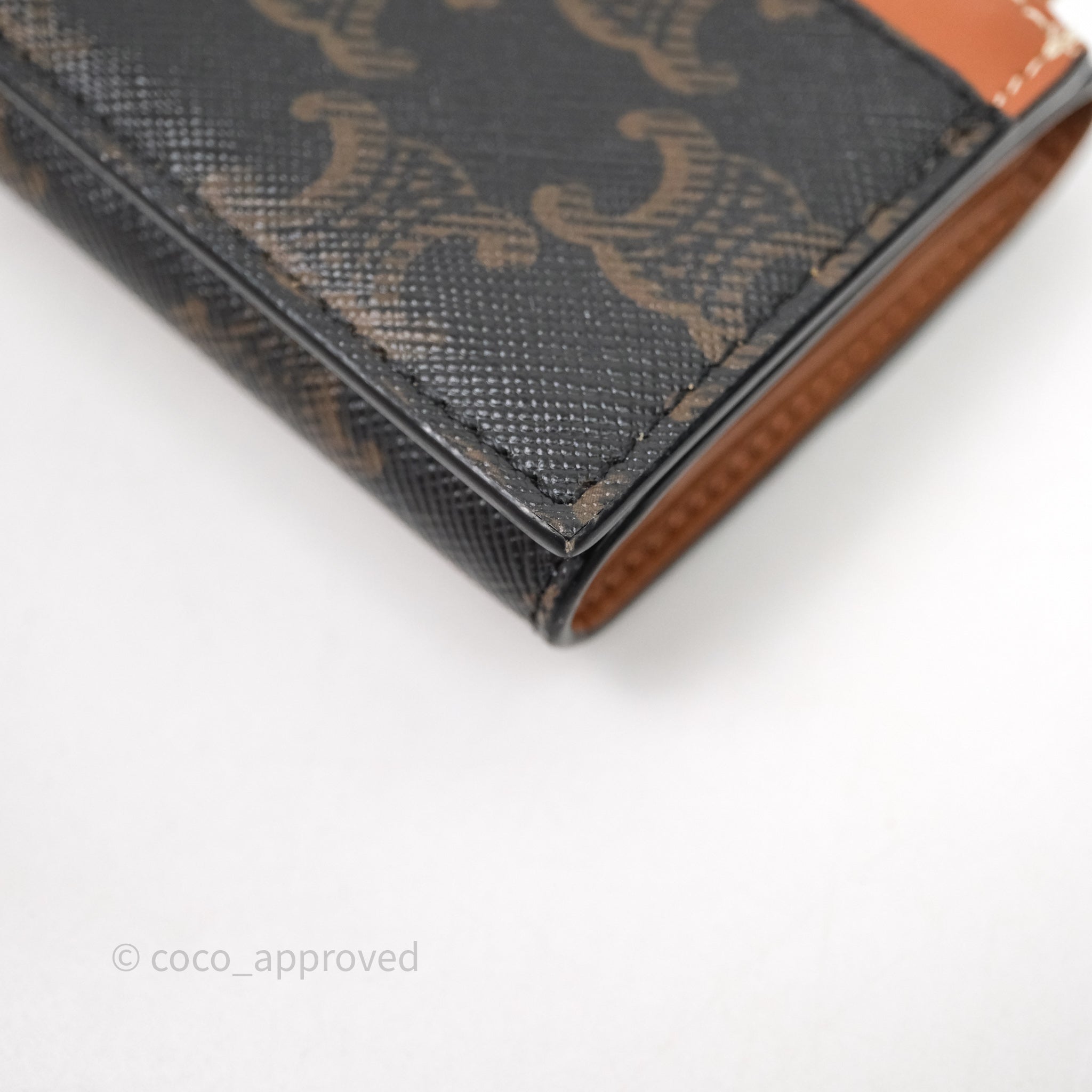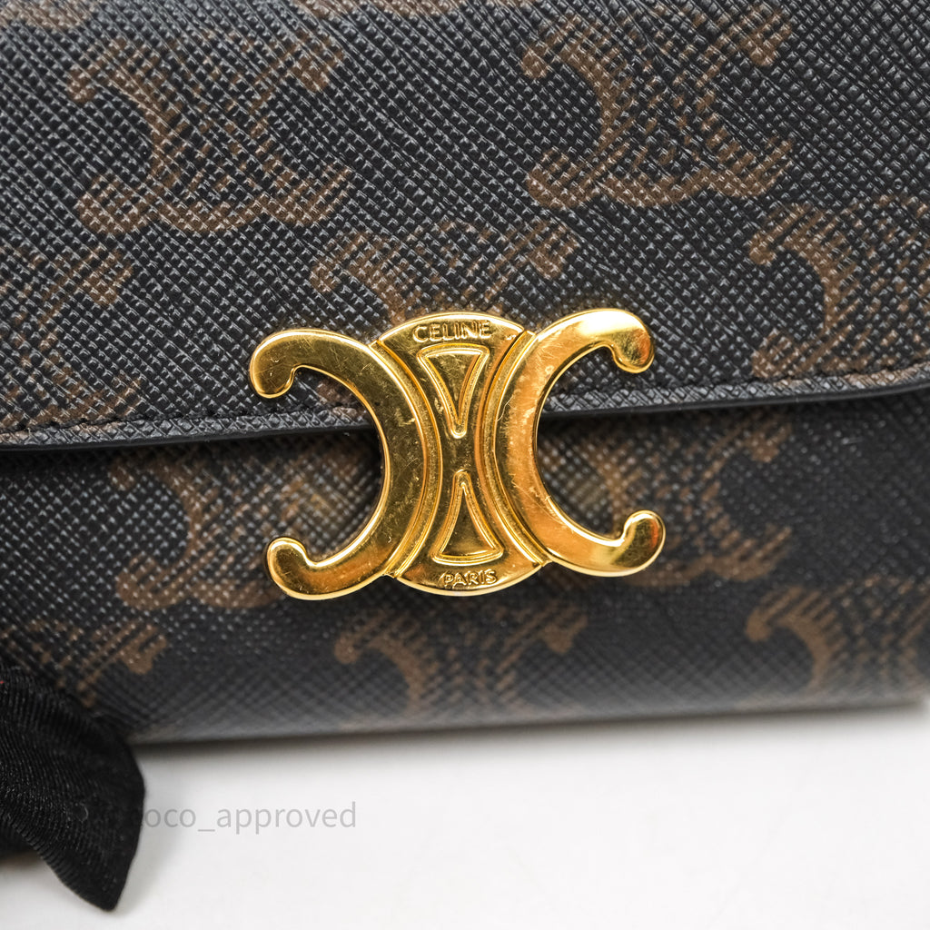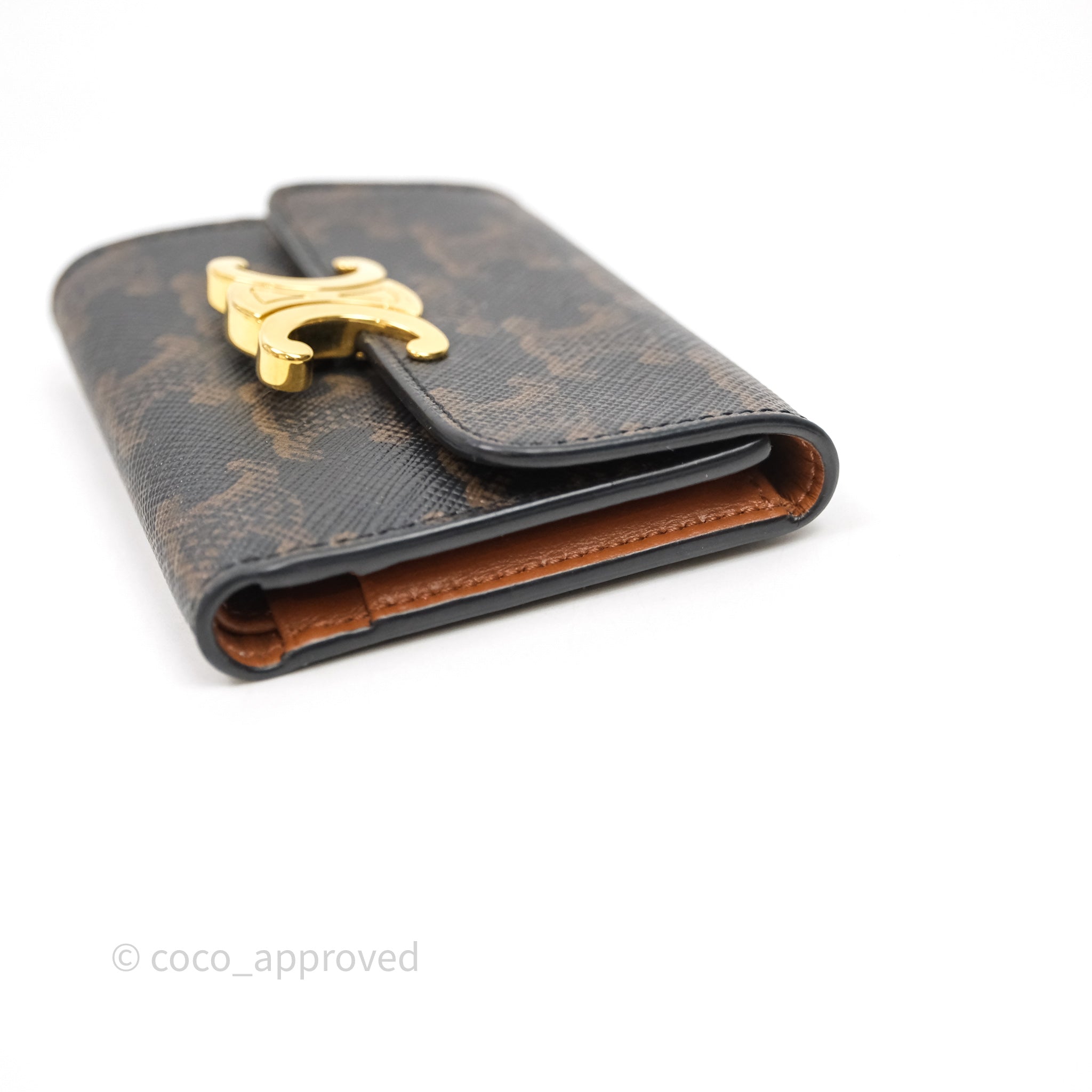 Celine Compact Wallet with Coin Triomphe Canvas Tan Lambskin