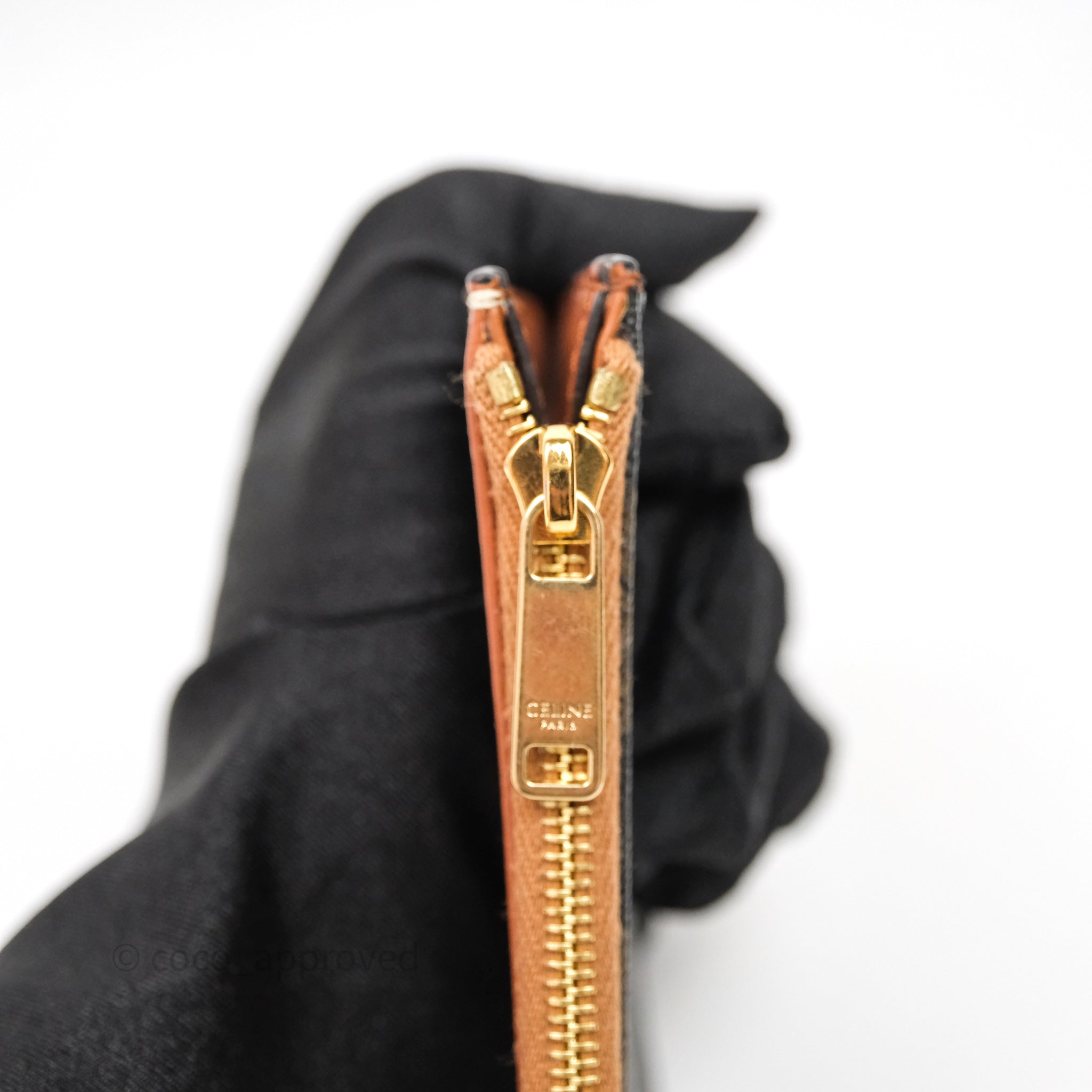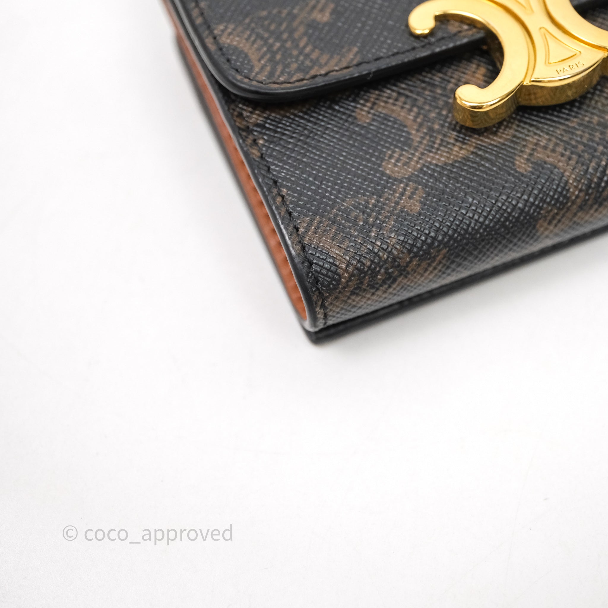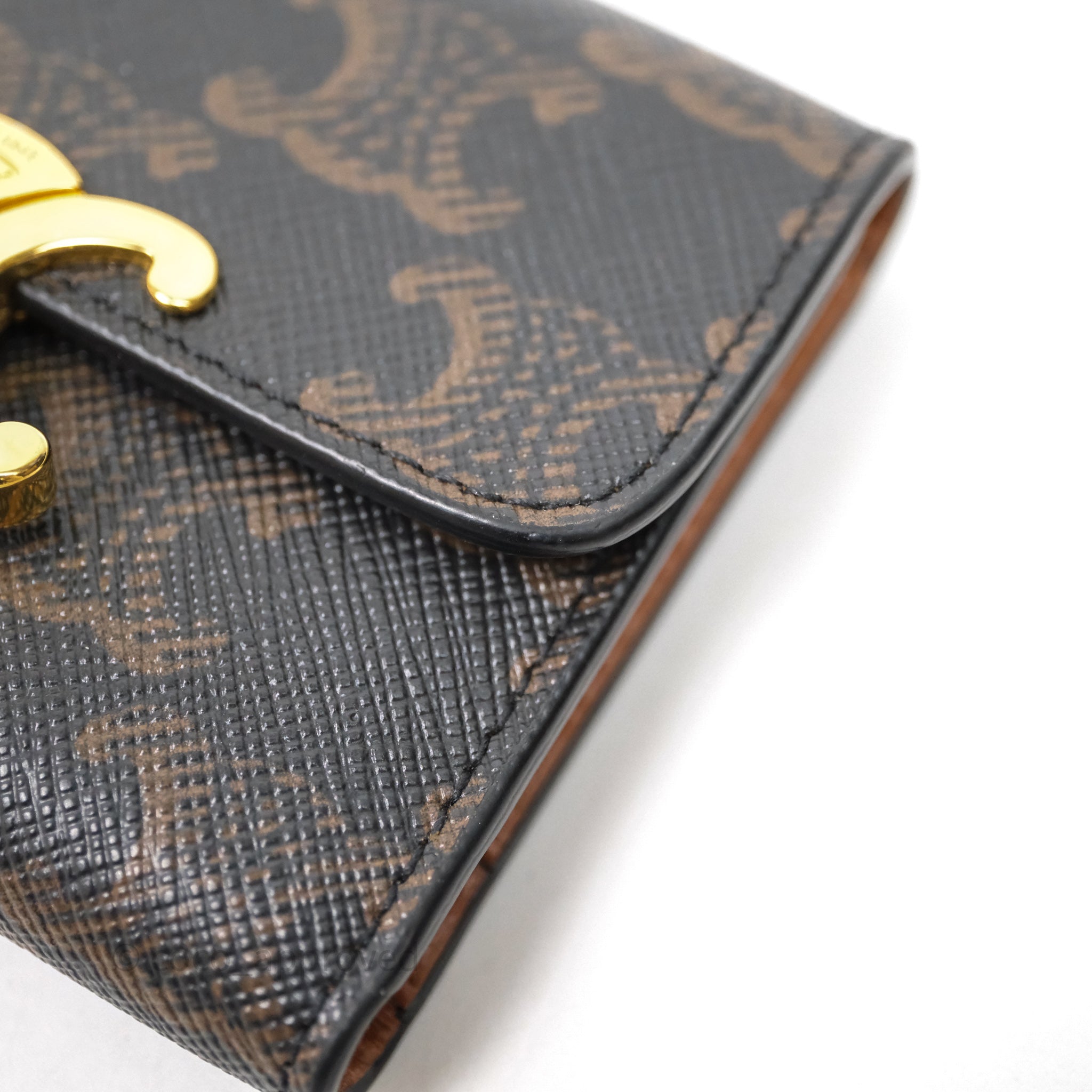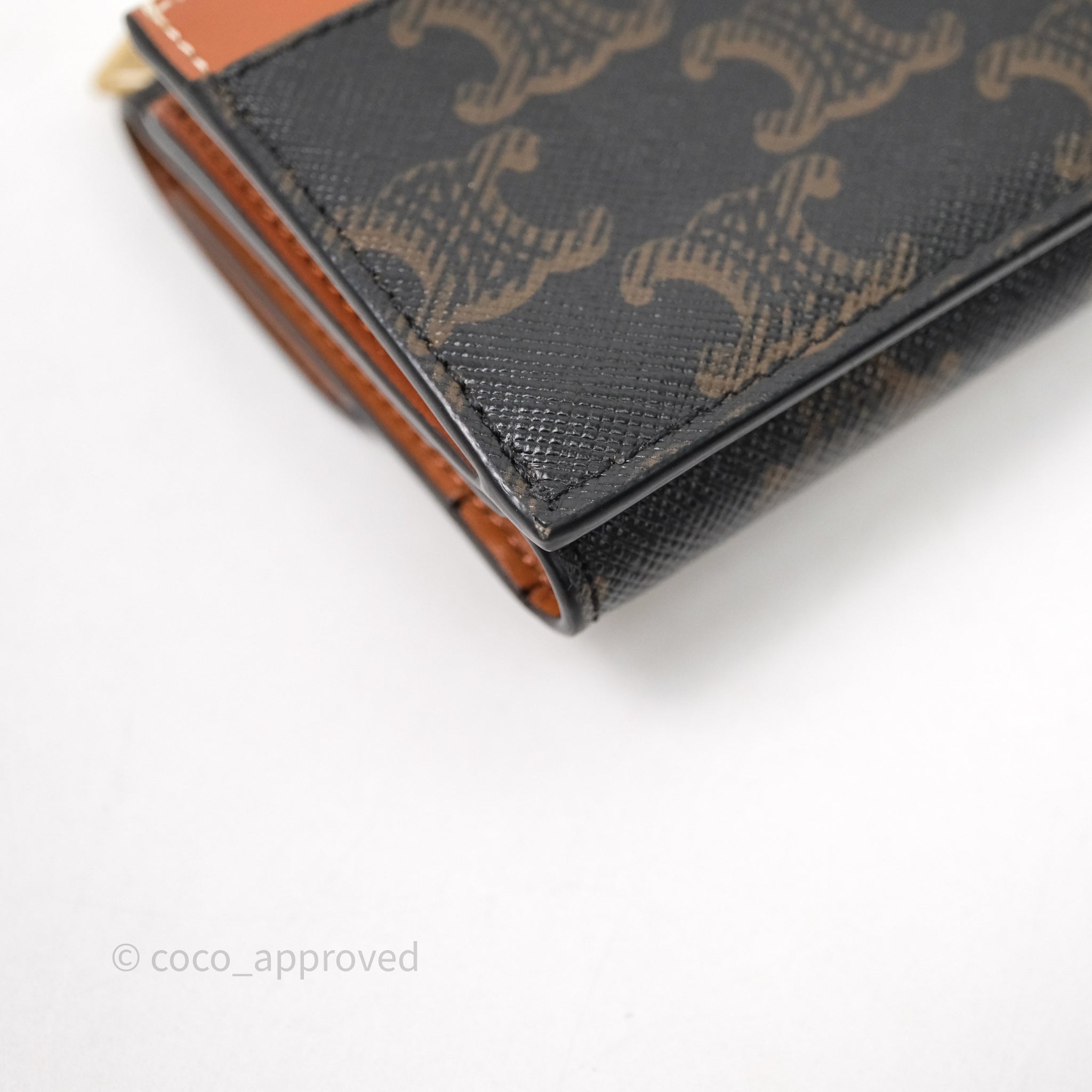 Celine Compact Wallet with Coin Triomphe Canvas Tan Lambskin