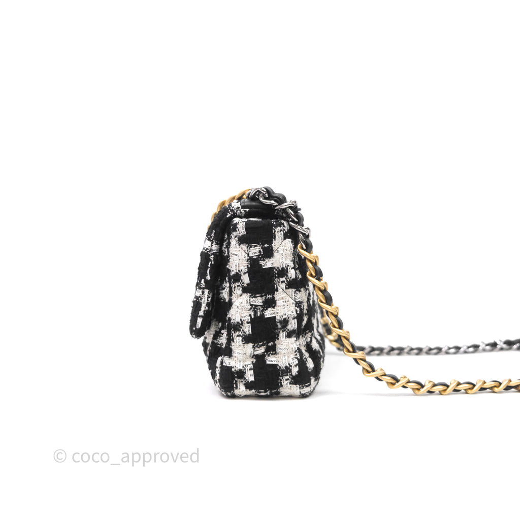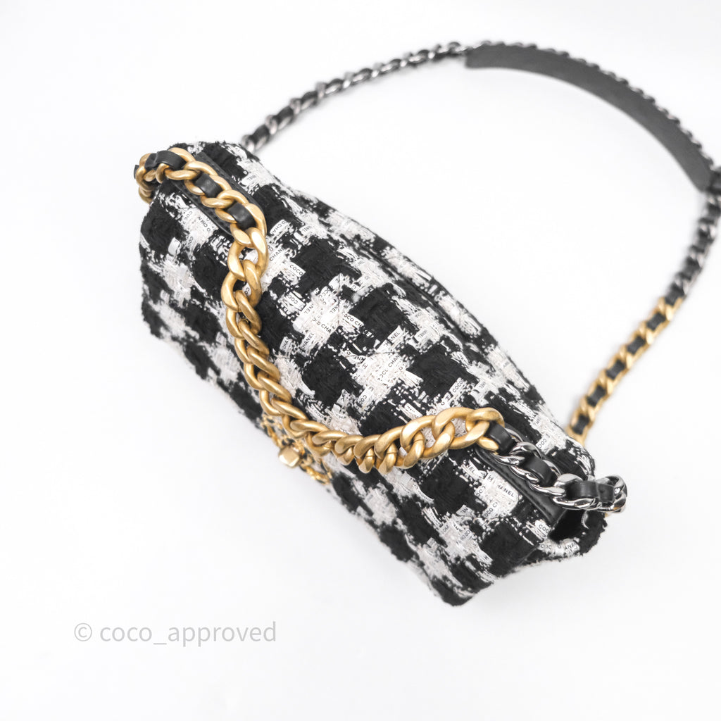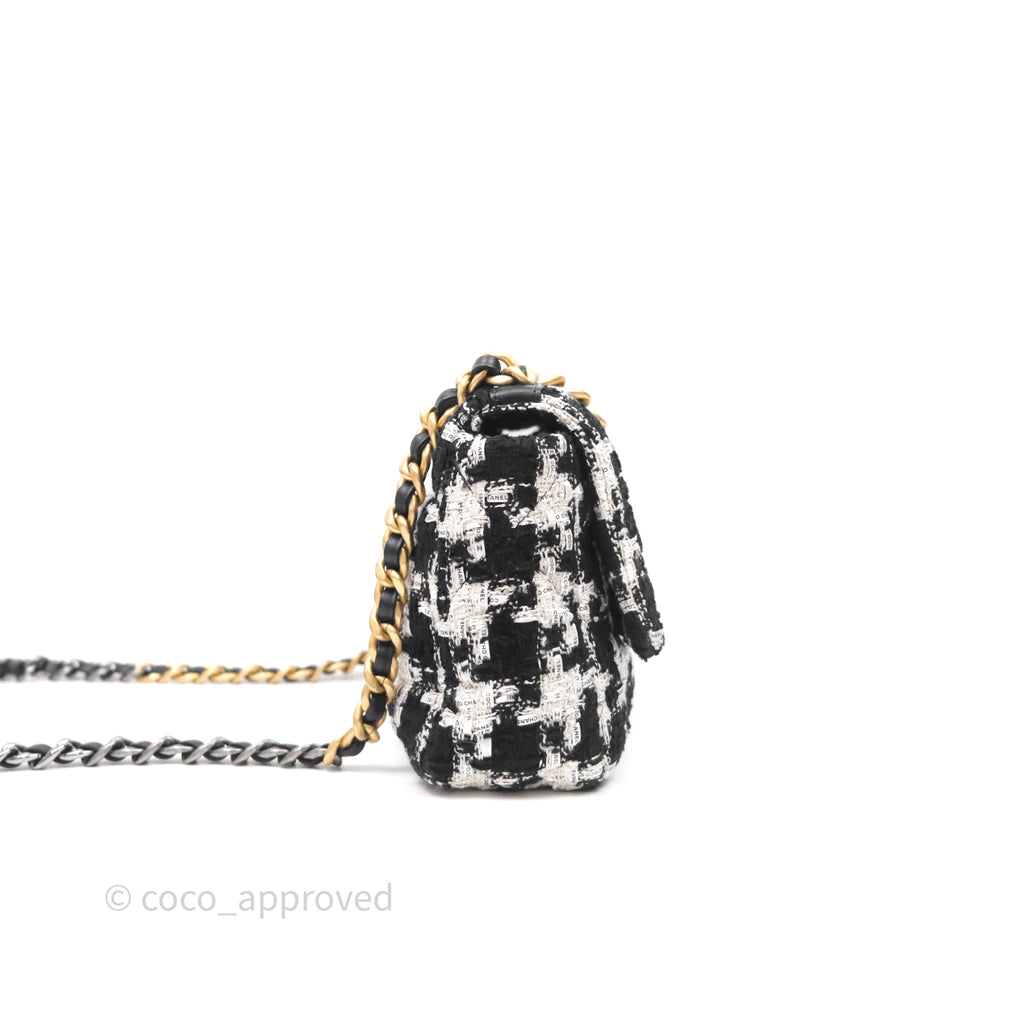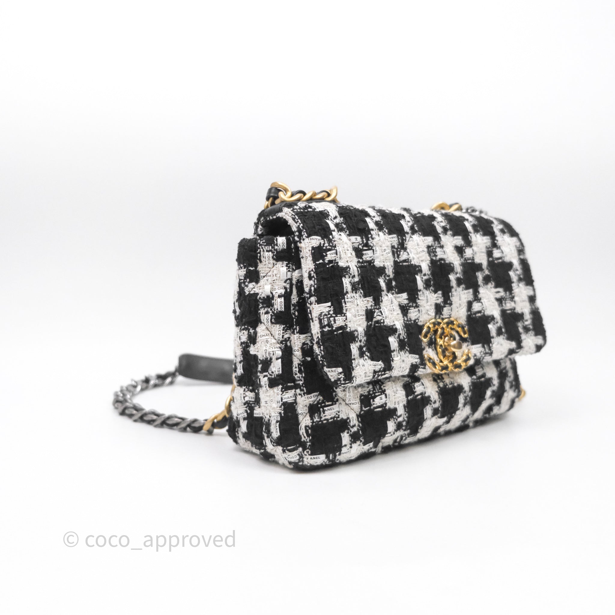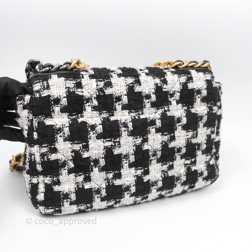 Chanel 19 Small Tweed Houndstooth Black & White Mixed Hardware