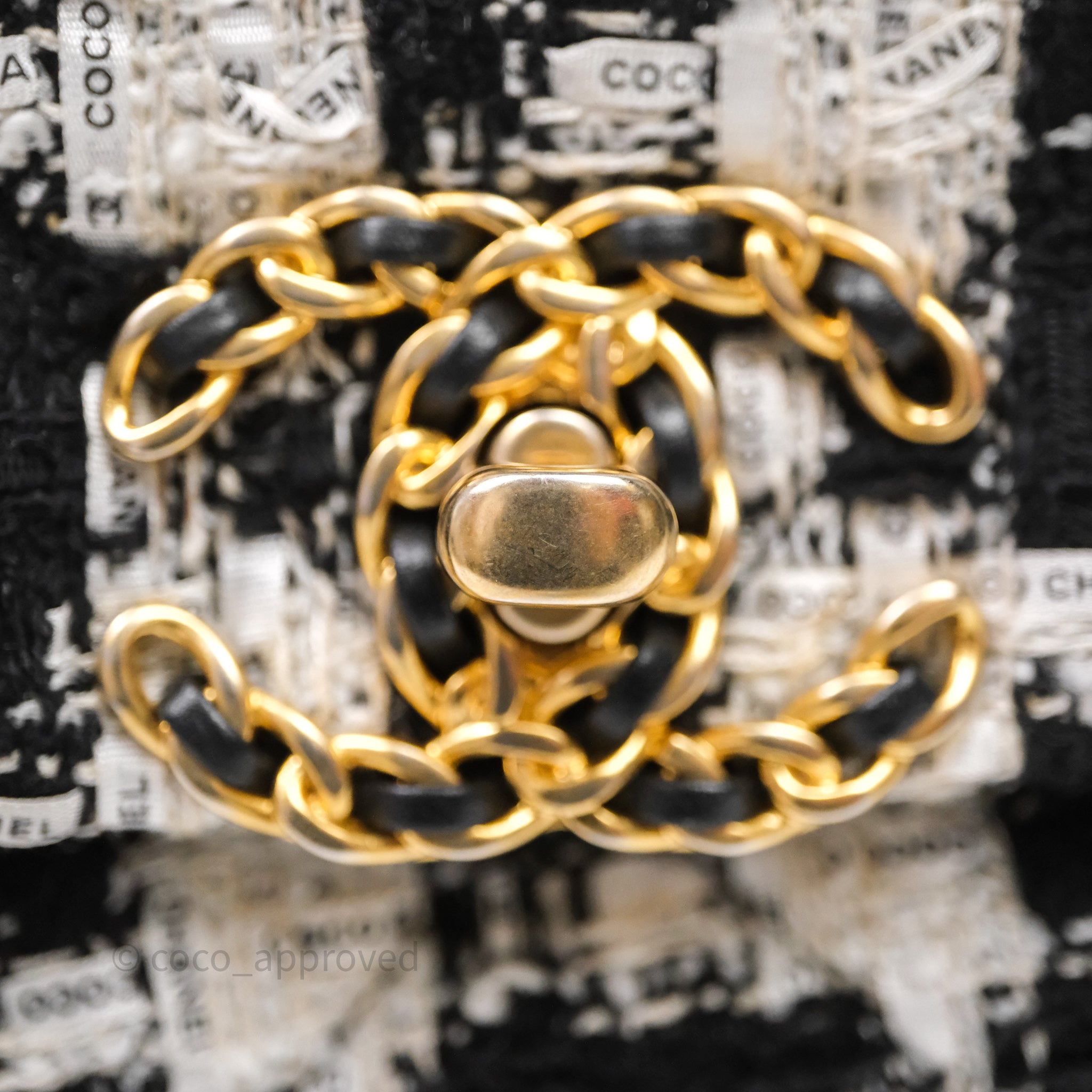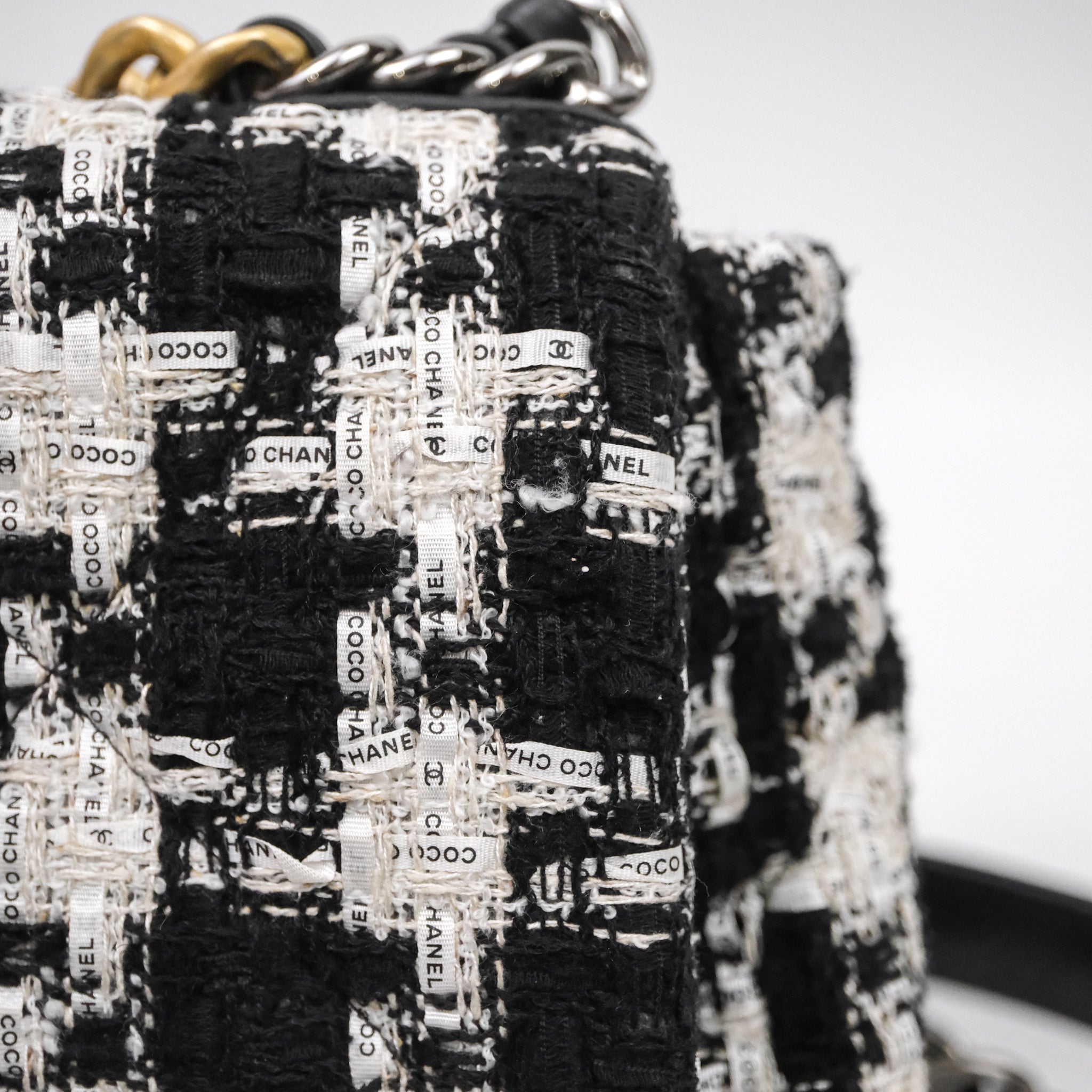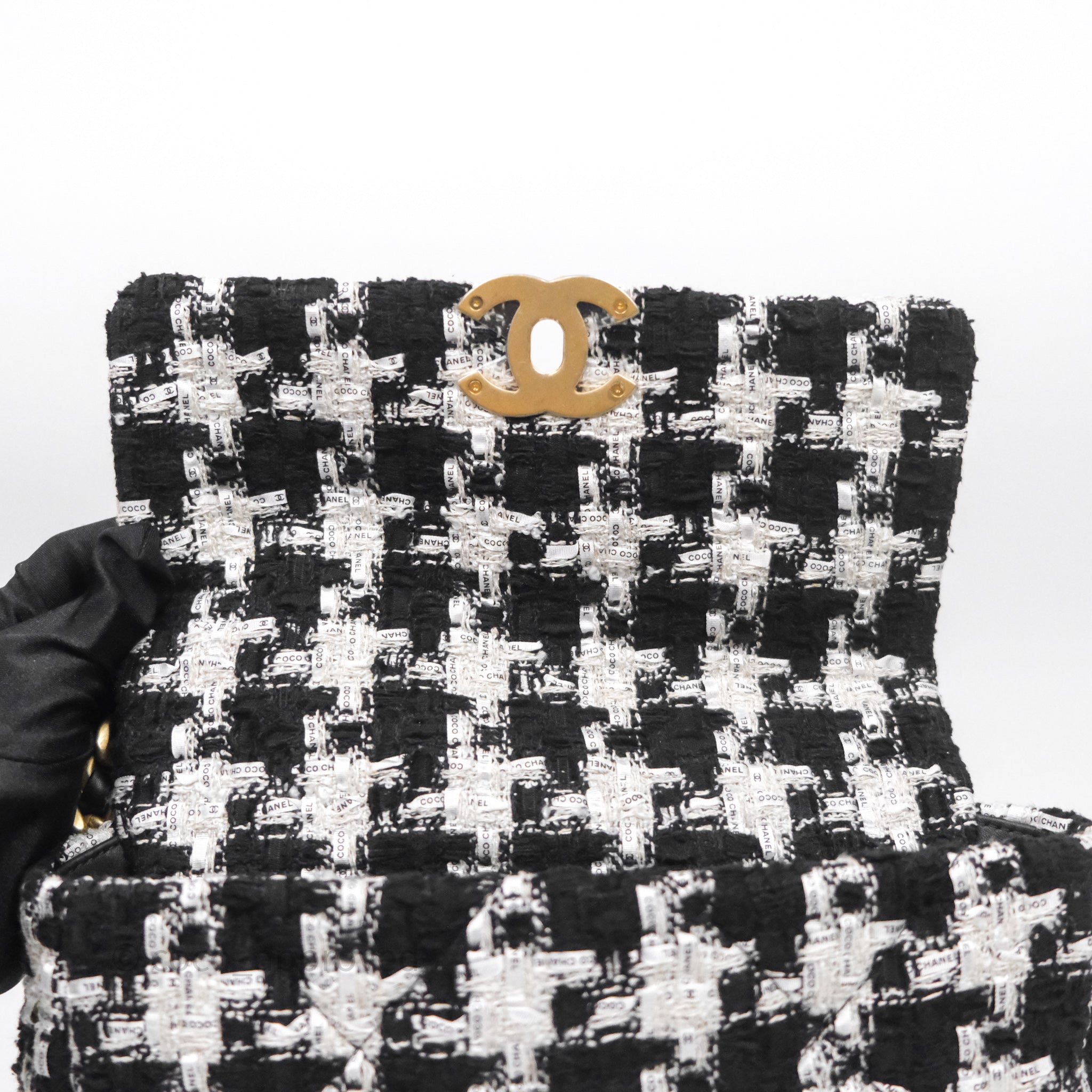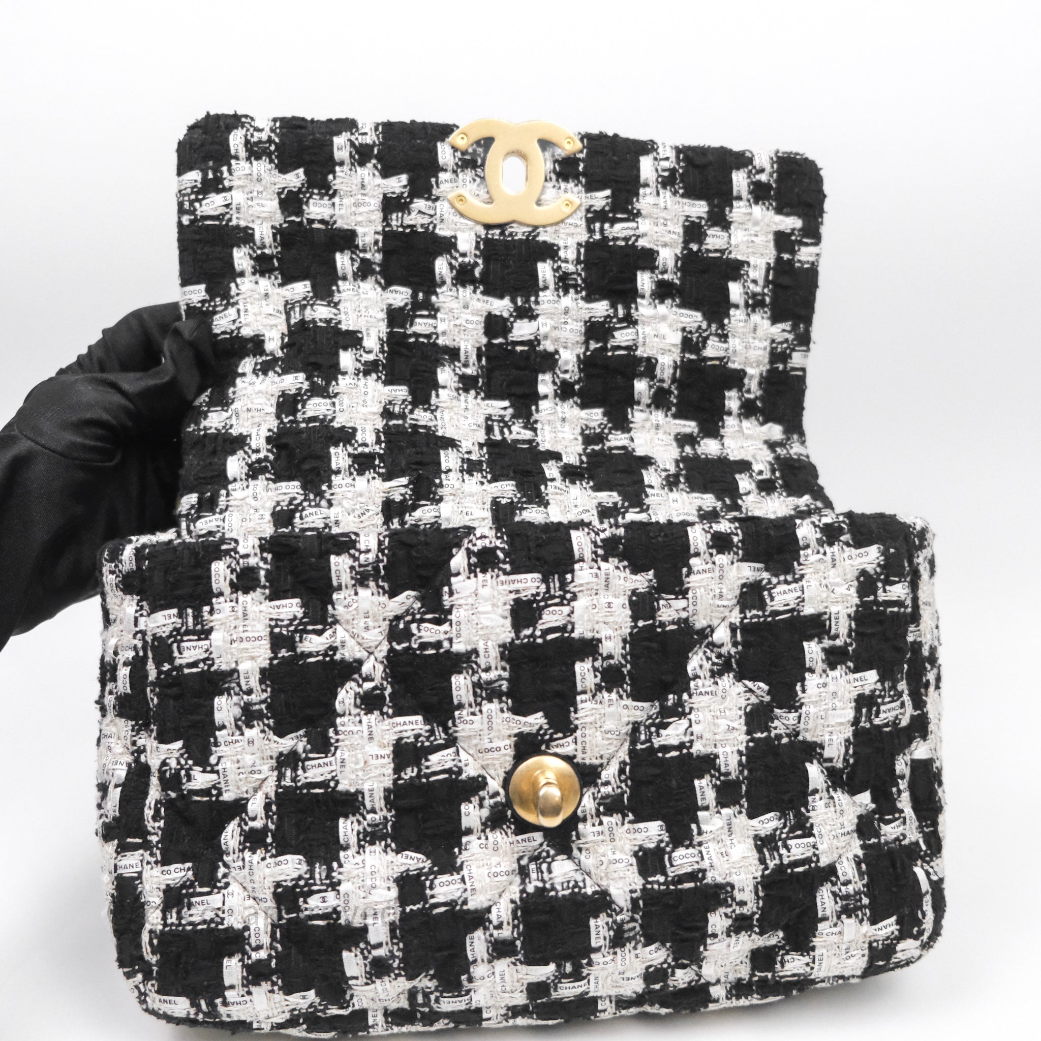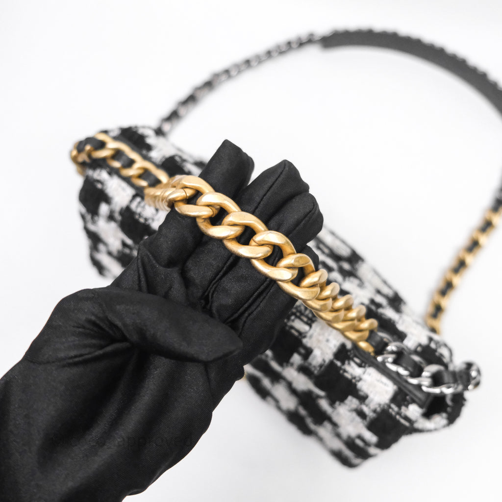 Chanel 19 Small Tweed Houndstooth Black & White Mixed Hardware
